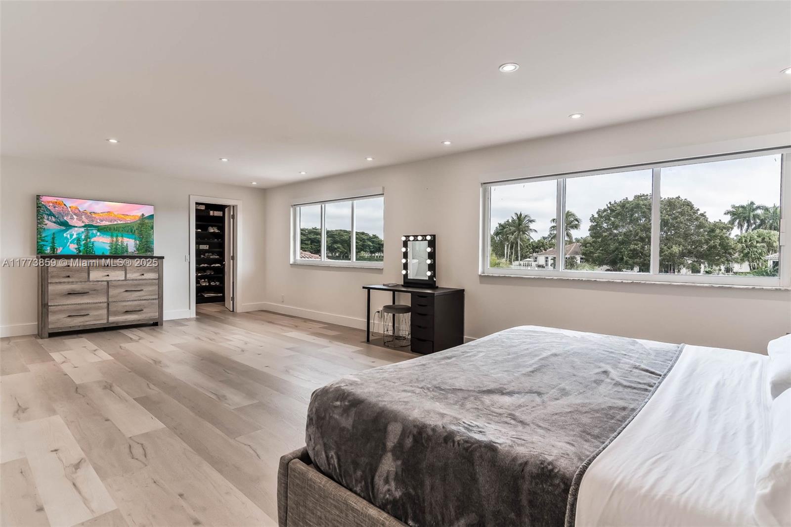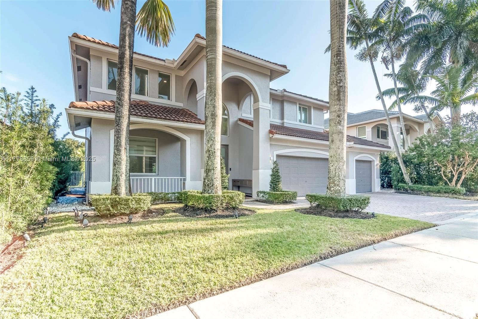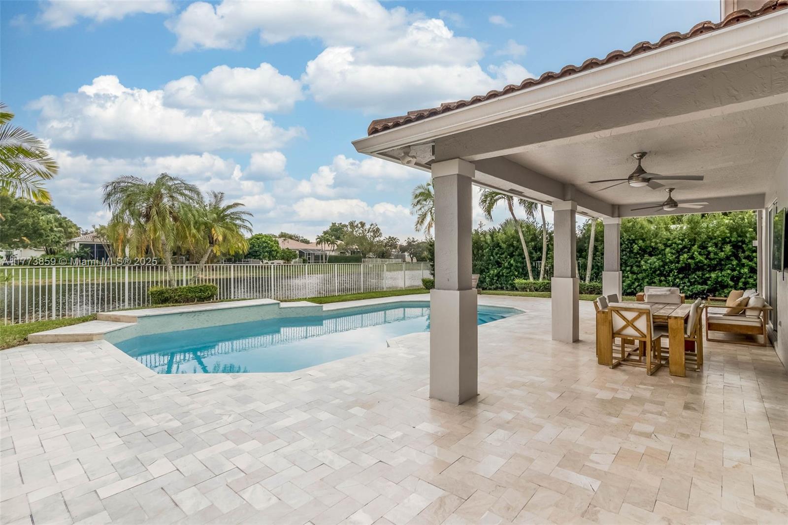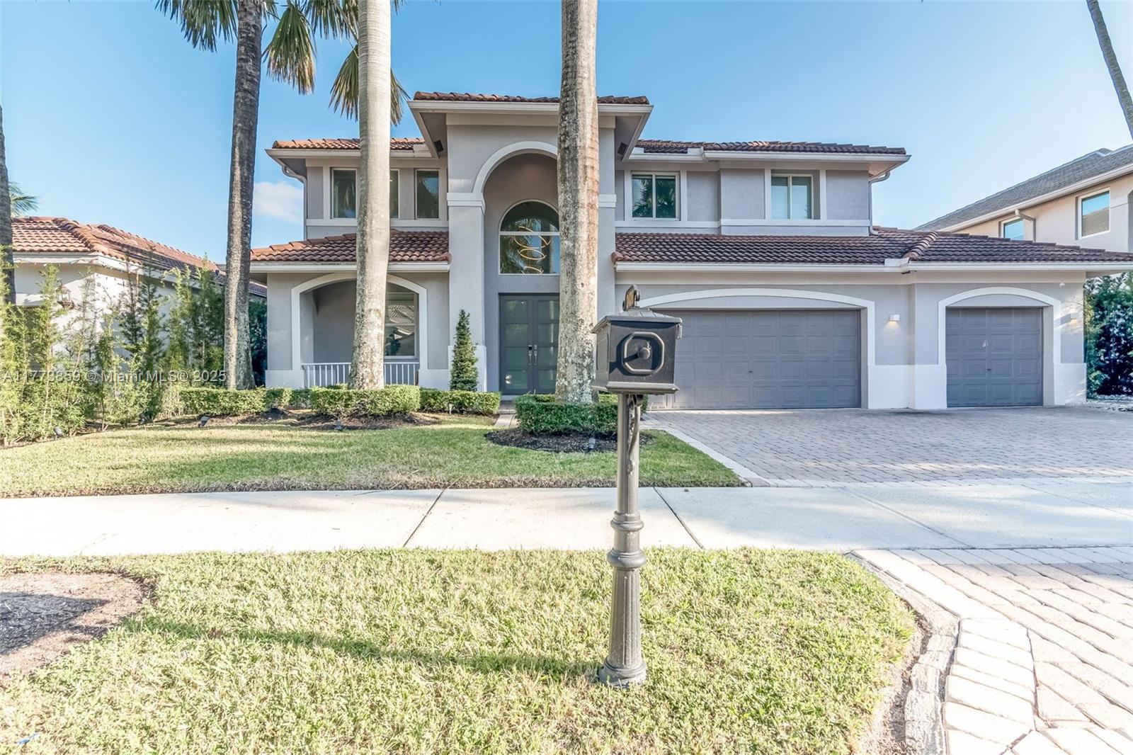 IMPACT WINDOWS & DOORS throughout, this home blends luxury & security. Beautiful Lake home offers an impressive sense of space with soaring ceilings and expansive living areas, designed for both everyday comfort and effortless entertaining. The open-concept kitchen flows seamlessly into the spacious family room, ideal for gatherings large or small. Enjoy the convenience of a full bedroom and bath on the first floor. Upstairs, sleek glass stair rails and wood flooring add a touch of elegance throughout. The expansive primary suite is a true retreat, featuring a serene sitting area and spa-inspired bathroom, all overlooking panoramic lake views. Step outside to your private oasis: a covered patio, sparkling Salt pool, and marble deck await, set against the tranquil lake backdrop.