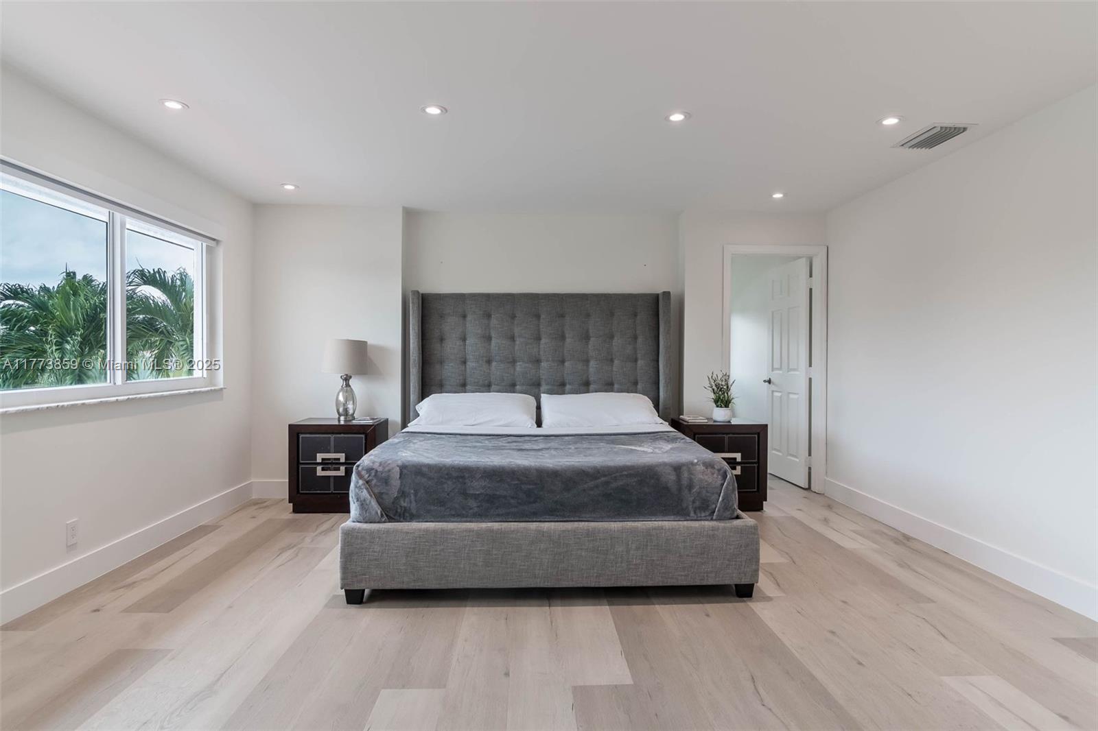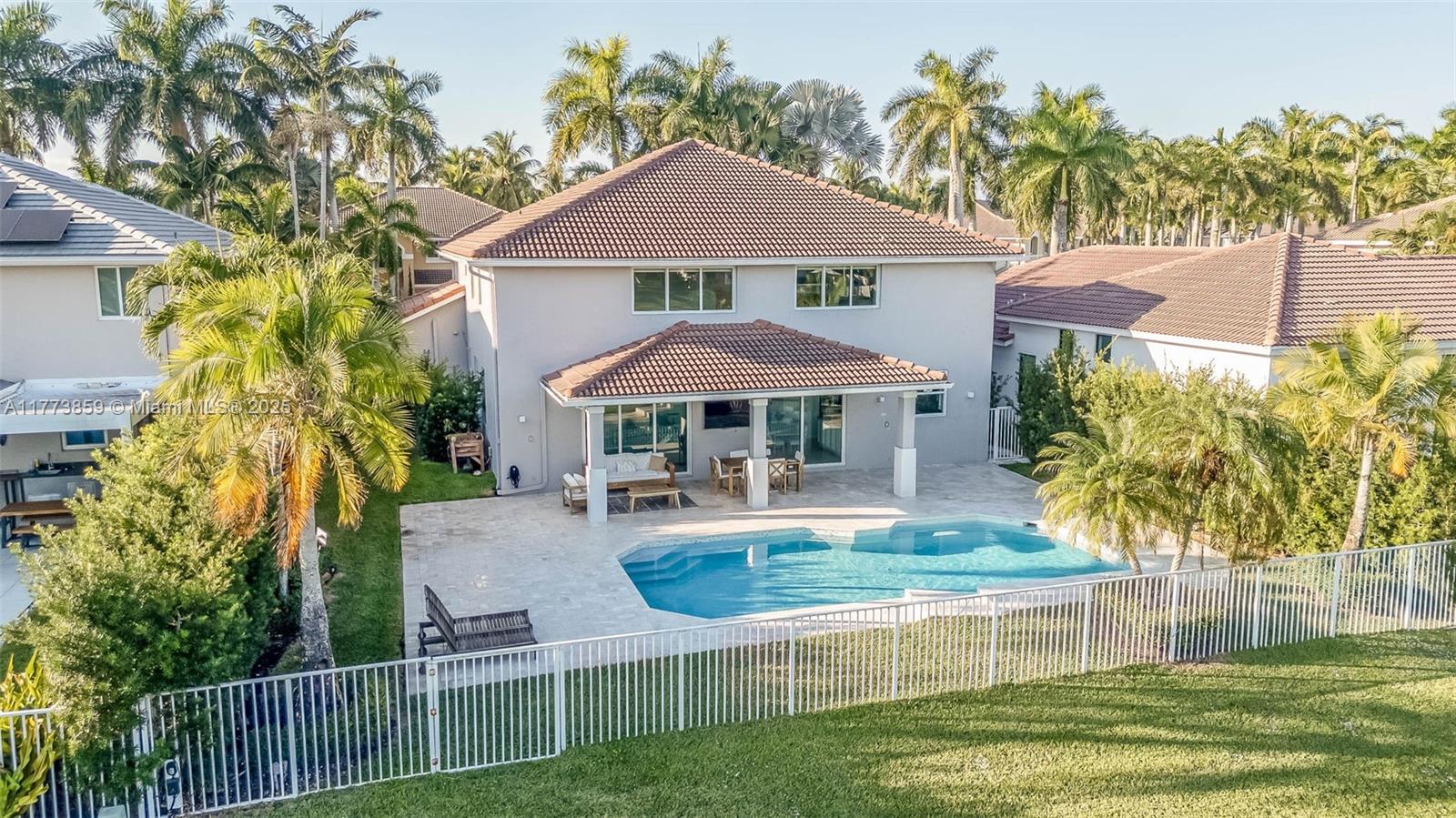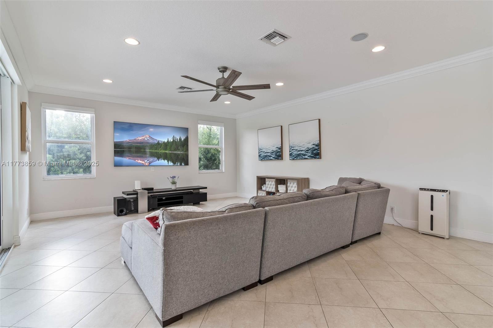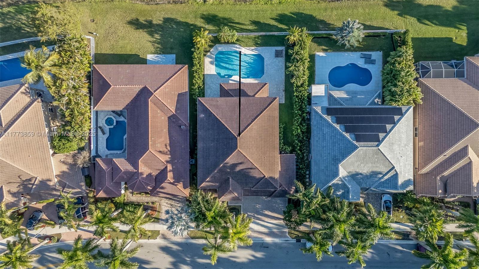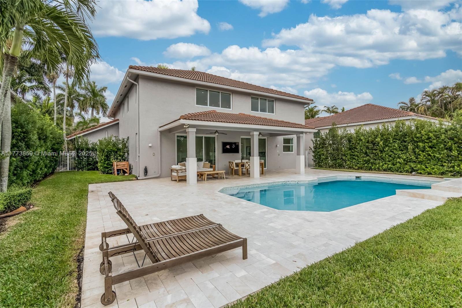 IMPACT WINDOWS & DOORS throughout, this home blends luxury & security. Beautiful Lake home offers an impressive sense of space with soaring ceilings and expansive living areas, designed for both everyday comfort and effortless entertaining. The open-concept kitchen flows seamlessly into the spacious family room, ideal for gatherings large or small. Enjoy the convenience of a full bedroom and bath on the first floor. Upstairs, sleek glass stair rails and wood flooring add a touch of elegance throughout. The expansive primary suite is a true retreat, featuring a serene sitting area and spa-inspired bathroom, all overlooking panoramic lake views. Step outside to your private oasis: a covered patio, sparkling Salt pool, and marble deck await, set against the tranquil lake backdrop.