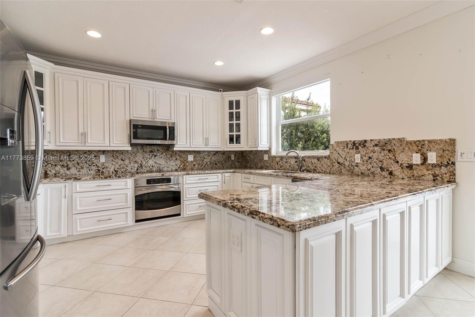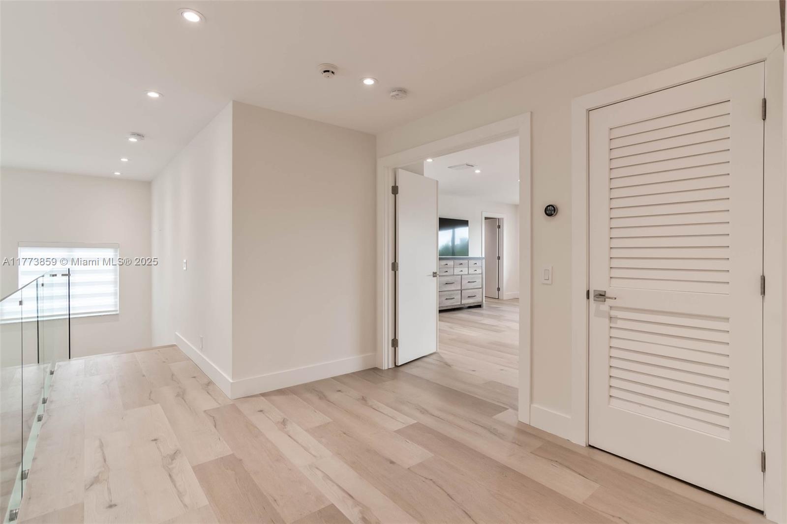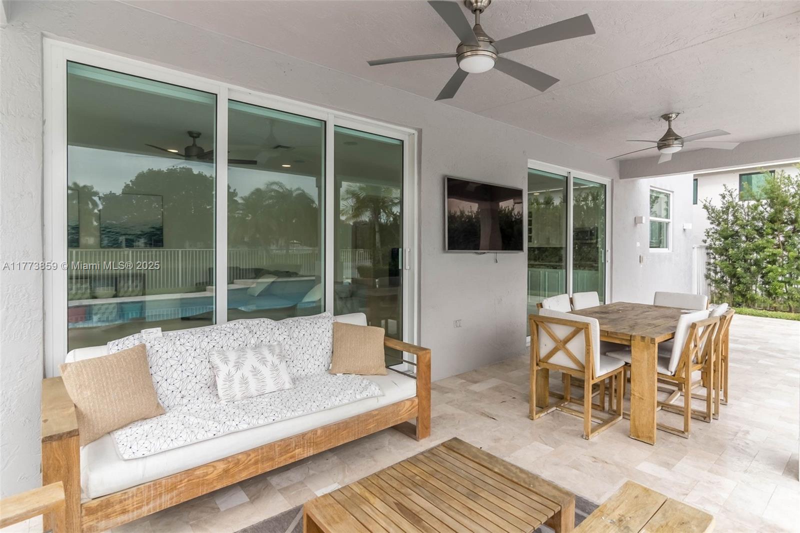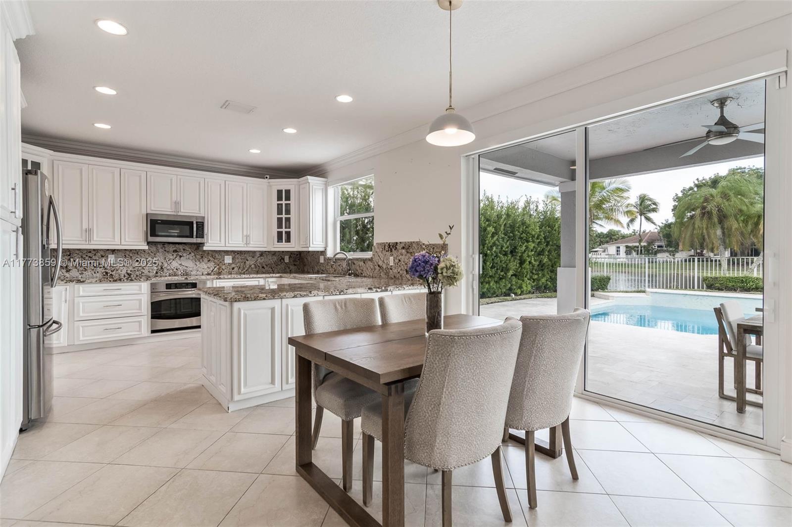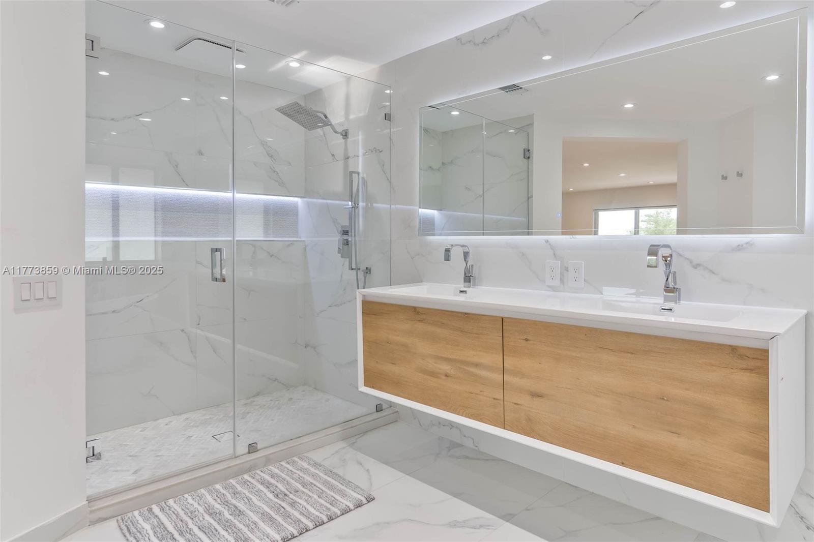 IMPACT WINDOWS & DOORS throughout, this home blends luxury & security. Beautiful Lake home offers an impressive sense of space with soaring ceilings and expansive living areas, designed for both everyday comfort and effortless entertaining. The open-concept kitchen flows seamlessly into the spacious family room, ideal for gatherings large or small. Enjoy the convenience of a full bedroom and bath on the first floor. Upstairs, sleek glass stair rails and wood flooring add a touch of elegance throughout. The expansive primary suite is a true retreat, featuring a serene sitting area and spa-inspired bathroom, all overlooking panoramic lake views. Step outside to your private oasis: a covered patio, sparkling Salt pool, and marble deck await, set against the tranquil lake backdrop.