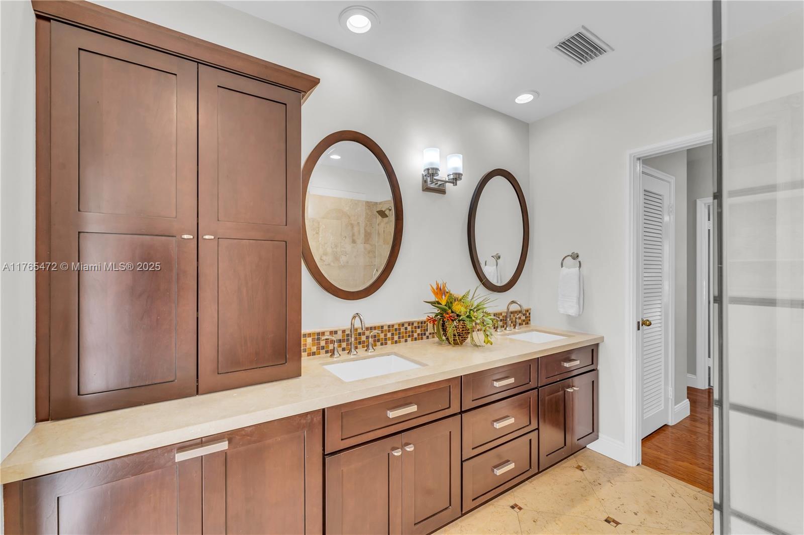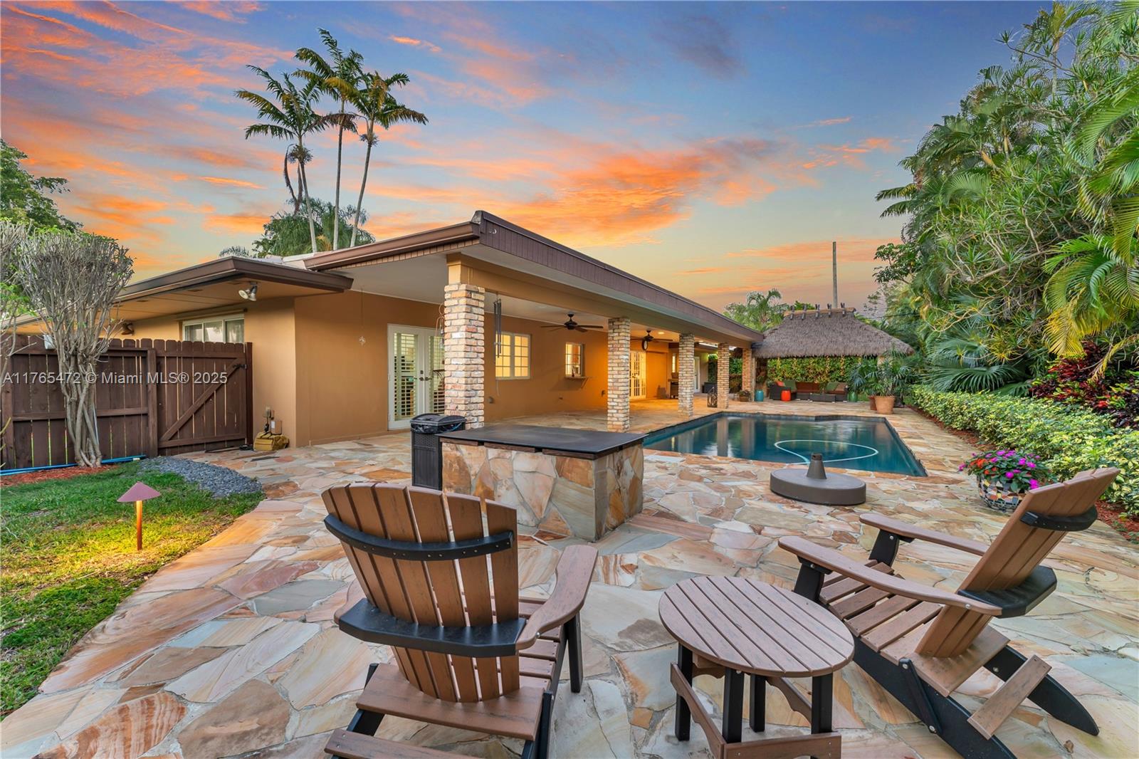 Tucked at the end of a quiet Pinecrest cul-de-sac, this is the kind of home where lasting memories are made. From the moment you step into the foyer, there’s a sense of calm - sunlight pours through large windows, and the formal living and dining rooms offer just the right amount of polish without feeling too formal. Situated at the heart of the home, the open kitchen and spacious family room overlook the tropical backyard, sparkling pool, and tiki hut. 3 bedrooms sit in a private wing, while the primary suite is tucked away with peaceful views and relaxed energy. A media room adds flexibility for a man cave, home gym or craft room. With impact windows and doors, metal roof, circular driveway for 4+ cars and top-rated schools nearby, this home isn’t just beautiful—it’s calling your name!