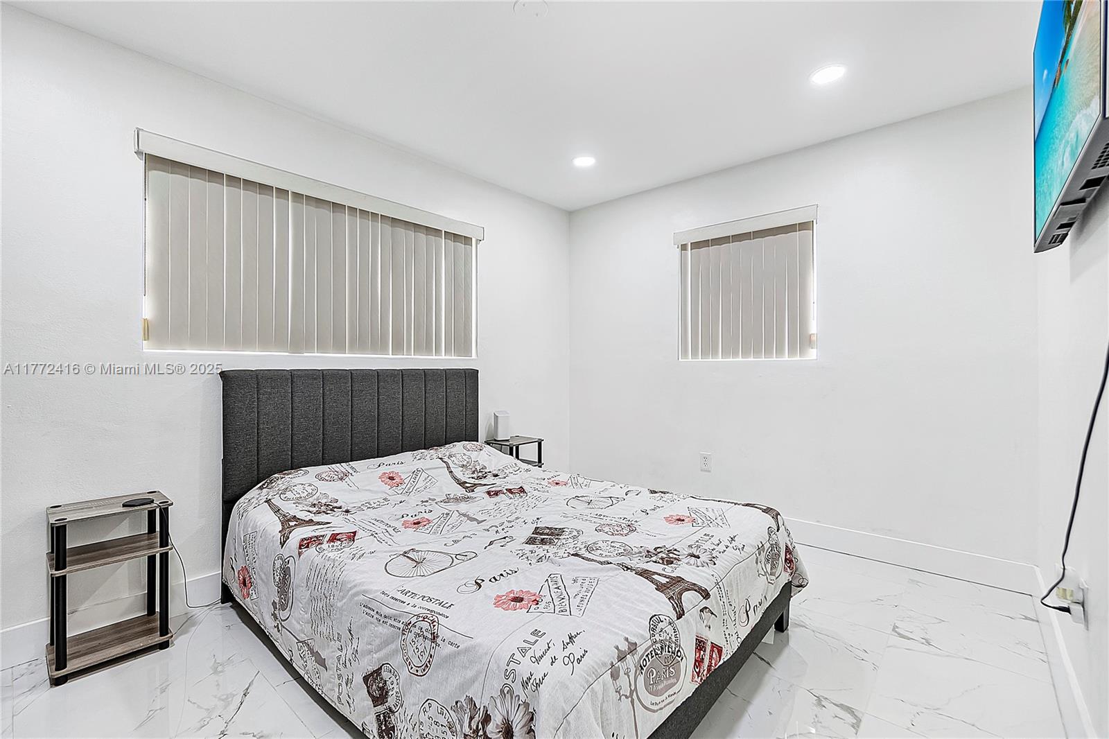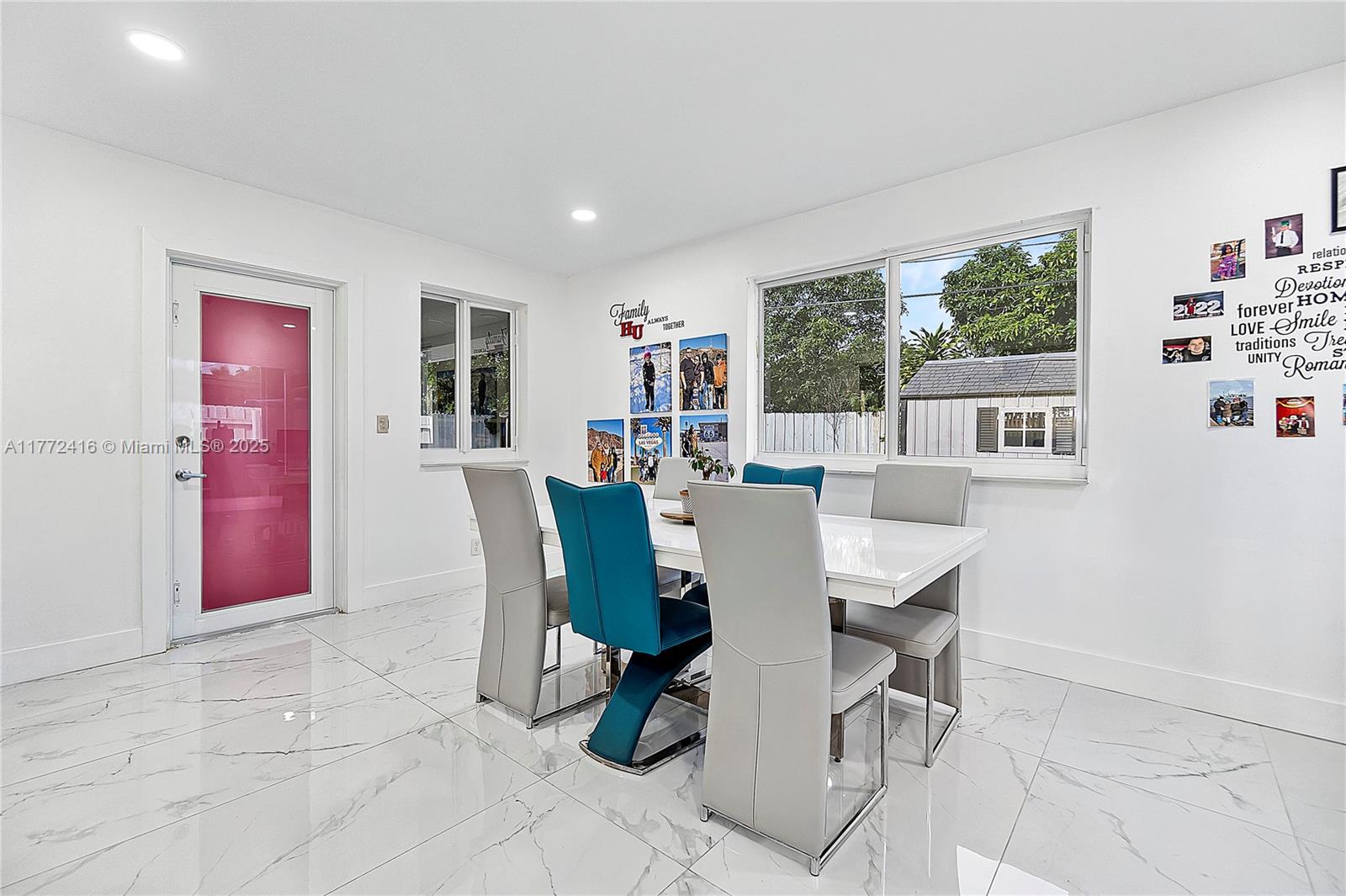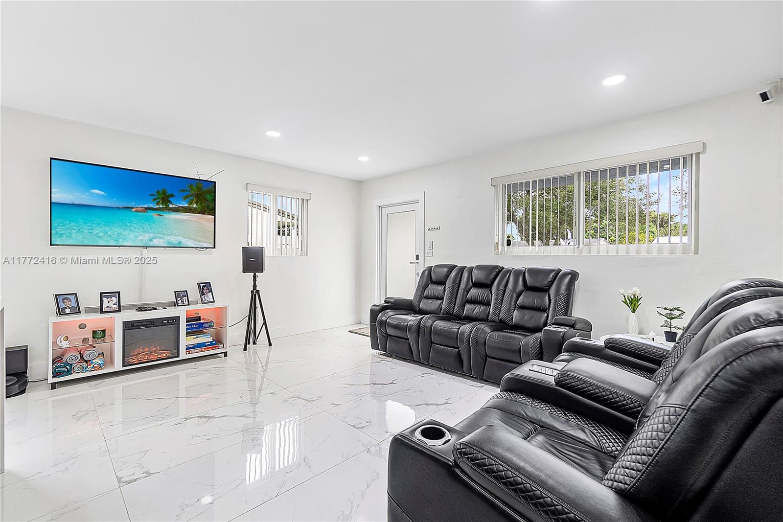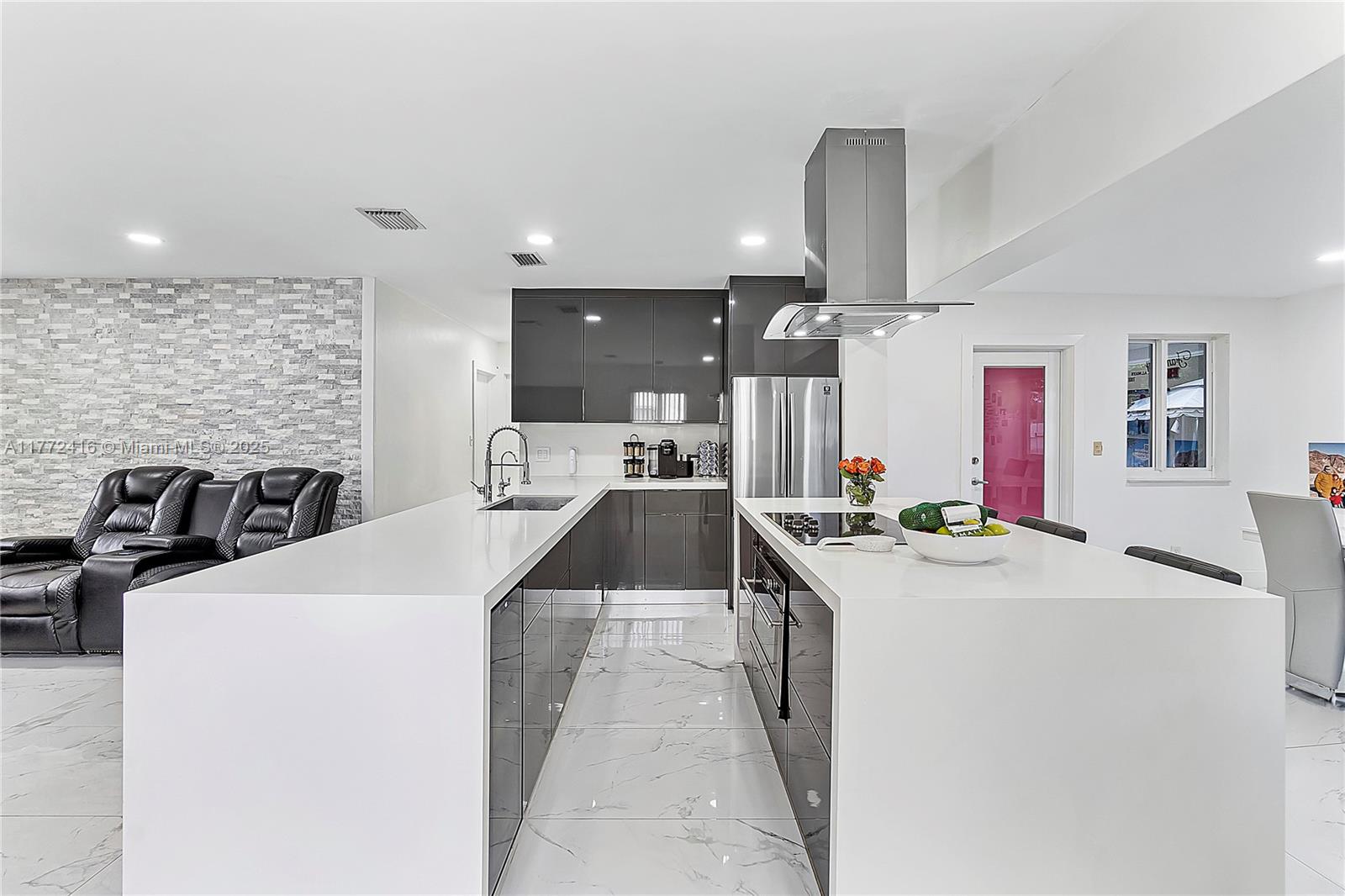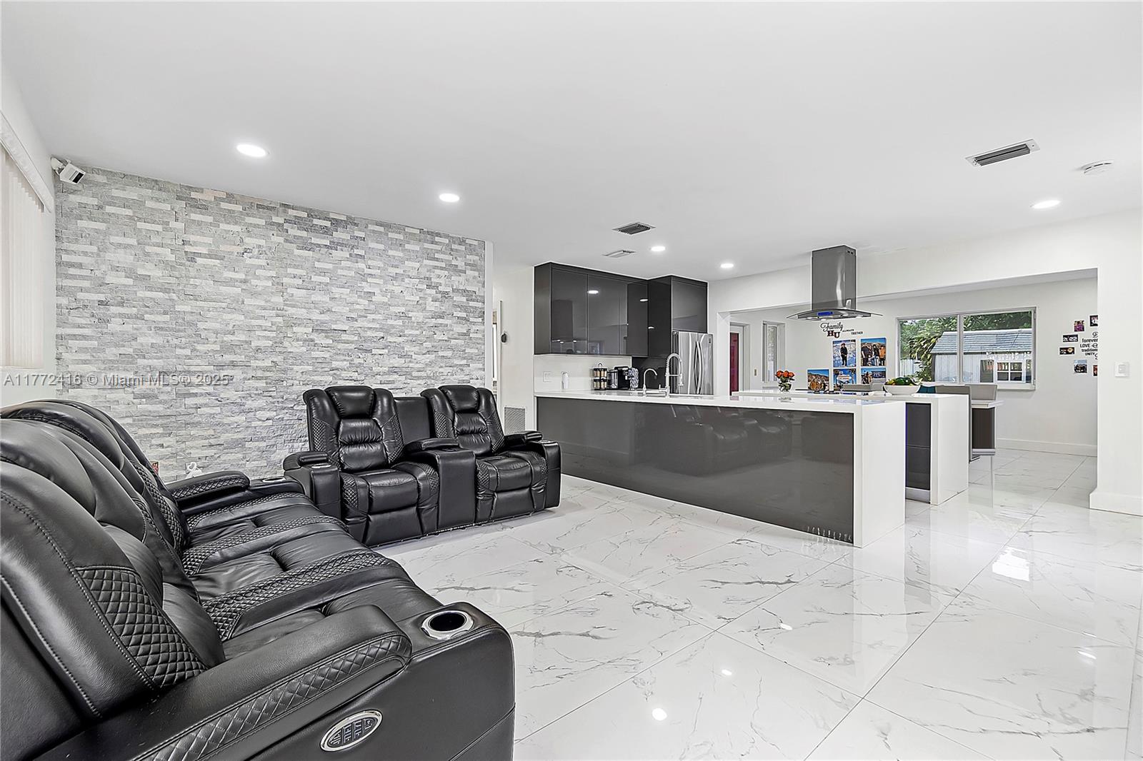 Fully renovated 3-bedroom, 2-bathroom home in the heart of Hollywood, The open concept living space is highlighted by a jaw-dropping quartz waterfall kitchen island, elegant soft close cabinetry, a built-in wine cooler, and stainless steel appliances, making it a dream for both cooking and entertaining. With Calacatta porcelain tile throughout the main living areas and bathrooms, paired with LED recessed lighting, Impact windows, and doors provide security and energy efficiency, no cast iron pipes, Titan tankless water heater, A/C unit, smart door look/unlock monitoring system, all renovation and update done late 2021 including the replacement of the roof, plenty room for pool. This home is truly move-in ready