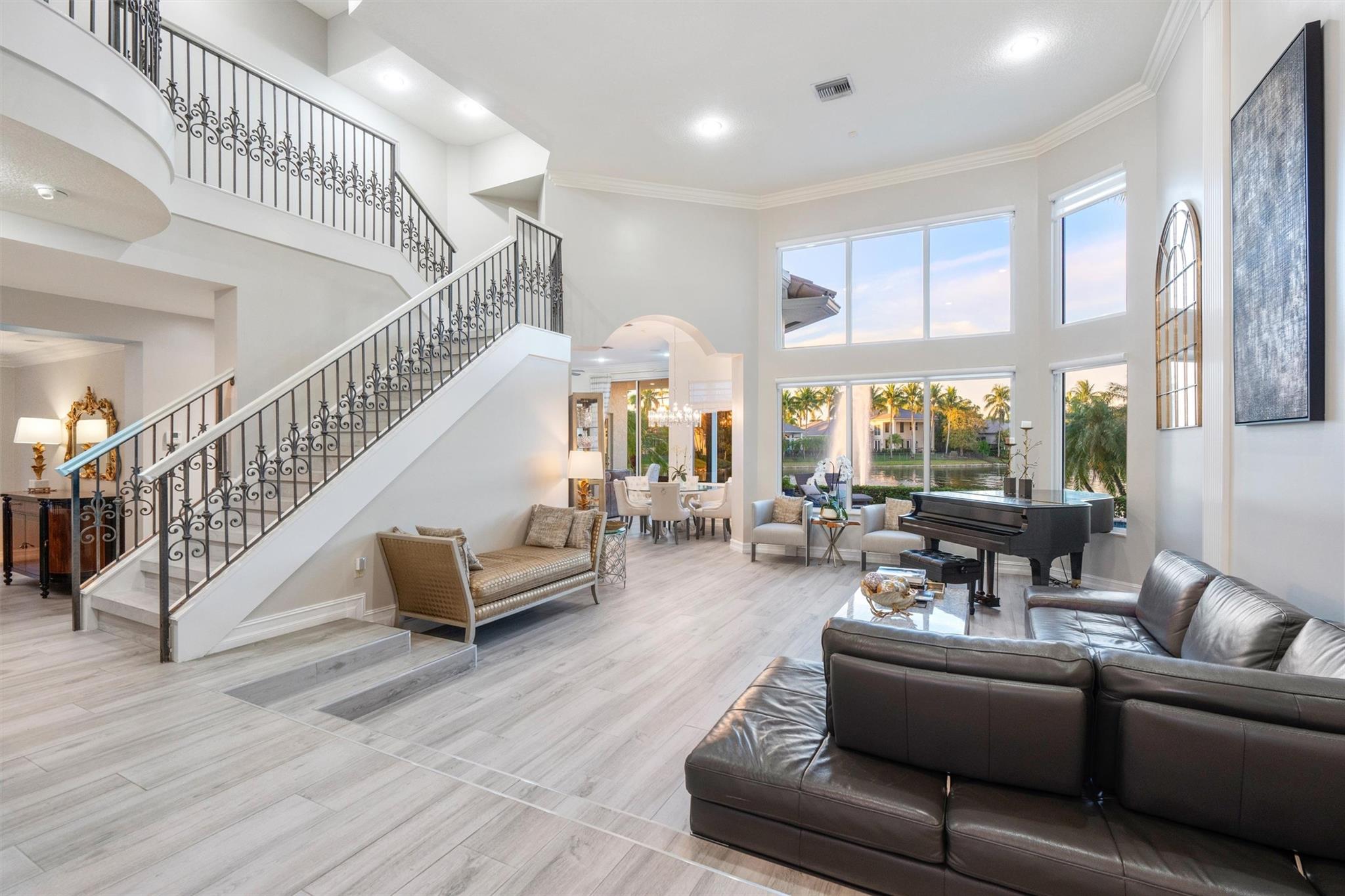 DON'T MISS THIS RECENTLY RENOVATED CUSTOM 2 STORY HOME WITH INCREDIBLE LONG WATER AND FOUNTAIN VIEWS IN HAWKS LANDING! BRAND NEW ROOF 2025*4 BEDROOMS+ OFFICE+LOFT* PARTIAL IMPACT GLASS* DRAMATIC ENTRY W SOARING CEILINGS* NEW MODERN KITCHEN W LARGE ISLAND, QUARTZ COUNTERS, PRO GAS RANGE & S/S APPLIANCES* WALK IN PANTRY* NEW PORCELAIN FLOORING ON MAIN FLOOR* SPACIOUS PRIMARY SUITE ON FIRST FLOOR W MARBLE BATH & CLOSET BUILT-INS * 1ST FLOOR OFFICE WITH FULL BATH EASILY A CONVERTIBLE BEDROOM* MOTORIZED WINDOW TREATMENTS IN LR*CUSTOM LIGHTING*3 BEDROOMS W RENOVATED BATHS (1 J&J AND 1 EN-SUITE) PLUS LOFT ON SECOND FLOOR* HEATED POOL & SPA* BUILT IN BBQ* CIRCULAR DRIVEWAY* FRESHLY PAINTED & LANDSCAPED* COME ENJOY THE HAWKS LANDING CLUB AND LIFESTYLE WHICH IS SECOND TO NONE!
