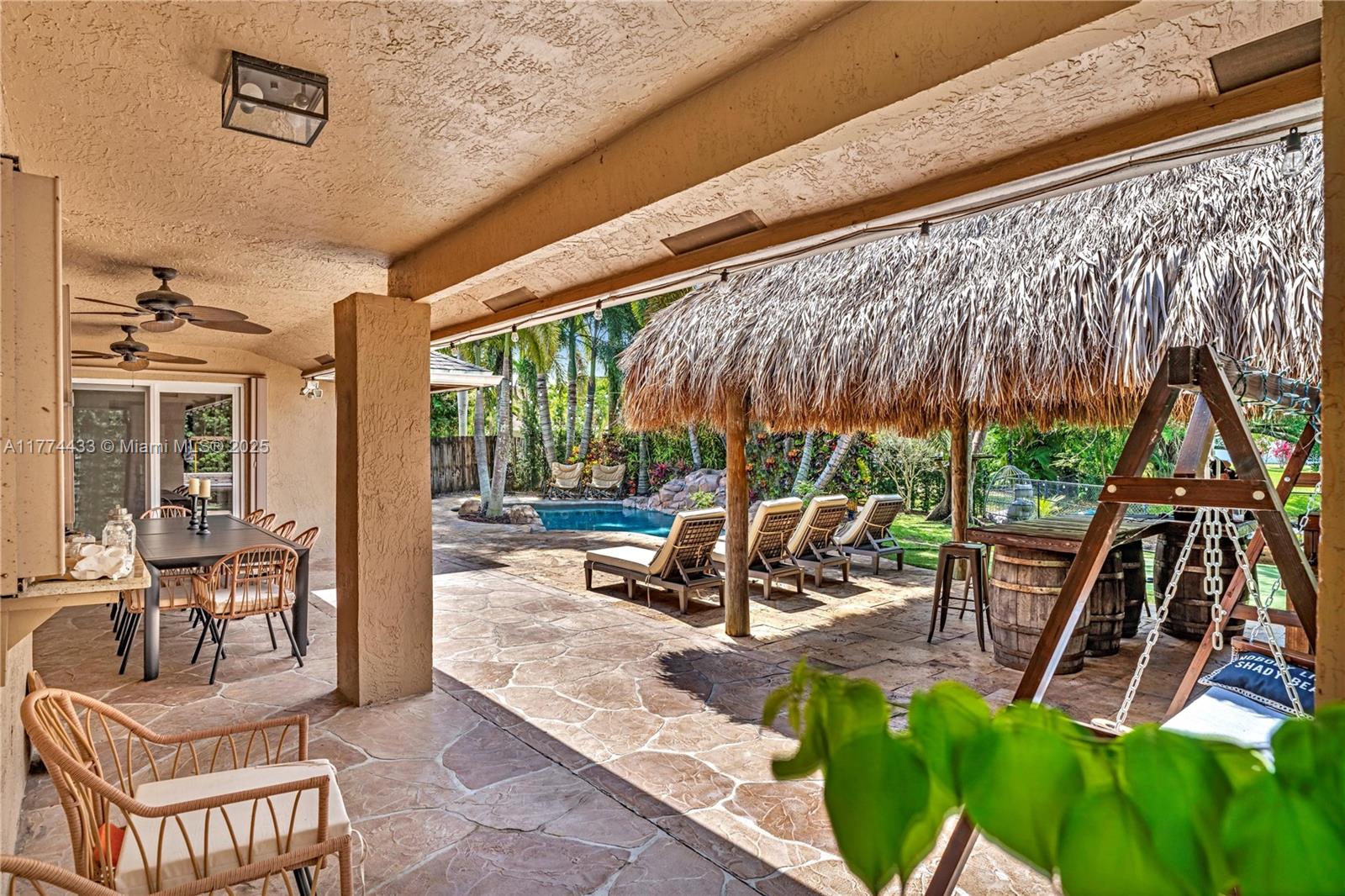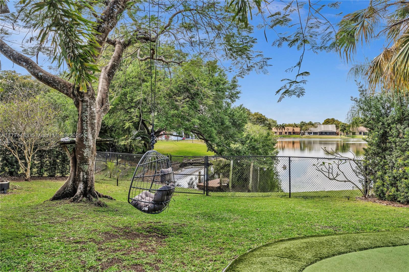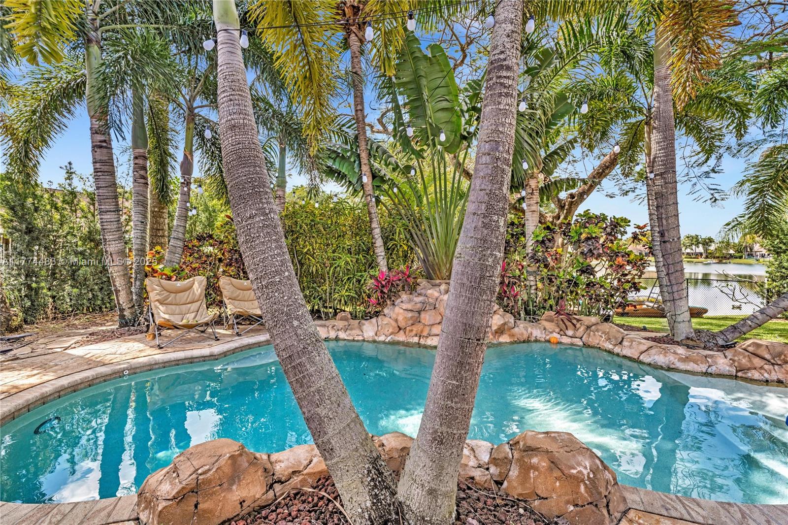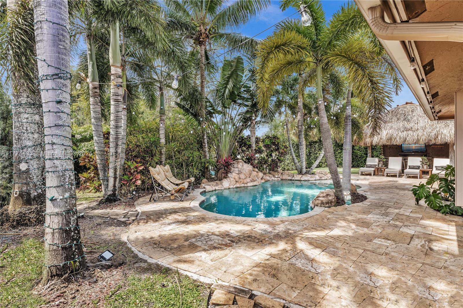 Located in Highly Desirable Country Address. This beautifully renovated home offers the perfect blend of comfort and luxury. Featuring impact windows for safety and efficiency, a brand-new A/C system and a brand-new pool heater, Built-in closets with charming barn doors. This home is move-in ready! Step outside to your oasis backyard overlooking a serene lake, complete with a private dock, tiki bar with a sink and full electric hook-up and a 3-hole putting green—perfect for entertaining or relaxing. Enjoy top A-rated schools and a prime location in a sought-after neighborhood.