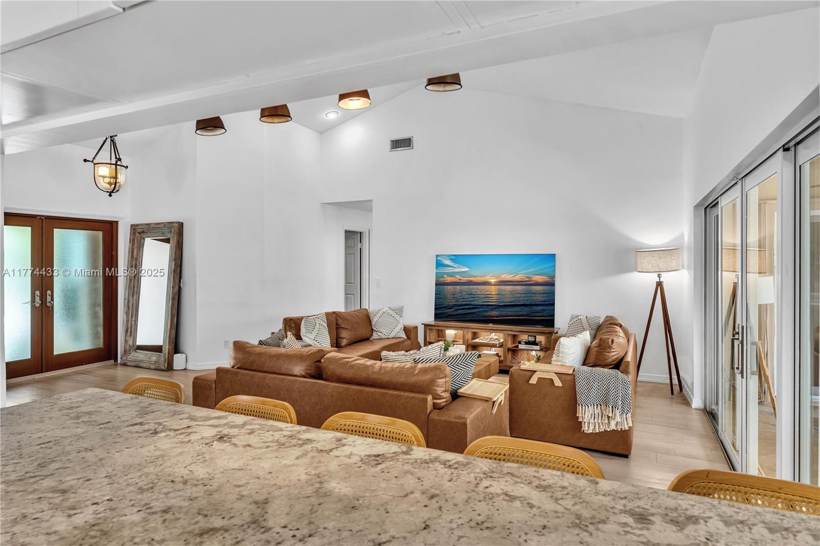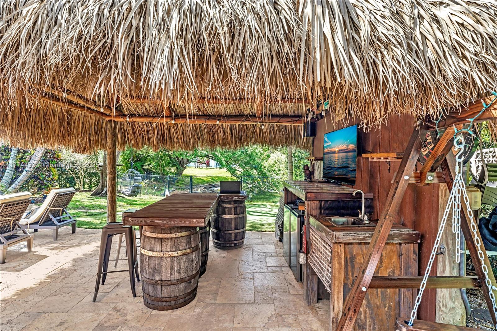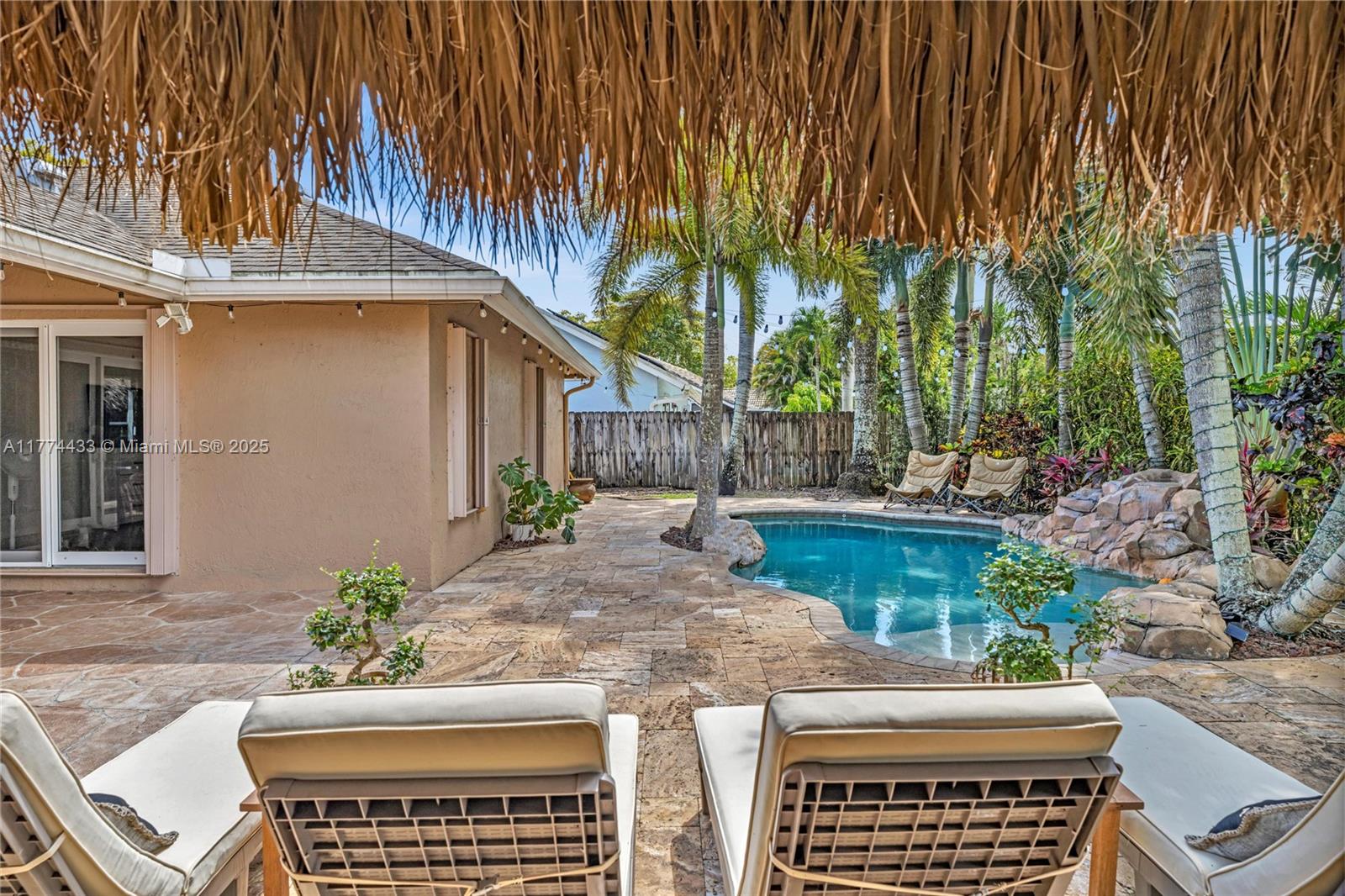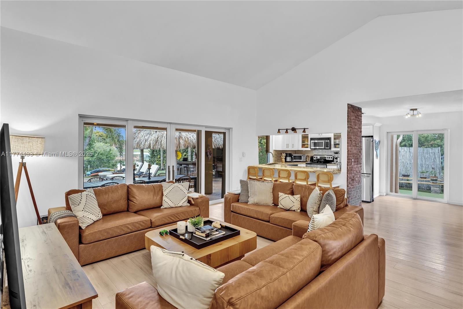 Located in Highly Desirable Country Address. This beautifully renovated home offers the perfect blend of comfort and luxury. Featuring impact windows for safety and efficiency, a brand-new A/C system and a brand-new pool heater, Built-in closets with charming barn doors. This home is move-in ready! Step outside to your oasis backyard overlooking a serene lake, complete with a private dock, tiki bar with a sink and full electric hook-up and a 3-hole putting green—perfect for entertaining or relaxing. Enjoy top A-rated schools and a prime location in a sought-after neighborhood.
