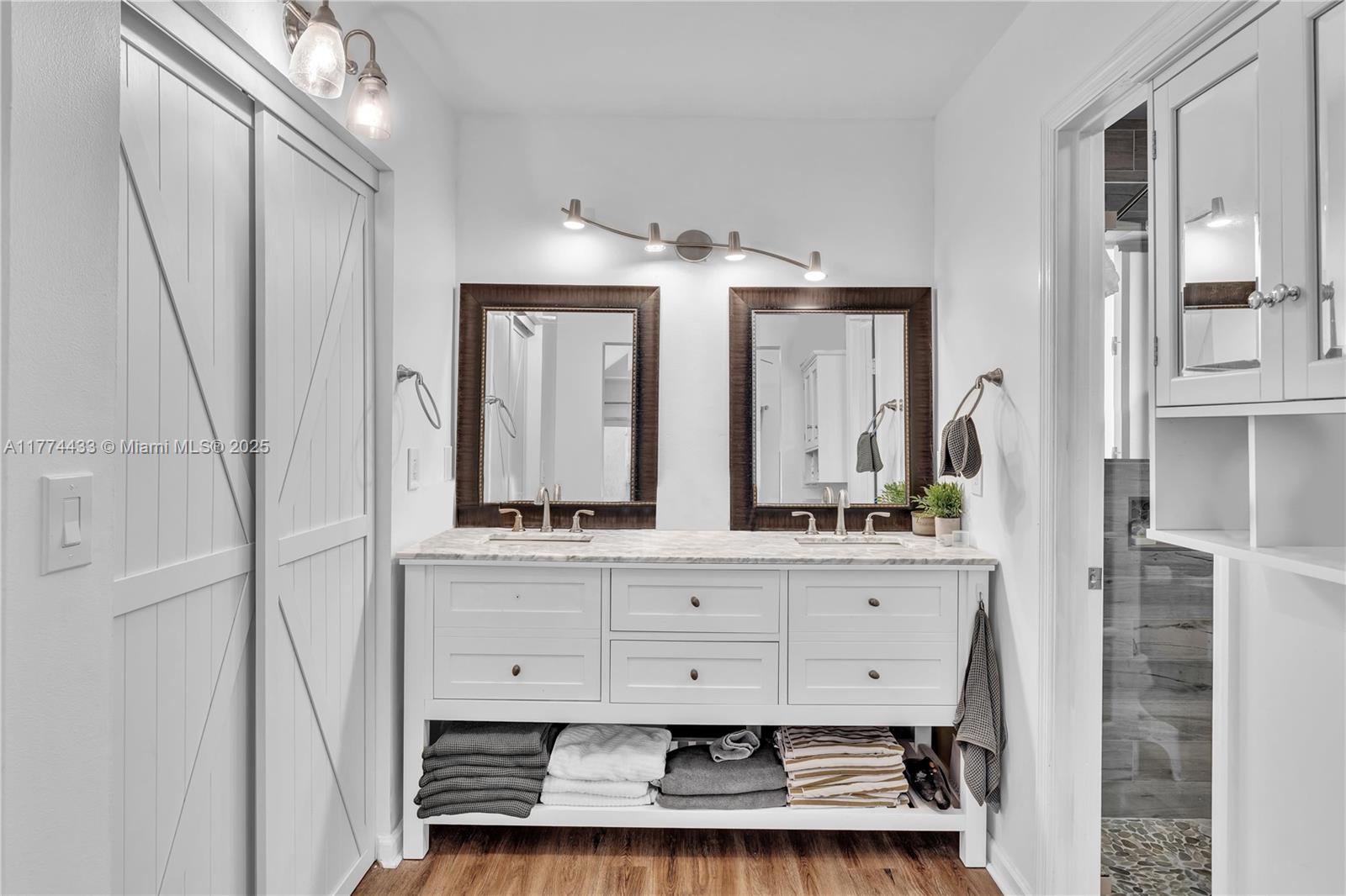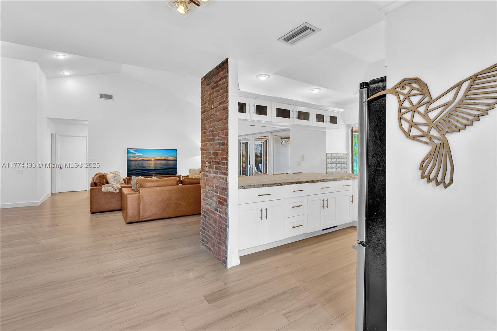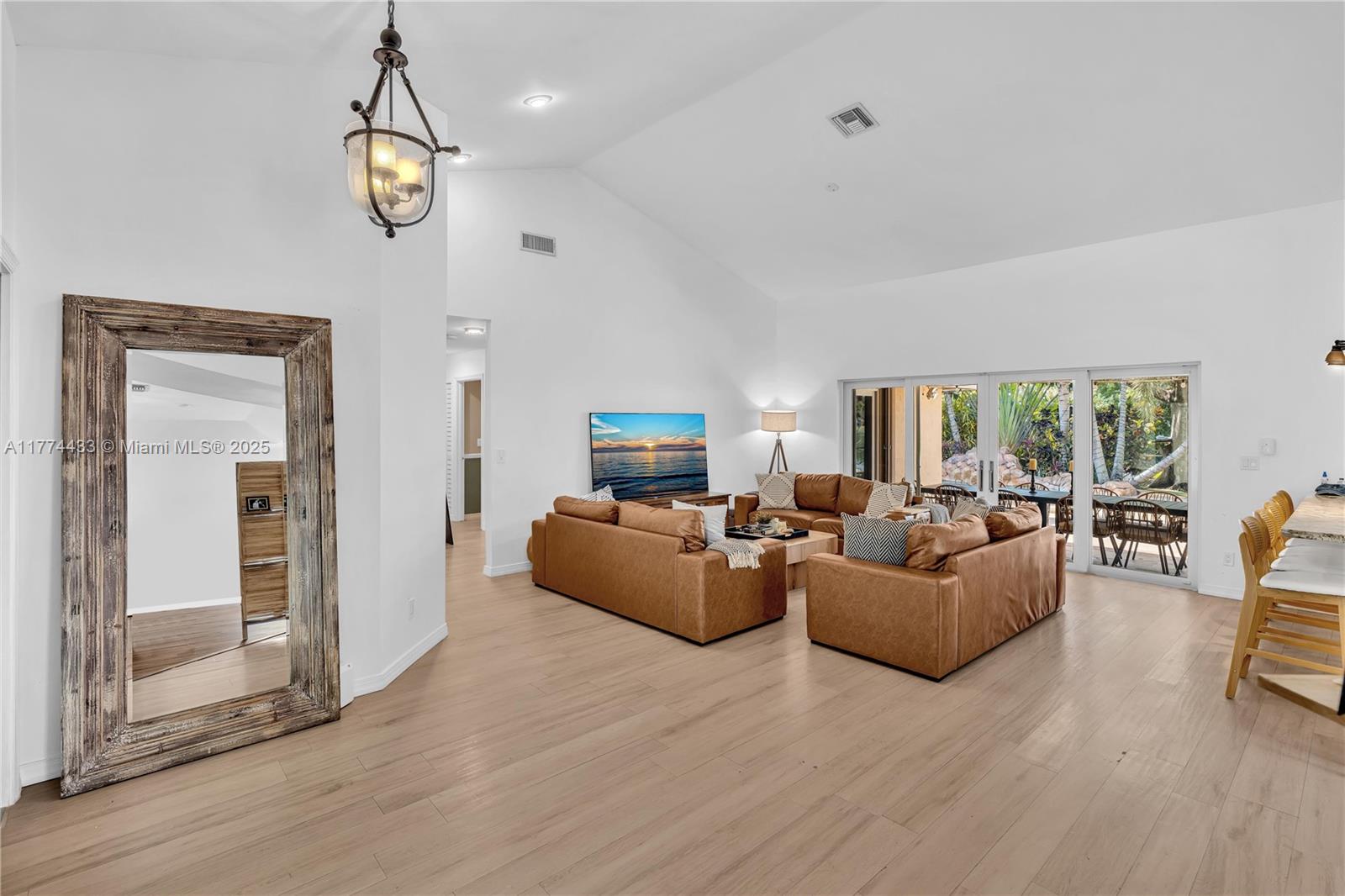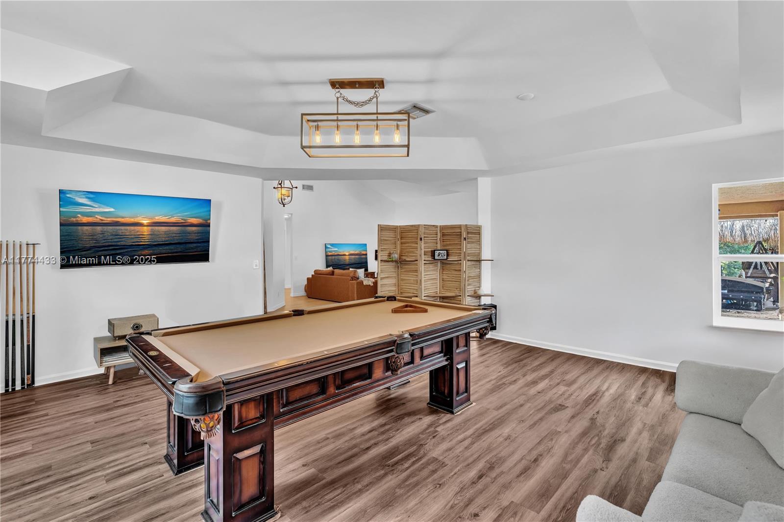 Located in Highly Desirable Country Address. This beautifully renovated home offers the perfect blend of comfort and luxury. Featuring impact windows for safety and efficiency, a brand-new A/C system and a brand-new pool heater, Built-in closets with charming barn doors. This home is move-in ready! Step outside to your oasis backyard overlooking a serene lake, complete with a private dock, tiki bar with a sink and full electric hook-up and a 3-hole putting green—perfect for entertaining or relaxing. Enjoy top A-rated schools and a prime location in a sought-after neighborhood.