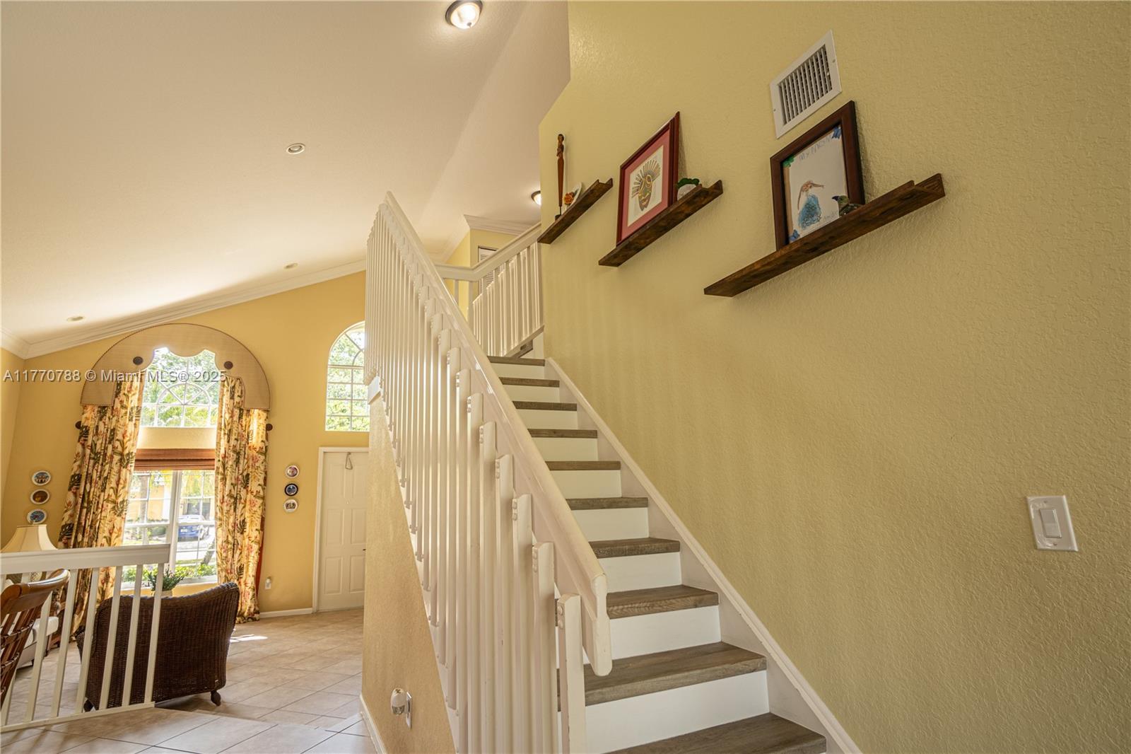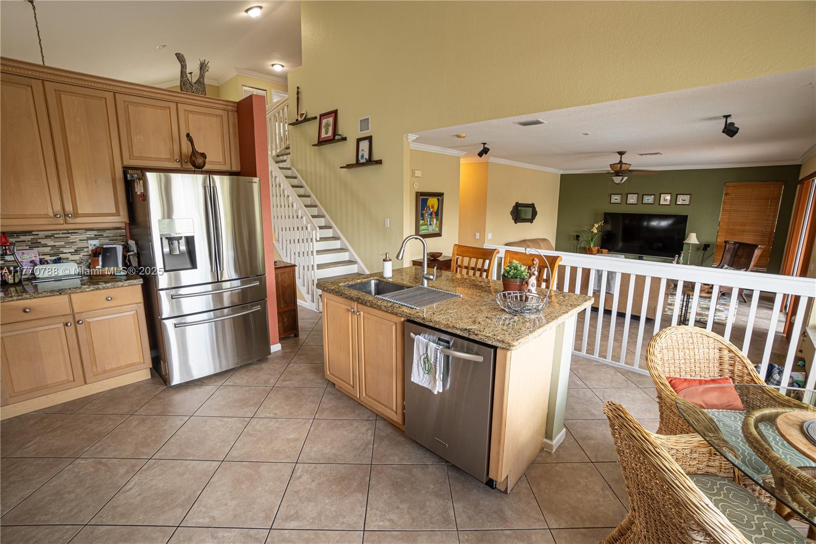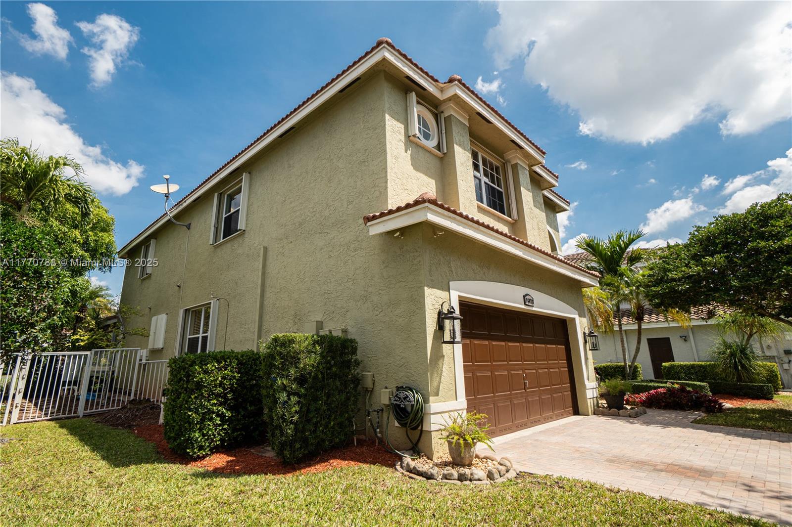 Stunning two-story home in the desired Silver Isles community offers spacious living area with plenty of natural light. Enjoy a unique multi-level layout featuring a convenient downstairs bedroom and full bath. The primary suite has walk-in closets and a split main bathroom with two toilets, two vanities, a soaking tub, and a shared shower. The kitchen offers stainless steel appliances and granite countertops. Enjoy a view of the pool and the lake from the breakfast area. Step outside to a sparkling pool, jacuzzi, and tranquil waterfront views. With a 300A electrical panel, accordion shutters, and a 2-car garage, this home is both stylish and practical. The community has a pool, gym, and playgrounds. Close to hospital, highways and shopping. Don't miss this amazing opportunity!