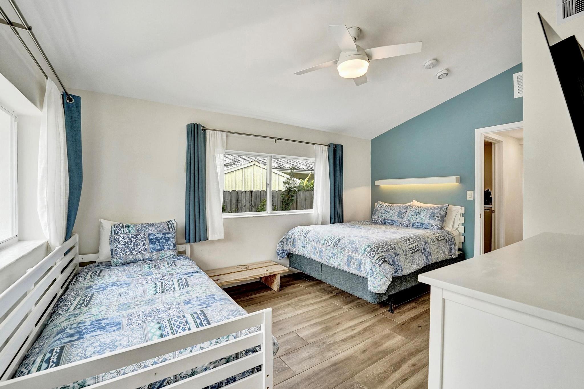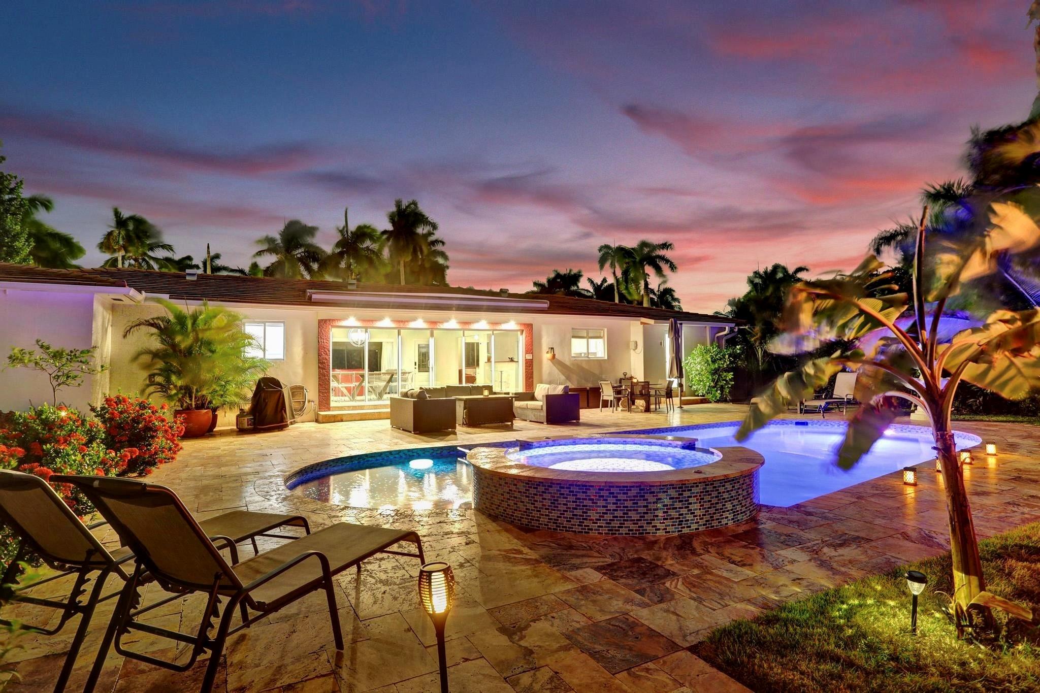 Live half a mile from Hollywood Beach and the Broadwalk! This beautiful 4 bed/3 bath pool home in Hollywood Lakes is on a quiet block, 2 blocks from South Lake and 1.5 miles to the ArtsPark and Downtown Hollywood. Property has over $400k in upgrades, including total pool/backyard renovation, solar panels w battery for hurricane backup, new AC/ductwork, gated back carport and newer appliances. They also added permitted bedroom, bathroom and laundry room. The private backyard (on a double lot!), features a heated saltwater pool, jacuzzi, toddler pool, outdoor shower and tropical landscaping with palms and fruit trees. Conveniently located 6 miles to FLL airport, 5 miles to Dania Pointe and 9 miles to Downtown Ft Lauderdale.
