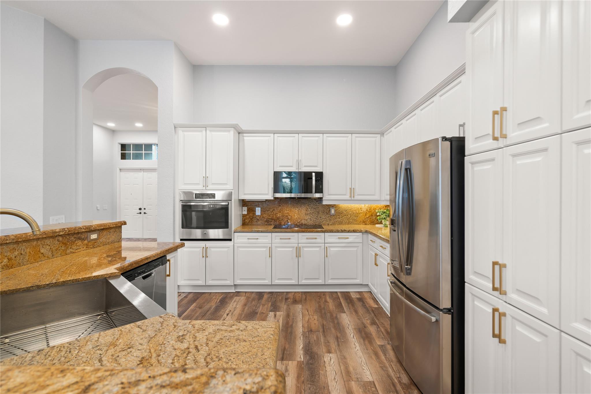 Stunning home in The Cove, the most prestigious enclave of Savanna. Impeccably maintained home features a triple-split floor plan w/4 bedrooms plus office and 3 full bathrooms. Pre-inspected for the most discerning buyer, high-end lighting, renovated kitchen with new hardware, wood-look flooring throughout, and a freshly painted interior. Even the air ducts have been professionally cleaned. The expansive backyard includes a spacious patio, built-in BBQ, and lush green space—perfect for entertaining. Amenities, including multiple pools, a waterslide, a children's aquatic play area, mini golf, basketball courts, a roller hockey rink, and a clubhouse with a multipurpose field. Ideally located near top-rated schools, premier shopping, fine dining, and scenic parks.