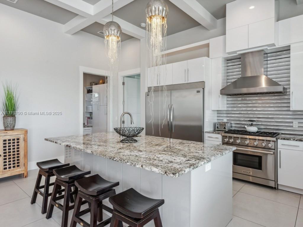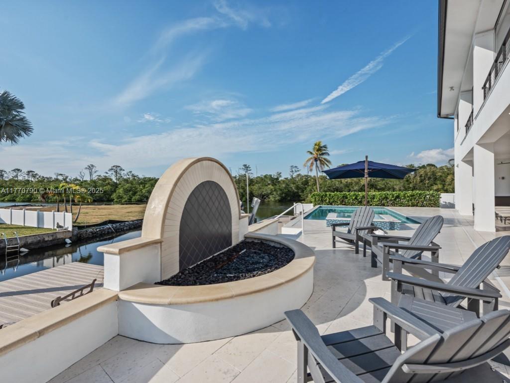 Spacious 4 BR. Plus home. Built in 2021. Waterfront home with Western exposure. Quick out to Naples Bay. One mile to Downtown Naples. Water views & pool views from every room. Elegant entry with soaring 17ft. ceiling all glass. Elevator, linear fireplace, pantry, 2 kitchens, Great room design with coffered ceilings. 12 & 10 ft. ceilings throughout. Two master suites. Covered patio & pool deck 1900 sq.ft. with gas heated pool & 8-man spa with fire pit. Dock 70 ft. in length 1100 sq ft. with lift for boat. Family room 556 sq.ft. possible in-law suite, home gym or 5th BR. Outdoor summer kitchen. 2–5 ton A/C, generator, 3 car garage. Electric storm shutters. Impact glass. Fenced in yard. Home being sold below appraised value. NO WATER IN HOME OR ON POOL DECK DURING IAN.