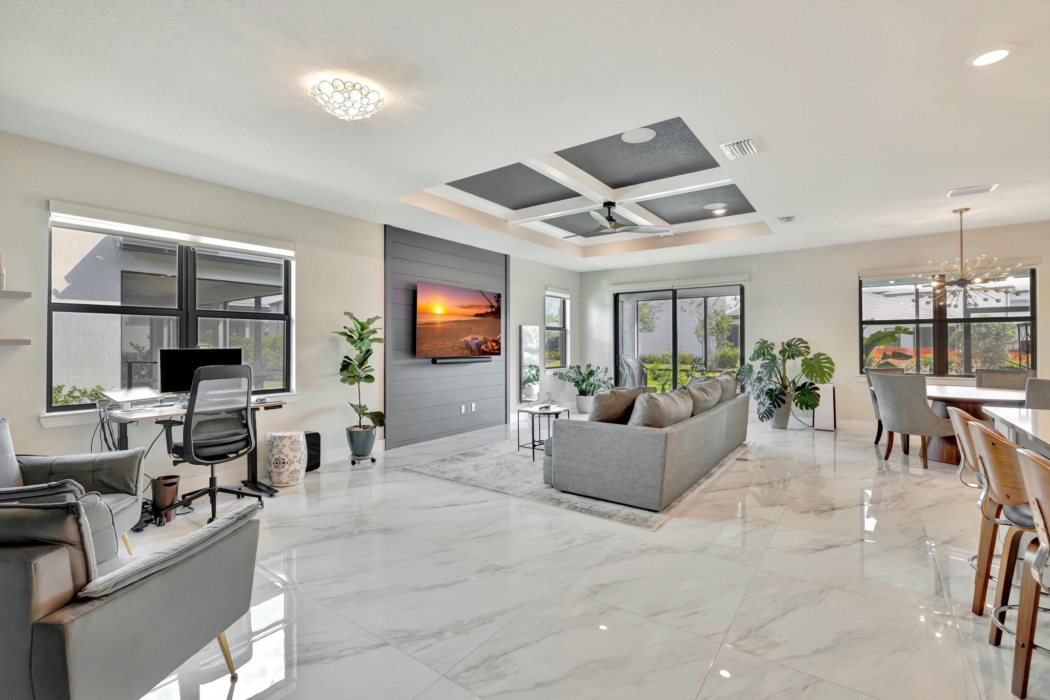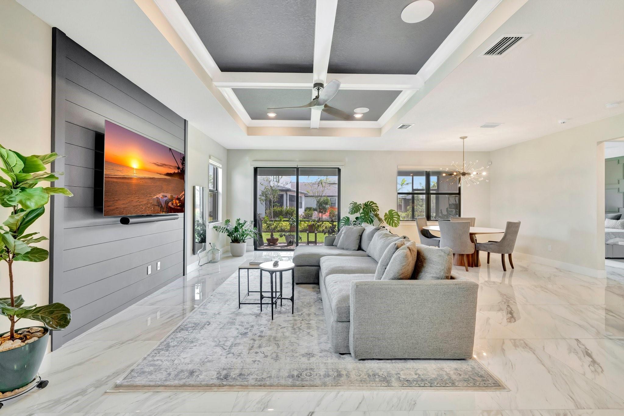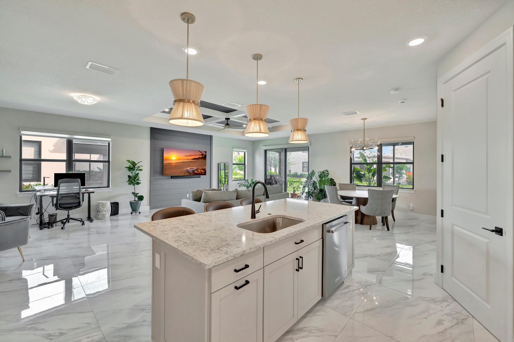 This stunning new construction offers a perfect blend of modern luxury and functional design. Boasting 3 spacious bedrooms, 2 elegant bathrooms, and an additional den/office space, this residence is ideal for families or professionals. The upgraded flooring throughout the house adds a touch of sophistication and durability. The open-concept living area seamlessly integrates ready state-of-the-art Sonos sound system, wired with zones throughout the house, providing an immersive audio experience for entertainment lovers. The double garage offers ample storage and parking space. Located in a vibrant community with resort-style amenities, you'll enjoy access to a fully-equipped gym, pickleball courts, a cozy fire pit, and more. This home is not just a place to live—it's a lifestyle upgrade.