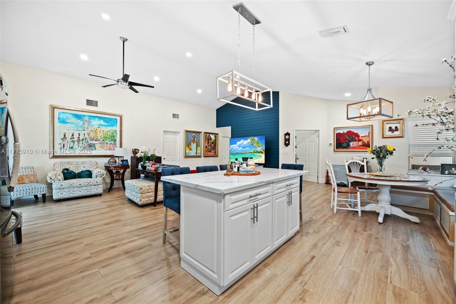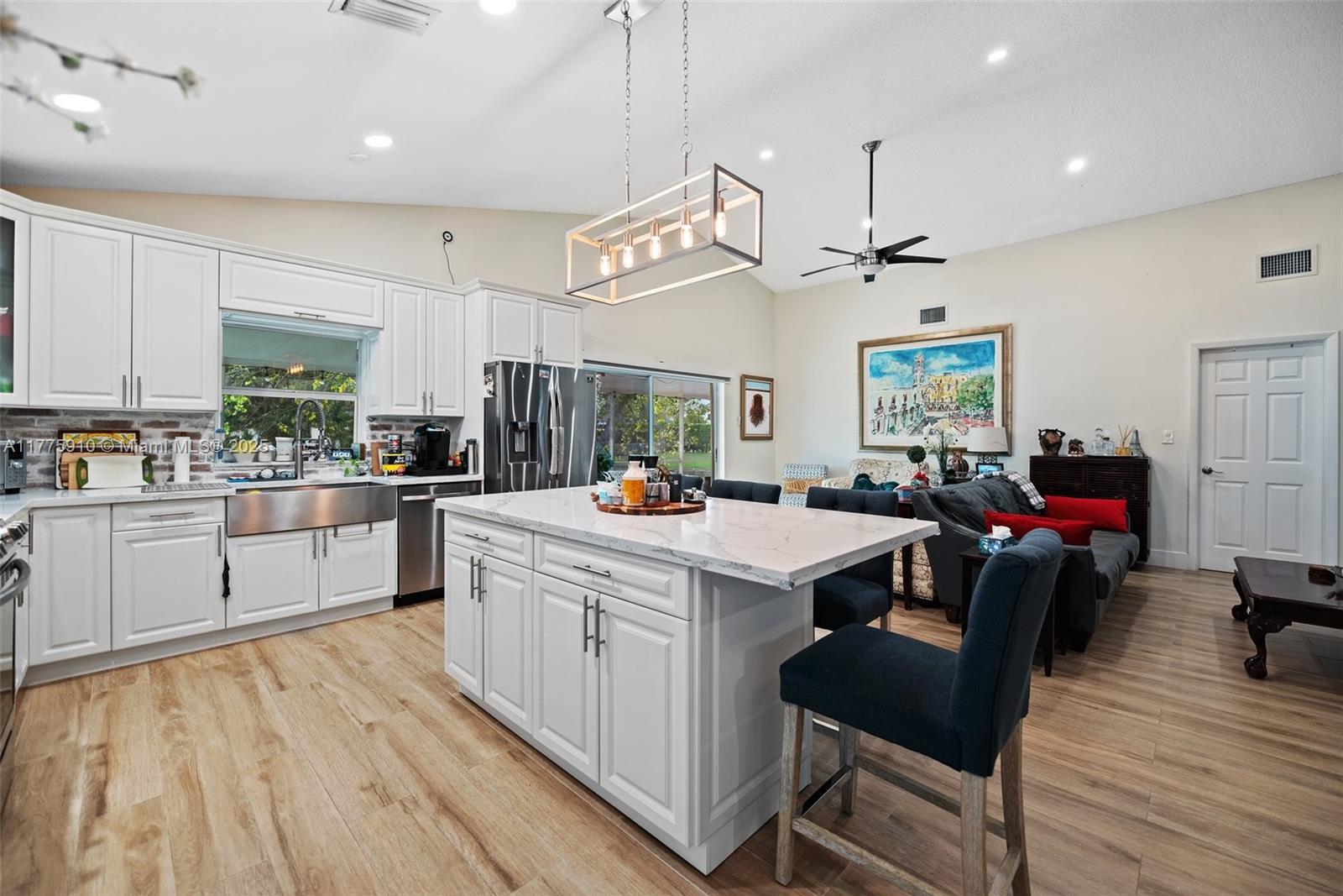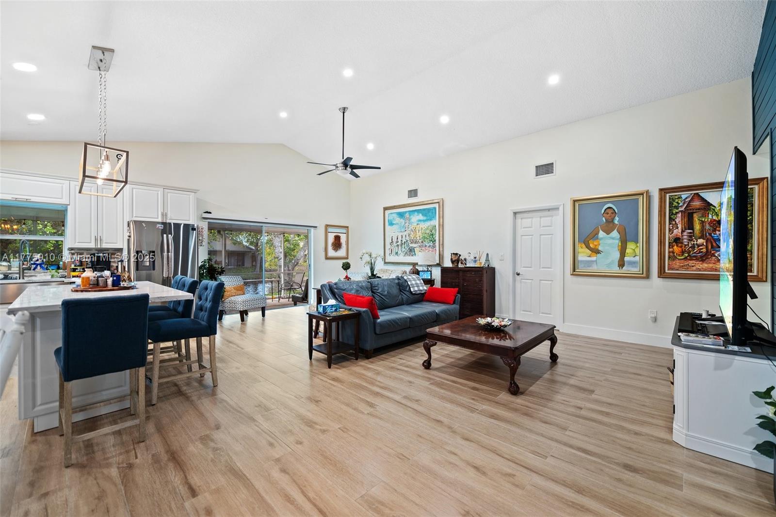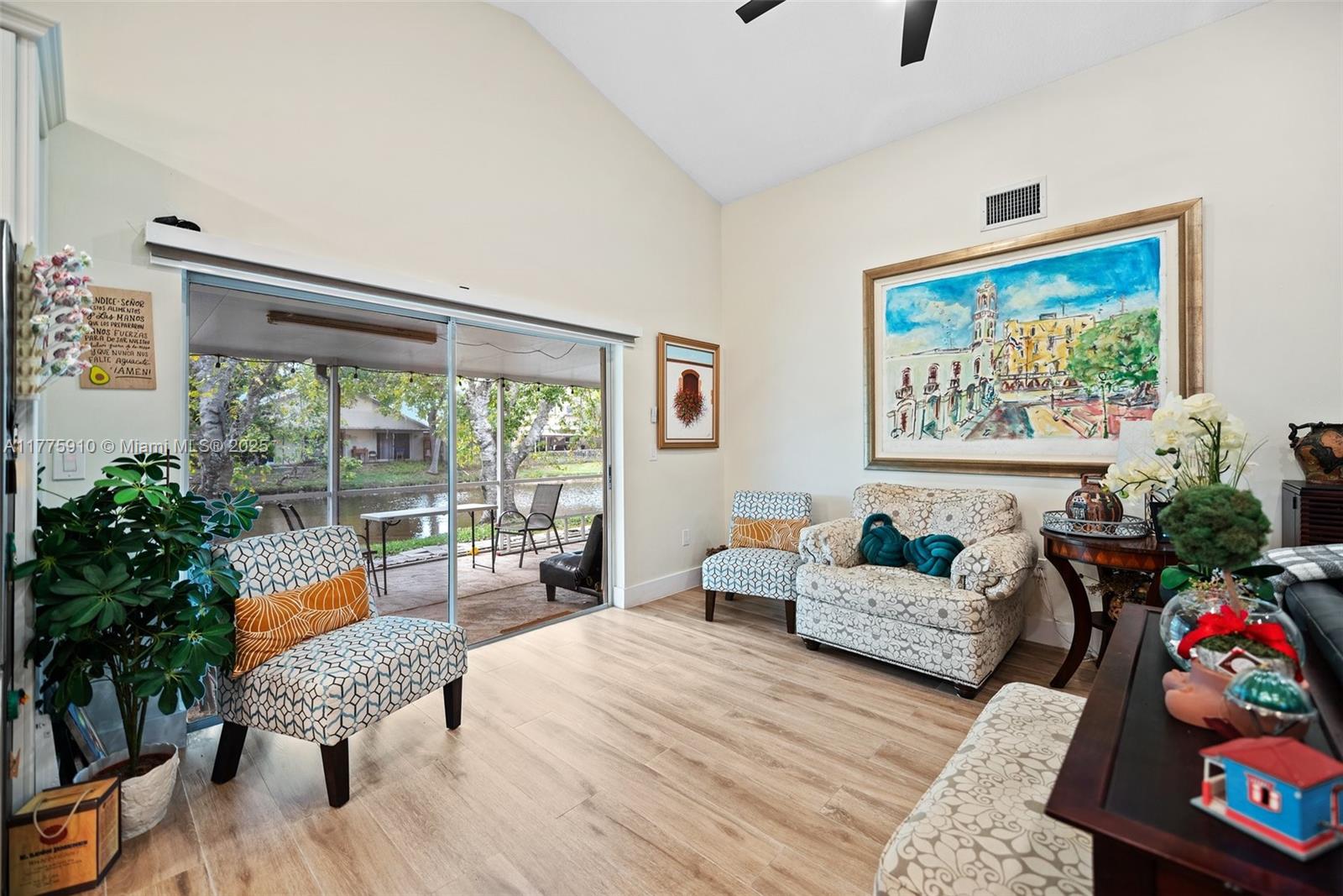 Rare corner-lot w/ wraparound lake views in Sawgrass Estates! Open floor plan, vaulted ceilings, 2020 kitchen w/ quartz, 36” SS farmhouse sink, gas range, porcelain wood-look tile. Impact windows/doors (2021–22) + shutters for 2 sliders & garage window. 2018 Rheem AC, 2021 Titan tankless water heater, 2022 insulated garage door, widened paver driveway. 2024 patio roof reseal, 2022 exterior paint, LED lighting, security cameras. Sprinkler pump uses lake water. Gas appliances avg $10–$15/mo. Bathrooms updated 2019. HOA includes clubhouse & pool.