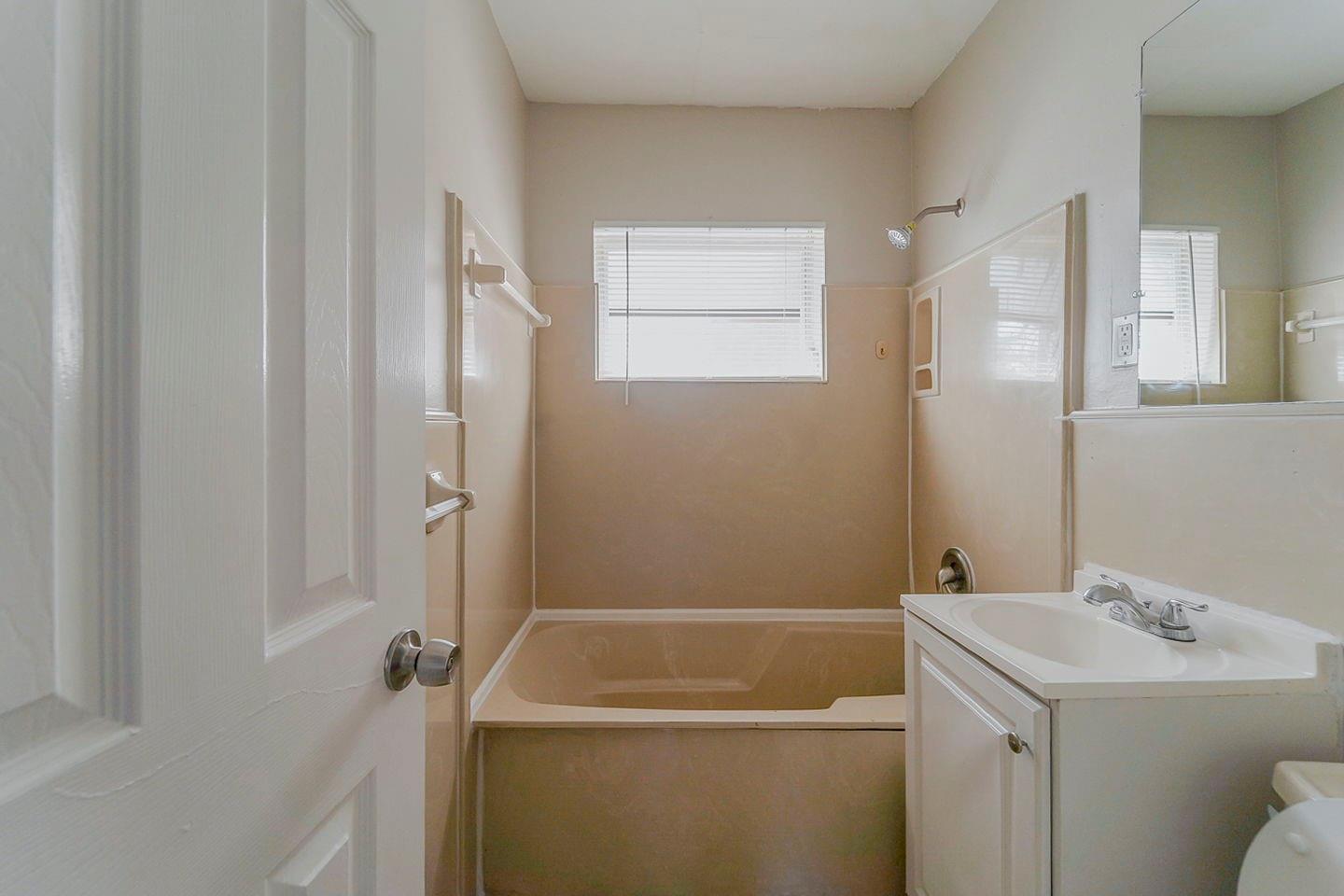 Charming 1-story home featuring a curved driveway and a small front porch, perfect for relaxing. The inviting French doors lead to a spacious interior, while the large backyard is fully enclosed with a wood fence, offering plenty of privacy and room for outdoor activities. Ideal for comfortable living and entertaining!