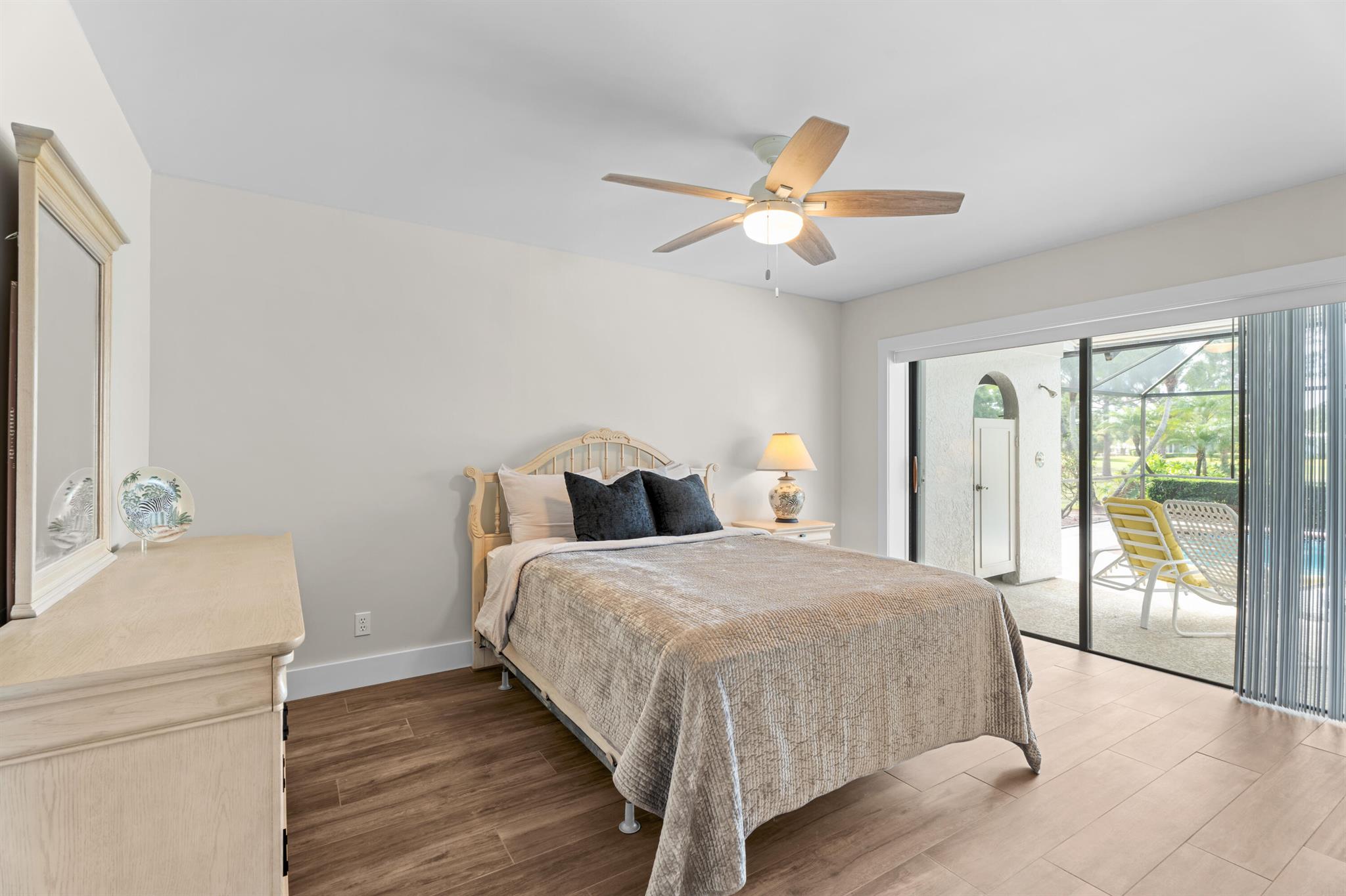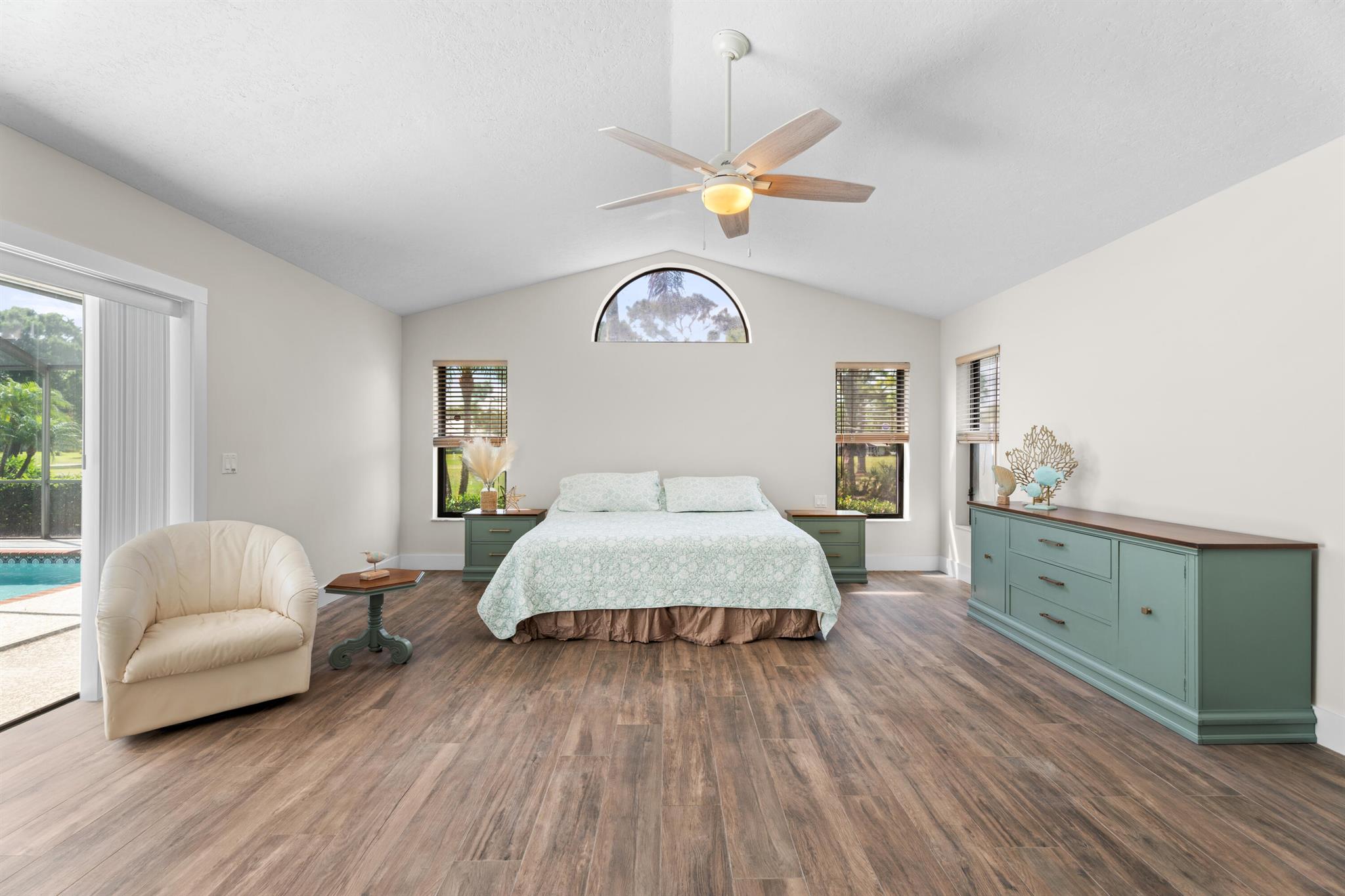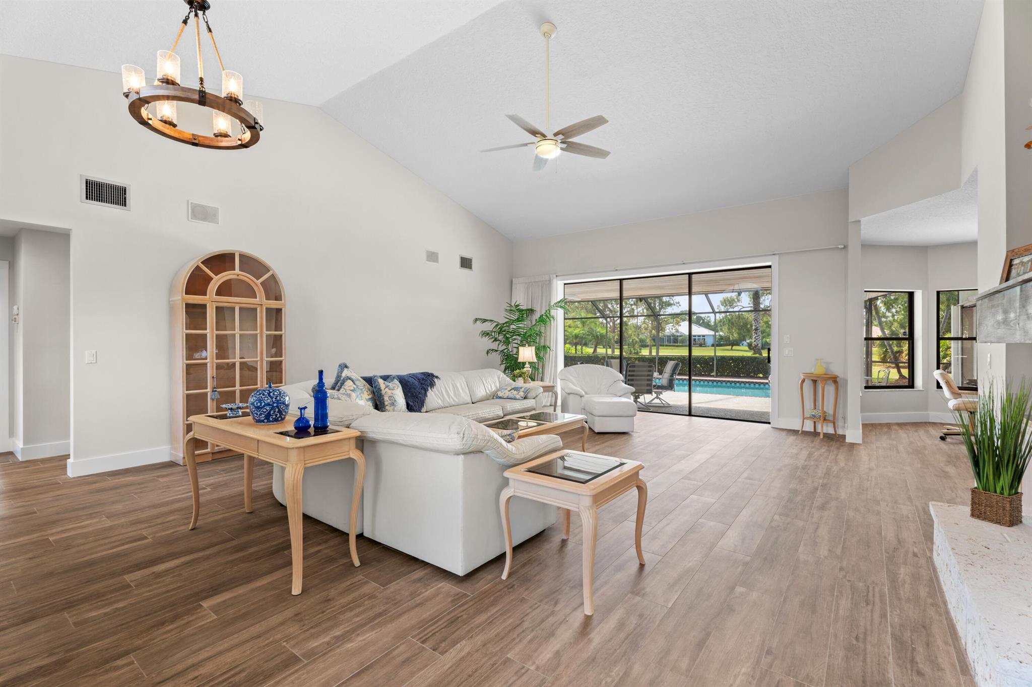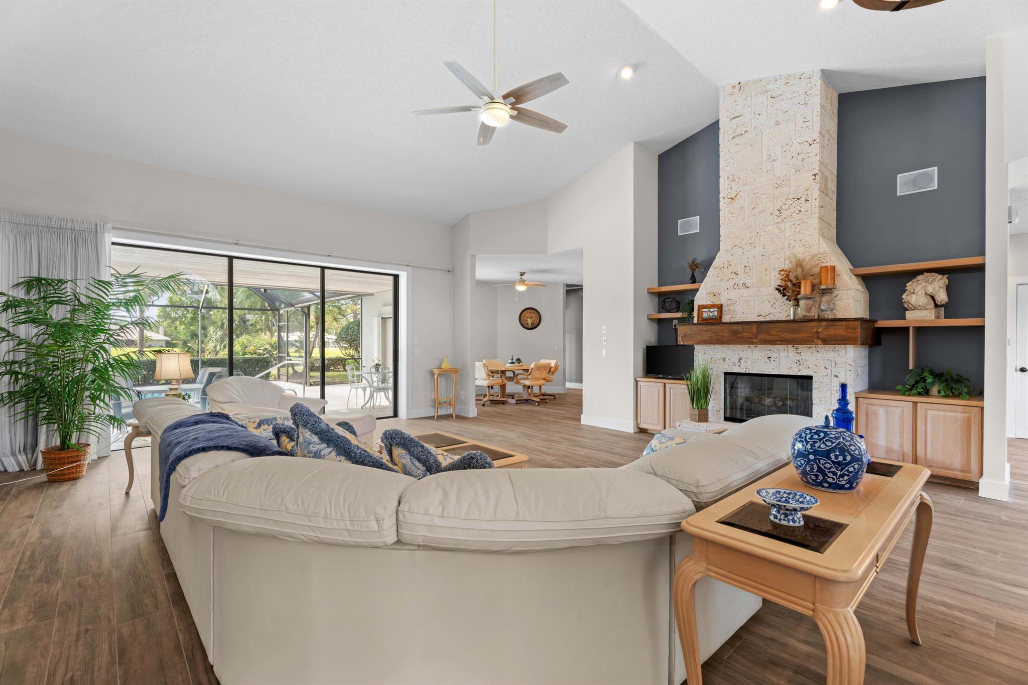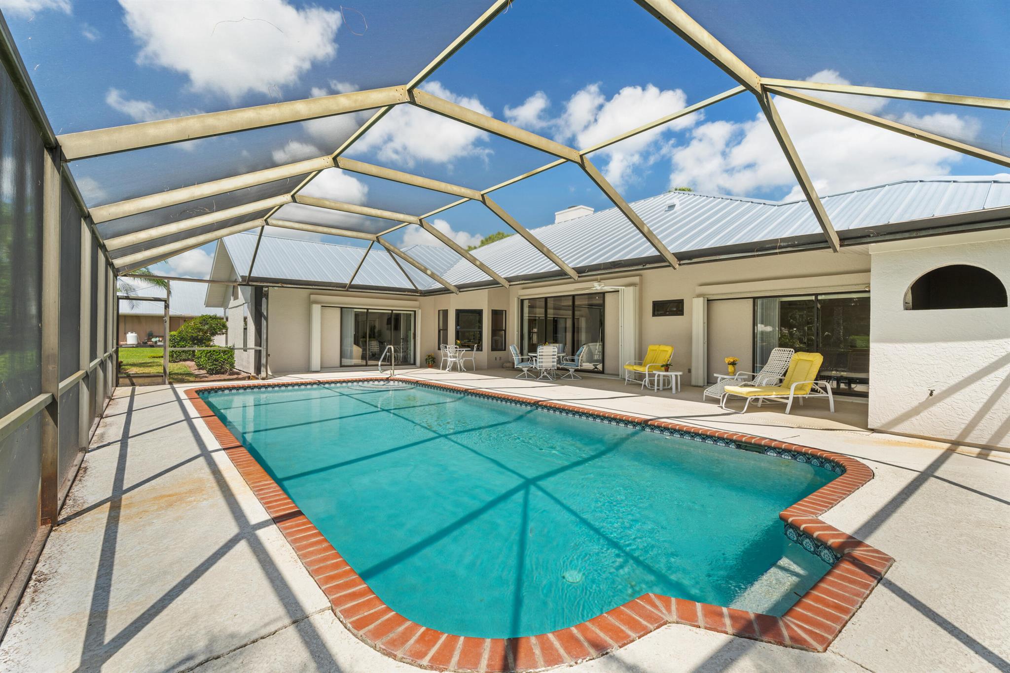 Nestled in the desirable golfing community of Evergreen, this spacious 4-bedroom, 3.5-bath ranch with a 3-car garage offers an exceptional living experience. The completely renovated home is move-in ready, with a brand-new roof for peace of mind. The light-filled living area features a decorative fireplace and sliding glass doors leading to the pool-patio area. The luxurious owner's suite has patio access, a spa-like bathroom with dual sinks, a separate tub and shower, and a large walk-in closet. The split-bedroom layout offers three private bedrooms, providing ideal privacy with two well-appointed bathrooms. Step outside to the spacious patio with a cabana bath and outdoor shower, while the pool offers year-round relaxation. Located within the renovated 18-hole Crane Watch Club Golf Cour