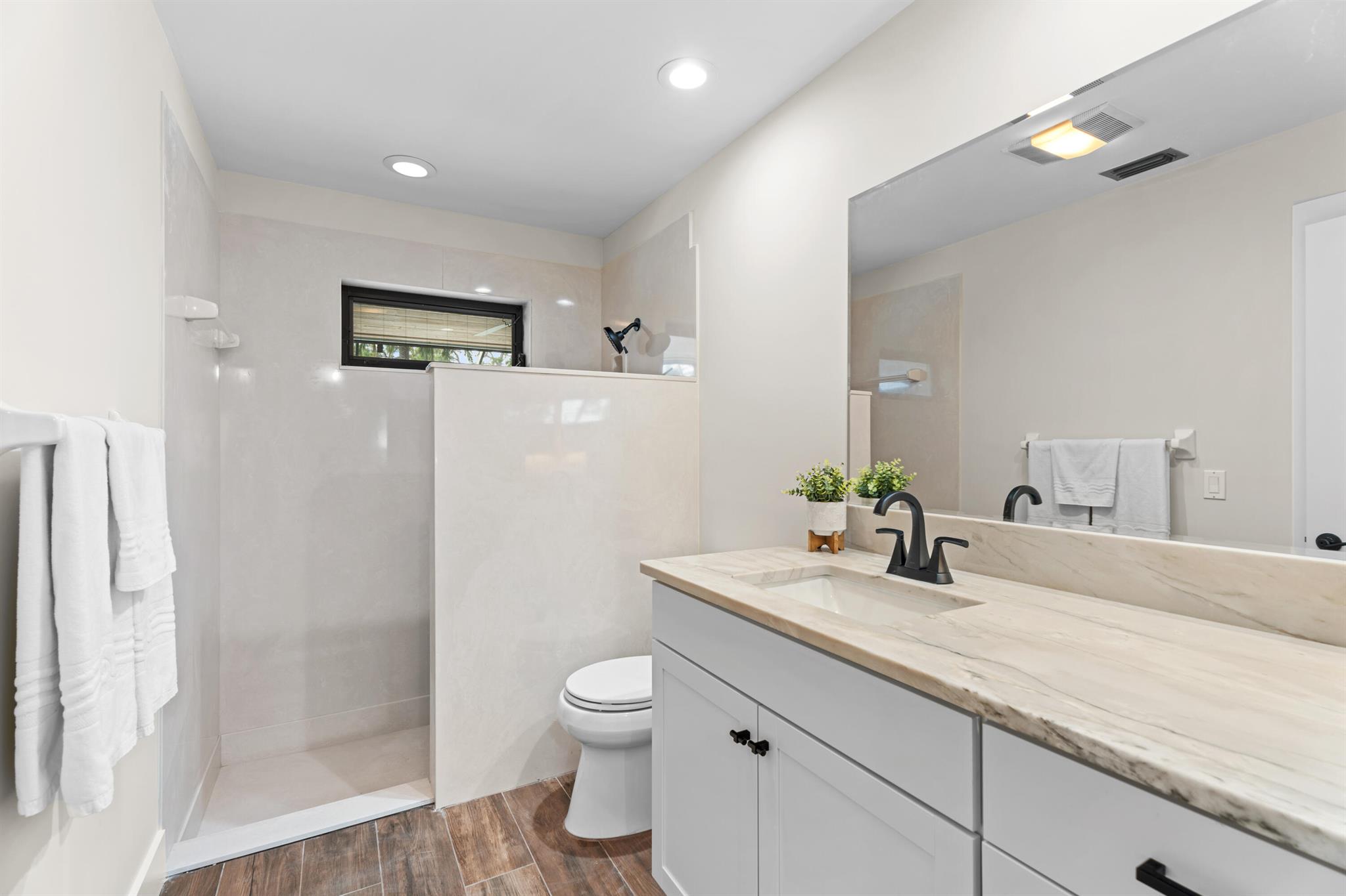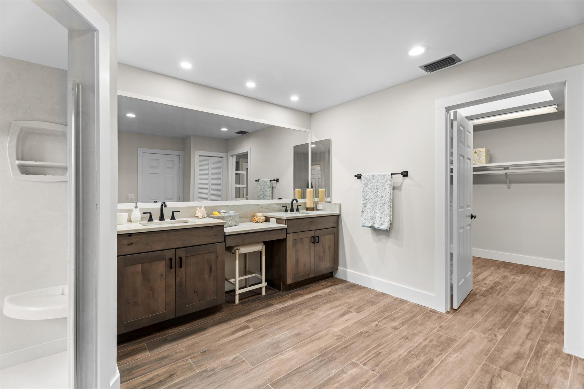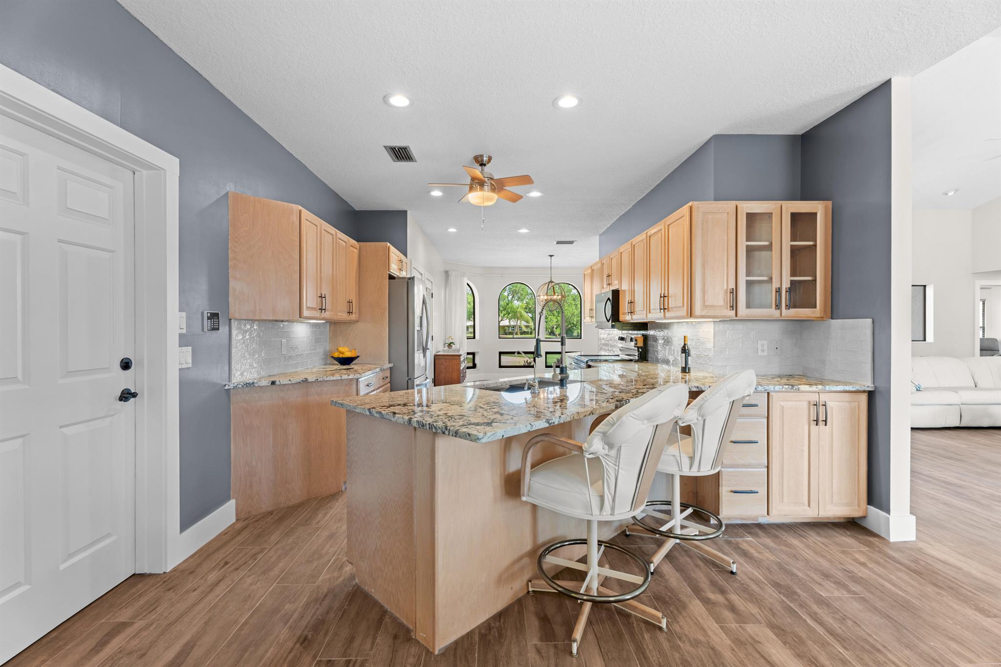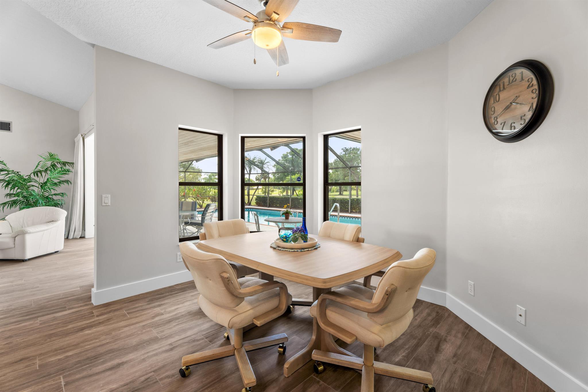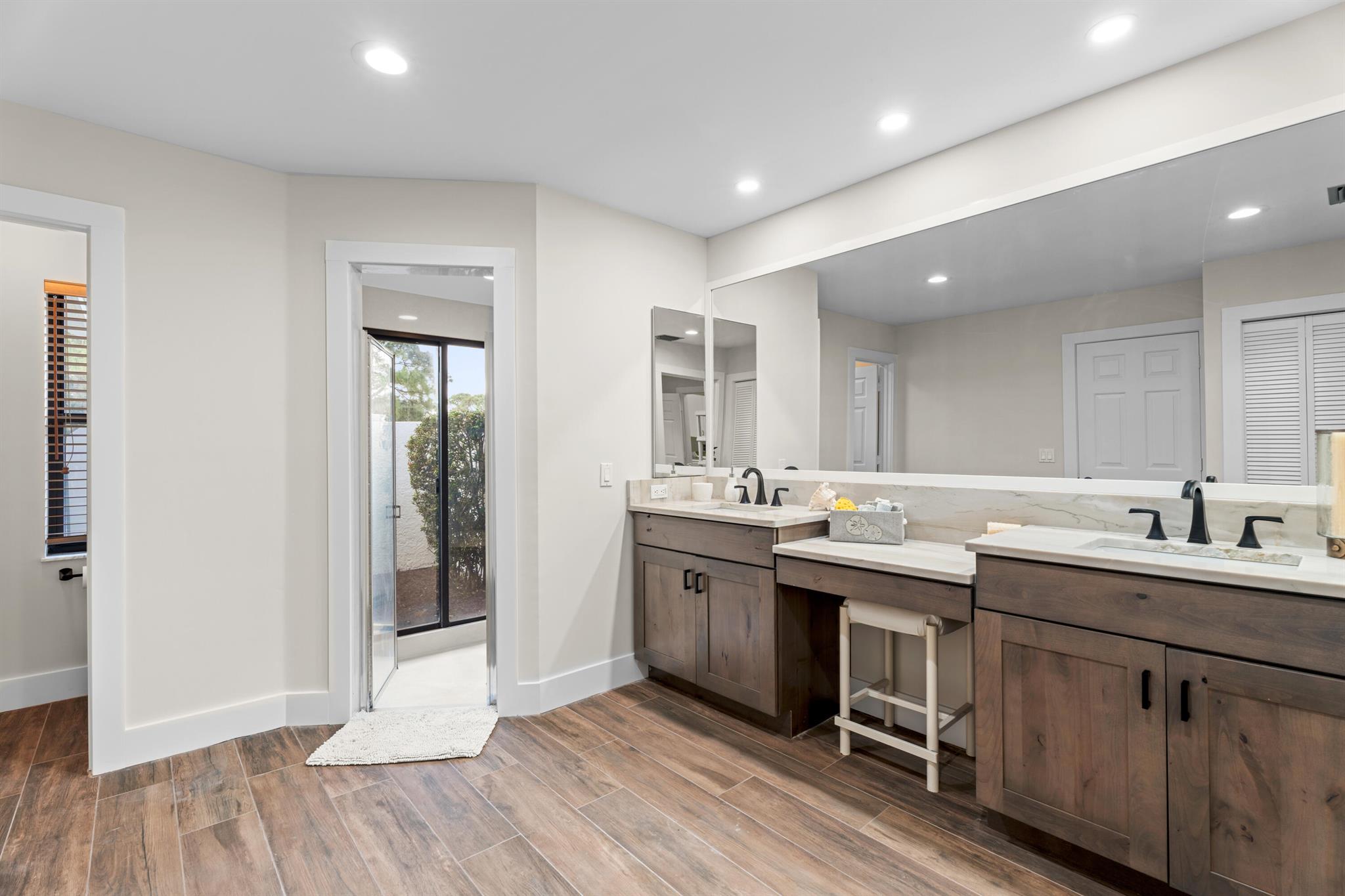 Nestled in the desirable golfing community of Evergreen, this spacious 4-bedroom, 3.5-bath ranch with a 3-car garage offers an exceptional living experience. The completely renovated home is move-in ready, with a brand-new roof for peace of mind. The light-filled living area features a decorative fireplace and sliding glass doors leading to the pool-patio area. The luxurious owner's suite has patio access, a spa-like bathroom with dual sinks, a separate tub and shower, and a large walk-in closet. The split-bedroom layout offers three private bedrooms, providing ideal privacy with two well-appointed bathrooms. Step outside to the spacious patio with a cabana bath and outdoor shower, while the pool offers year-round relaxation. Located within the renovated 18-hole Crane Watch Club Golf Cour