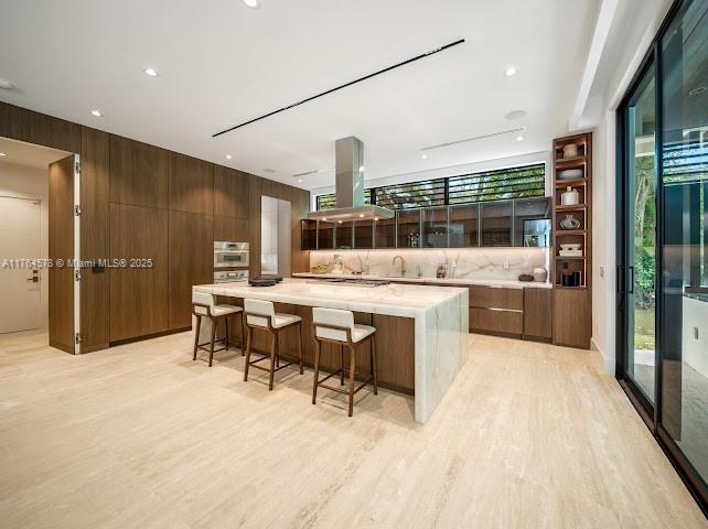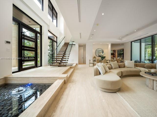 Stunning new home located on beautiful Granada Blvd.. Its grand entrance with spectacular swivel front door, exterior and interior water features and a 25 ft travertine wall sets the tone for the sophistication within. This breathtaking home offers a keystone fireplace, stone floors, elevator & mud room. Its jaw dropping kitchen is a culinary dream, with a butler's pantry & separate wine closet. Living areas overlook the outdoor oasis with pool & summer kitchen, perfect for alfresco dinning and entertaining. The family/man cave room includes a dazzling bar that is a work of art. Gorgeous primary suite and with covered terrace and spectacular bath with steam shower, free standing tub, and outside shower that transcends you to a 5 star hotel. Come see this masterpiece and make it yours.