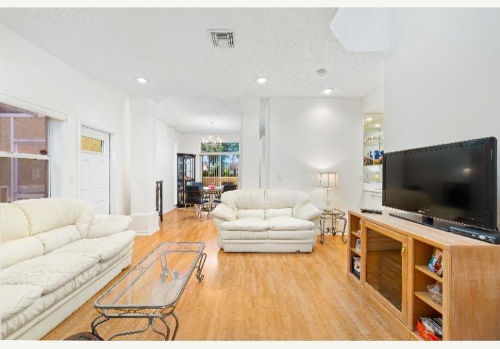 WOW FREE STANDING VERY LARGE TWO STORY 4 BEDROOM 3 FULL BATHS WITH A GARAGE. THIS WAS THE ORIGINAL MODEL HOME, SO IT HAS NICE EXTRAS! THERE IS ONE BEDROOM AND FULL BATH DOWNSTAIRS, THREE BEDROOMS INCLUDING THE PRIMARY BEDROOM UPSTAIRS. LOVELY PRIMARY BATH FEATURES FLOATING VANITY, ROMAN TUB & SEP. SHOWER. SECONDARY BEDROOMS ARE LARGE AND SHARE A AJOINING STYLE BATH. VERY LARGE EAT IN KITCHEN WITH WHITE CABINETS AND SLIDING GLASS DOORS TO YOUR BIG BACKYARD. LIVING AREAS INCLUDE LIVING ROOM, WITH A WET BAR AND DINING ROOM WHICH ALSO HAS SLIDERS LEADING TO YOUR YARD. BIG COMMUNITY POOL CLOSE BY. PORTOFINO 2 ASSOCIATION FEE COVERS ROOF, PAINTING, OUTSIDE OF HOME BUIDING INSURANCE, WATER & ALL OUTSIDE LANDSCAPING MAINT. ETC... GREAT BUY & EASY LIVING HURRY COME SEE!