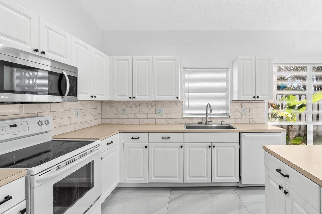 What a rare find in Boynton Beach! Gorgeous 3/2 ranch home in the beautiful gated community of The Colony. Open floor plan, bedrooms are split, brand new beautiful porcelain floors, NEW ROOF, NEW A/C, private, tropical backyard. Enjoy the community pool, fitness center, pickleball courts, or just relax by the lake.