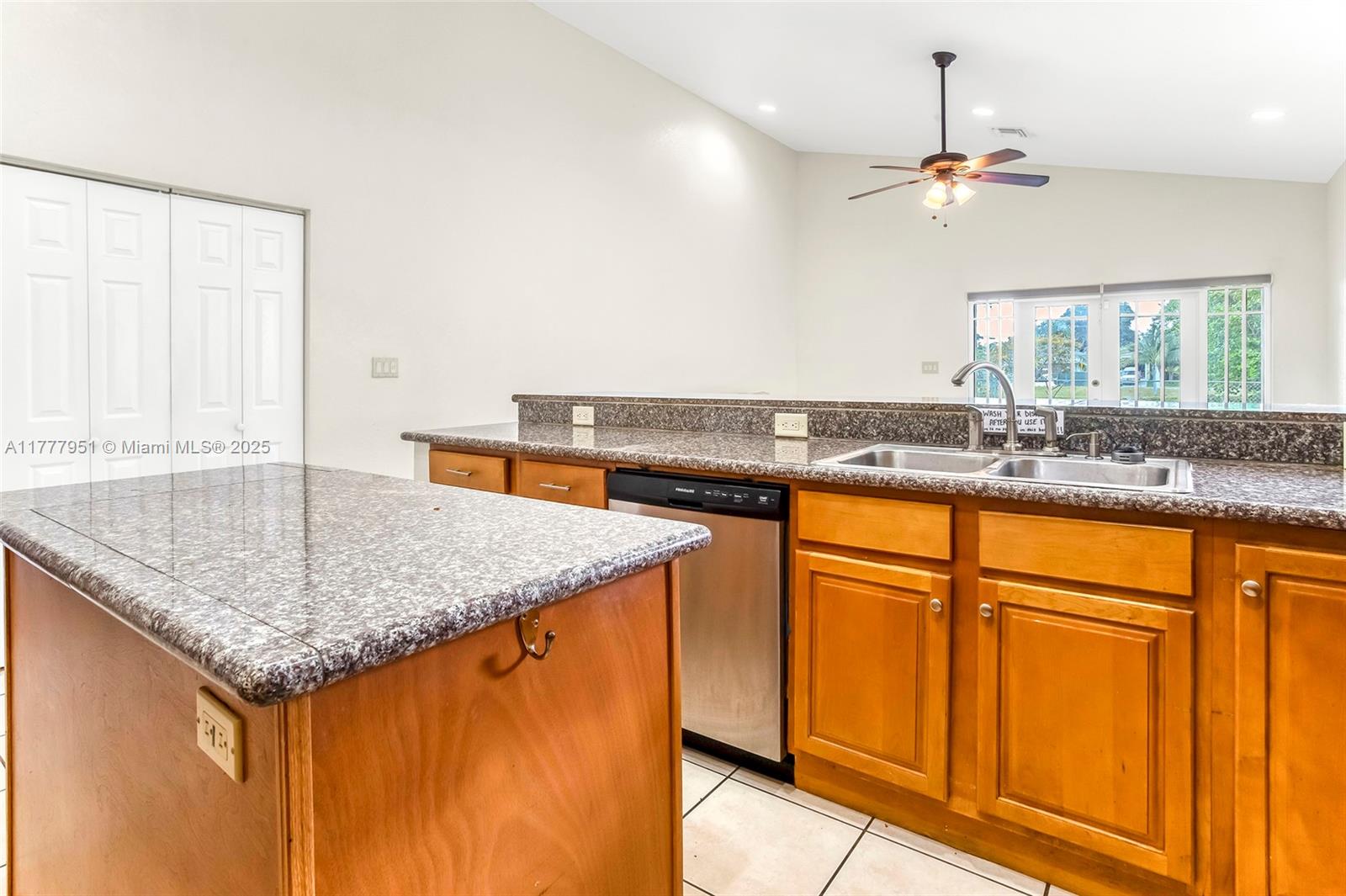 WELCOME TO YOUR BEAUTIFUL HOME IN A QUIET COMMUNITY JUST MINUTES AWAY FROM FORT LAUDERDALE BEACHES AND SURROUNDED WITH SHOPPING, DINING, DRIVE -IN MOVIES AND SPORT ARENAS. THIS HOME FEATURES VAULTED CEILINGS, TILE FLOORS THROUGHOUT, SPACIOUS KITCHEN WITH AN ISLAND, GRANITE COUNTER TOPS, EXCELLENT APPLIANCES, LOTS OF NATURAL LIGHTING WITH EXTRA CEILING LIGHTING, HUGE FAMILY ENTERTAINMENT ROOM, SEPARATE DINING AND LIVING ROOMS, 3 SPACIOUS BDRMS & CLOSETS, PRIMARY BDRM EXTRA WALK-IN CLOSET, JETTED ROMAN TUB, SEPARATE SHOWER WITH HIS/HERS VANITIES, WASHER/DRYER, 2 CAR GARAGE WITH ADD'L PARKING IN DRIVEWAY. STEP OUTSIDE YOUR LRG FENCED BACKYARD TO A COVERED PATIO OVERLOOKING A LAKEFRONT VIEW. ELECTRIC POWERED TOOL SHED/MAN-CAVE. FRIENDLY NEIGHBORS ON A CUL-DE-SAC STREET. PRICED TO SELL FAST !!