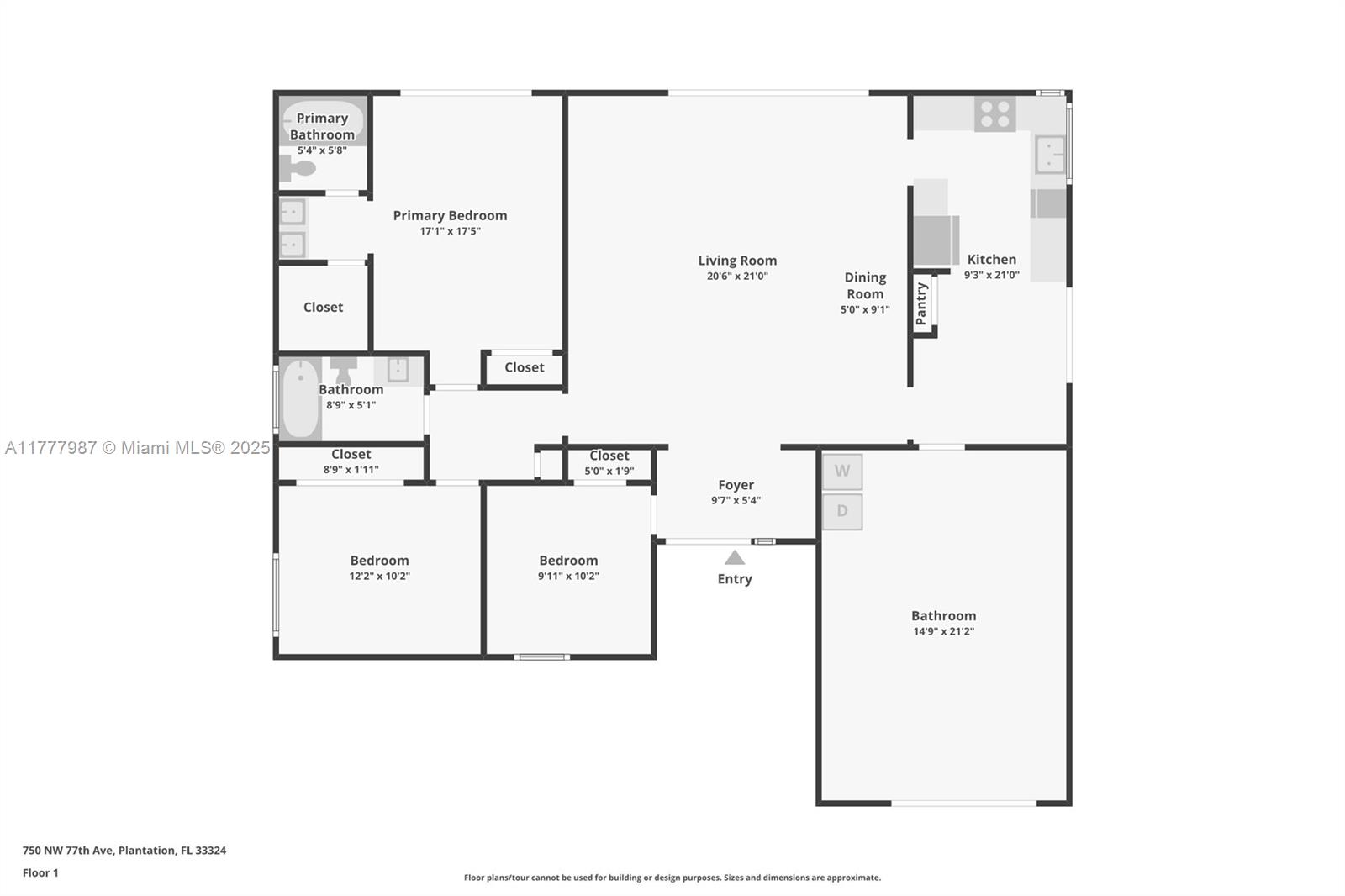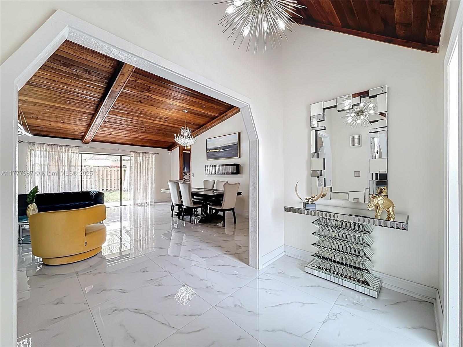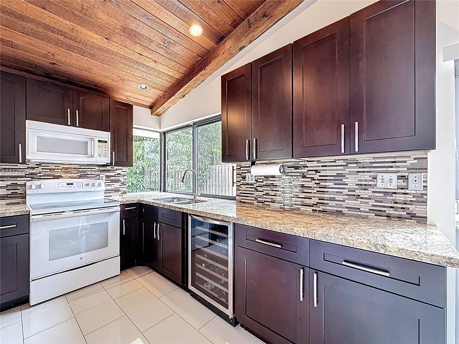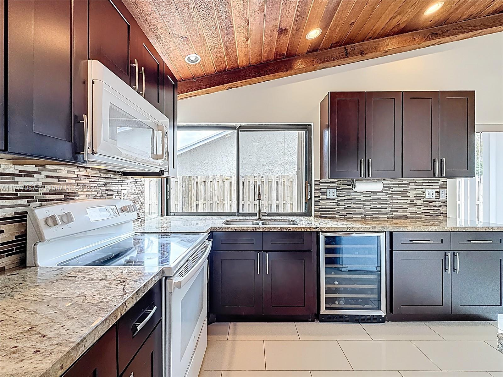 Stunning 3-bed, 2-bath home with 1,533 sq ft of living space and total 1,739 sq ft on a quiet cul-de-sac in the heart of Plantation Hills. Features soaring wood ceilings, elegant Italian porcelain tile, and a beautifully remodeled master bath with floating double sinks and black marble accent wall. Spacious kitchen opens to a bright living and dining area with views of a large backyard perfect for a pool, garden or outdoor retreat. Located just 7 blocks from Plantation Walk's shops, dining, and wellness centers.