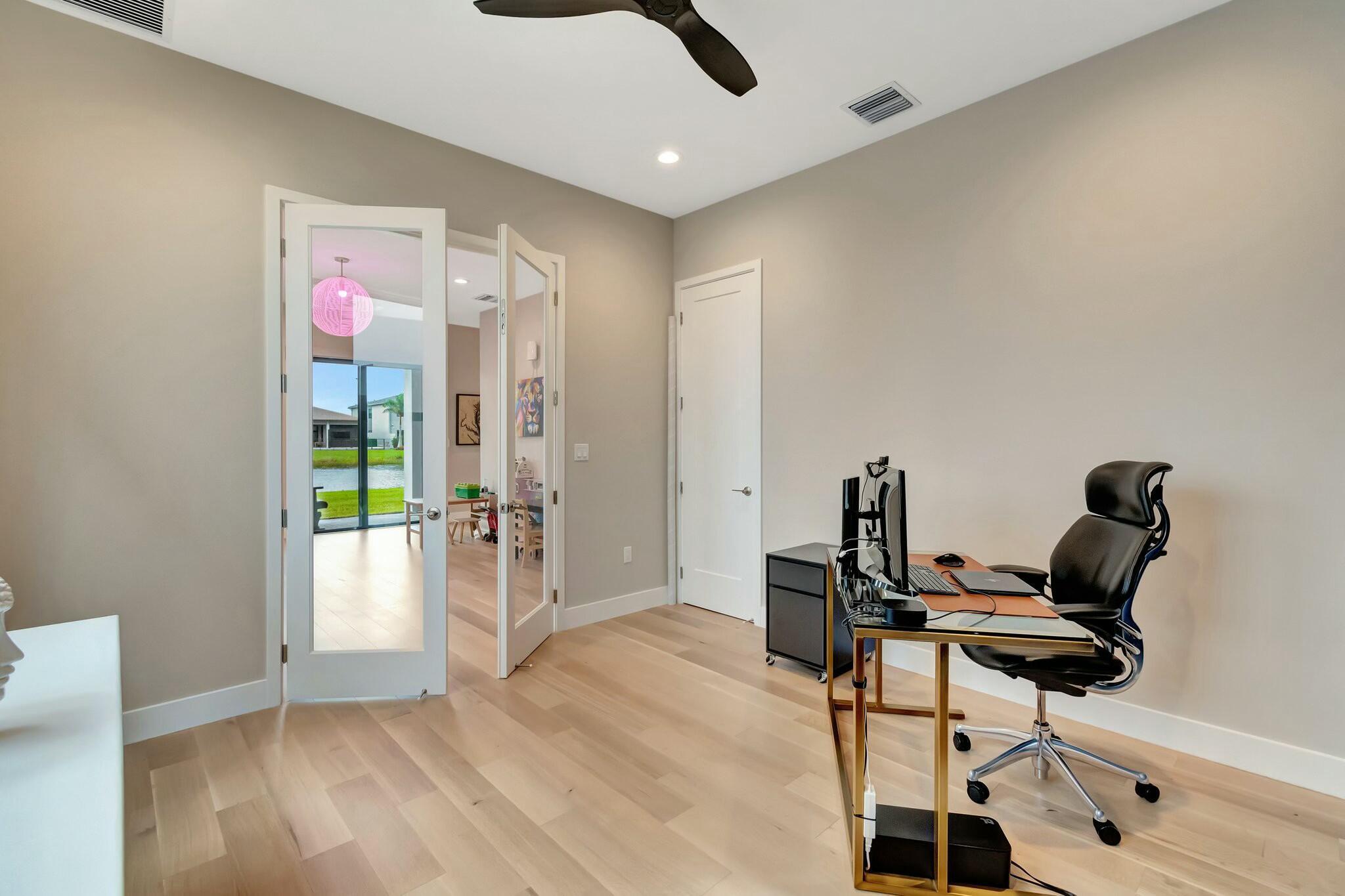 Welcome home to luxury resort living at 8564 Ganton Dr in the prestigious Lotus Palm. This exquisite Maldives model boasts 6 spacious bedrooms, 5 ensuite baths, 1 cabana bath and 2 half baths, a media room, and sophisticated upgrades including a premium custom kitchen with Thermador appliances, expansive white oak flooring, smart home automation, and designer fixtures. Situated on a premium southern-exposure lake lot, this home offers serene water views and plans for a private pool. Lotus Palm's amenities include a stunning clubhouse with pools, fitness center, restaurant, sports courts, 5 pickleball courts, 6 tennis courts, kids center and a full calendar of social events, all within a secure community featuring a 24-hour manned gate. Live every day like a vacation!