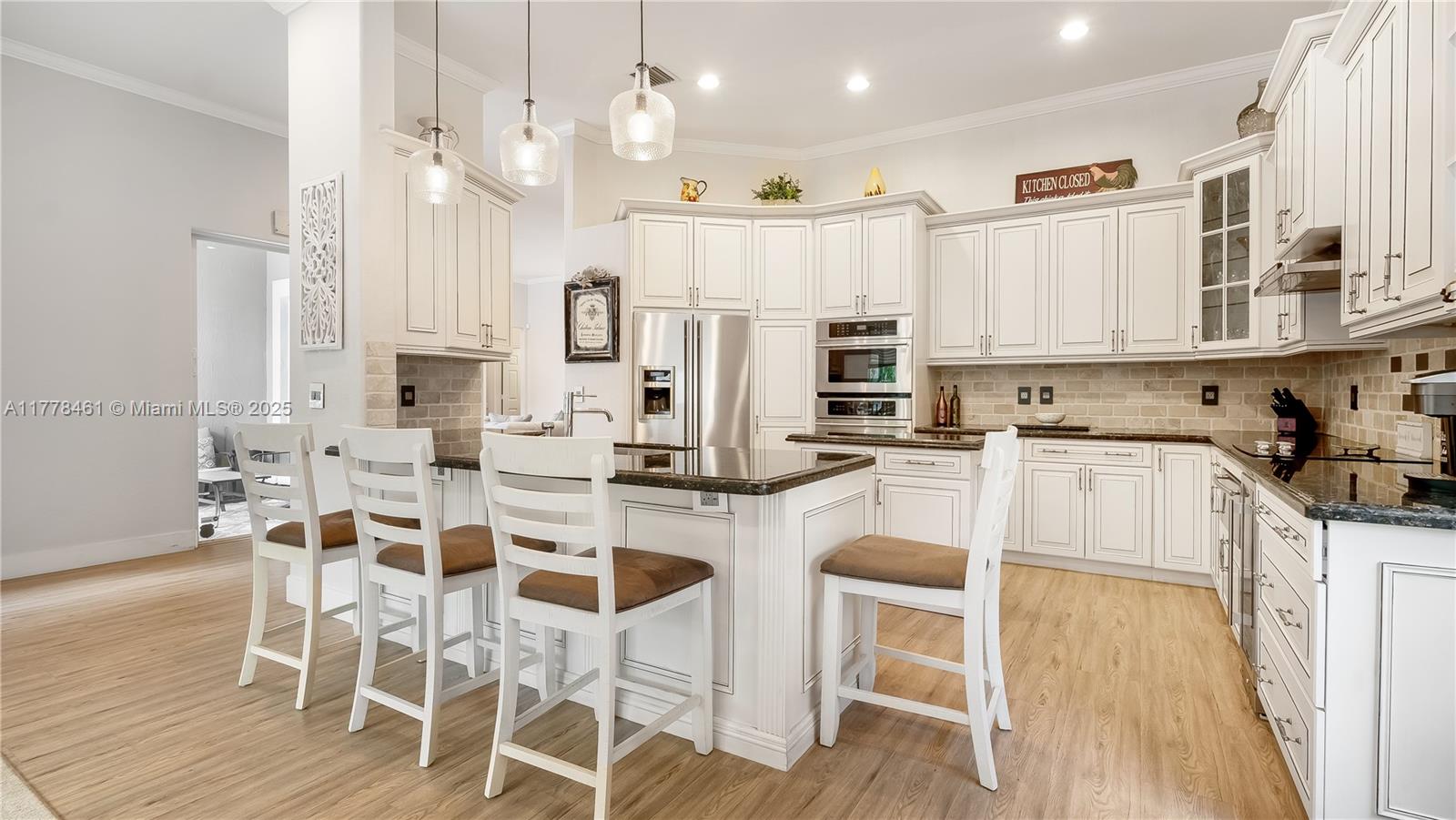 A rated schools. Brand New roof, NEW A/C unit, double oven.microwae, cook top. Exquisite, completely renovated and upgraded two-story home: 5 bdrms + den/office/gym & 3.5 baths! Salt water pool. Master on main floor. with oversize shower. Split floor plan circular driveway. New fllooring and newly renovated bathrooms. Custom-built kitchen w/wine fridge and warming drawer. A gorgeous landscaped tropical paradise with custom beautiful salt water pool, lighting throughout. Accordion shutters and impact glass windows. Custom impact glass double door entry. Custom closets. Security cameras and alarm system included. Walking distance to a beautiful neighborhood park: basketball court, soccer field, and playground. Most desirable neighborhood: Weston Hills Country Club 18 hole golf courses.