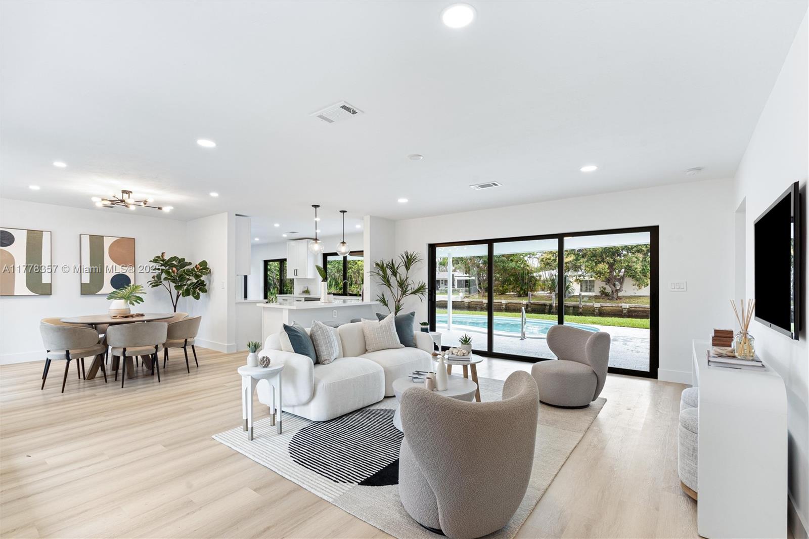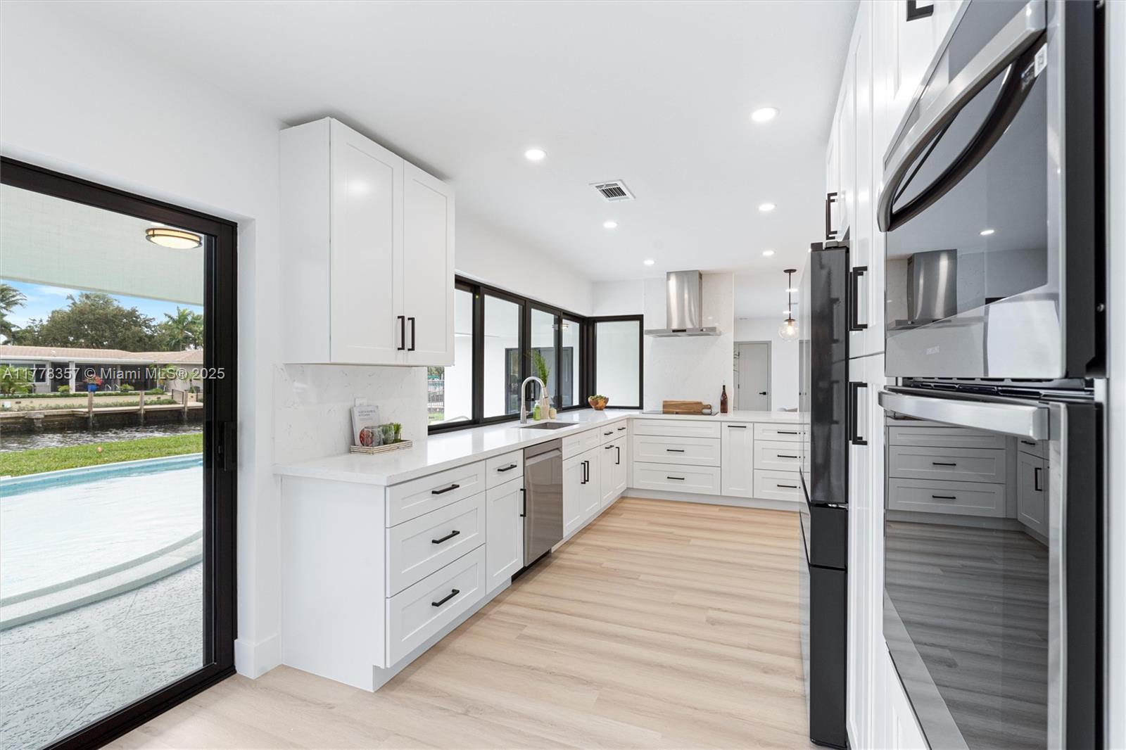 Flooded with natural light, this spectacular fully renovated home in Lake Estates offers the perfect blend of modern luxury and relaxed coastal living. With 80 feet of waterfront and two ocean access points, it’s truly a BOATER'S PARADISE. Inside, enjoy a beautifully remodeled kitchen with quartz countertops, custom cabinetry, and high-end appliances. The home features new flooring, impact windows and doors, fresh interior and exterior paint, exterior wood gates, new pool equipment and deck, recessed and designer lighting, updated electrical panel and outlets, new A/C, and sprinkler system. A new roof was installed in 2019. Close to great restaurants, parks, shopping, bars, and cozy coffee shops.