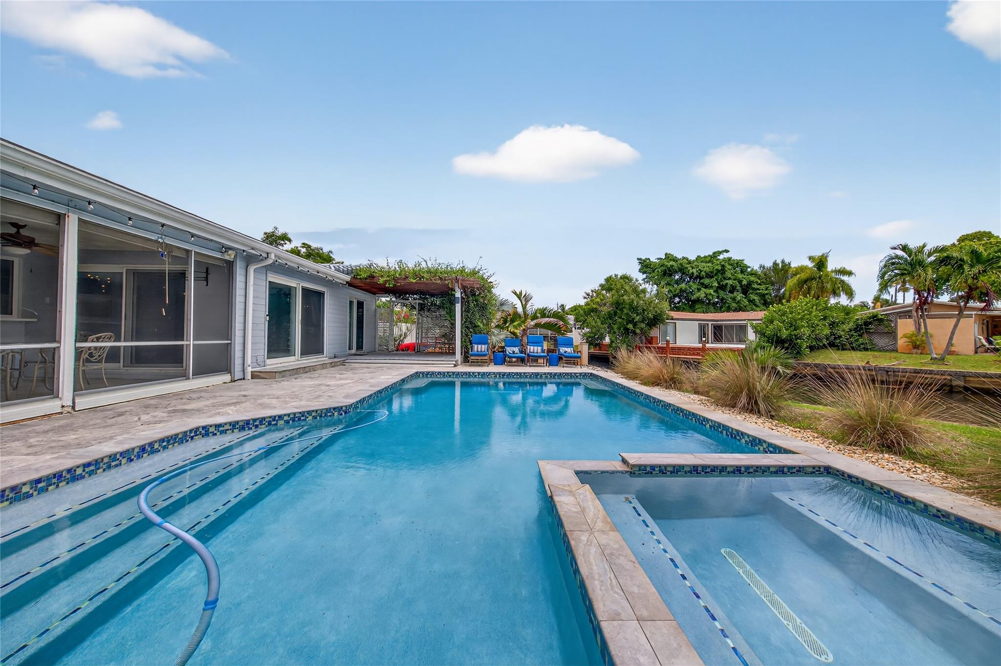 Back on market. Buyers financing fell through. Your waterfront oasis awaits! This canal-front home offers a spacious open floor plan, and an abundance of natural light through impact windows and sliders. Nestled at the end of a tranquil cul-de-sac, this corner lot boasts beautiful water views. Enjoy seamless indoor-outdoor living in the roomy screened-in back porch, on the private pergola deck or in the brand new heated pool w/ spa, perfect for entertaining or unwinding. The kitchen features a convenient pass-through window to the porch, making hosting a breeze. Convenient location to shopping, park, and highways.