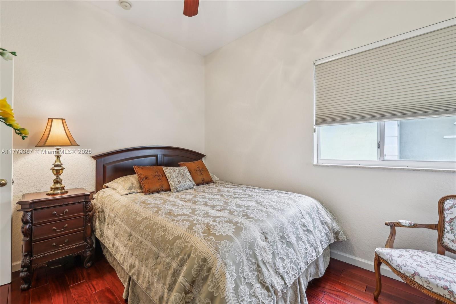 Beautiful home in a gated community with stunning unobstructed lake views. Features cherry wood floors in all bedrooms, custom wall mirrors, and a unique dining area with a framed mirror. Enjoy new stainless steel appliances, including kitchen and garage refrigerators, microwave, stove, dishwasher, and a new washer/dryer. Spacious garage with extra storage, large tiled patio with electric awning—perfect for entertaining. Lush garden with bougainvillea and palms, exterior lighting front and back. Low HOA, great schools, and close to Publix, restaurants, and shops.