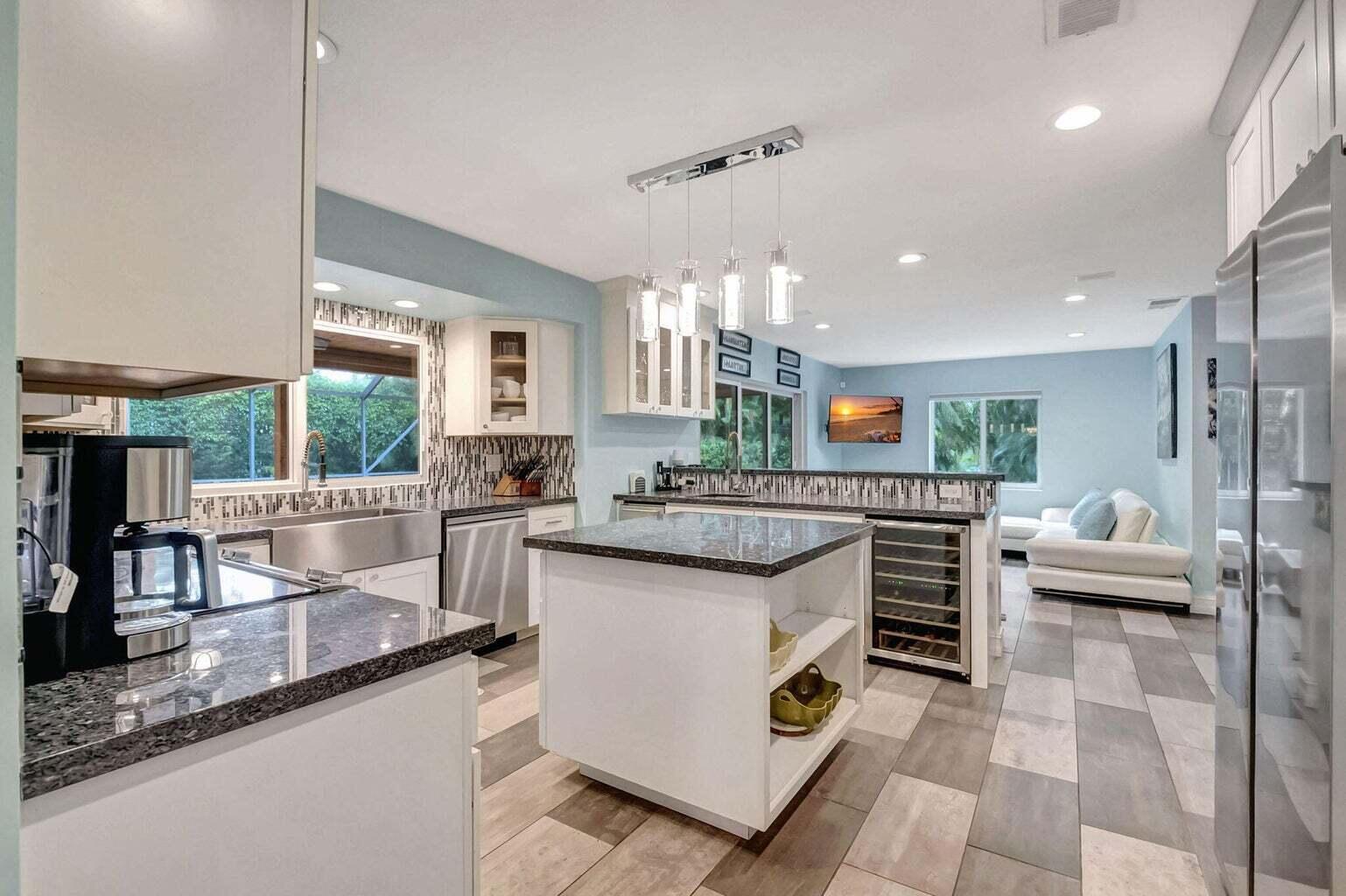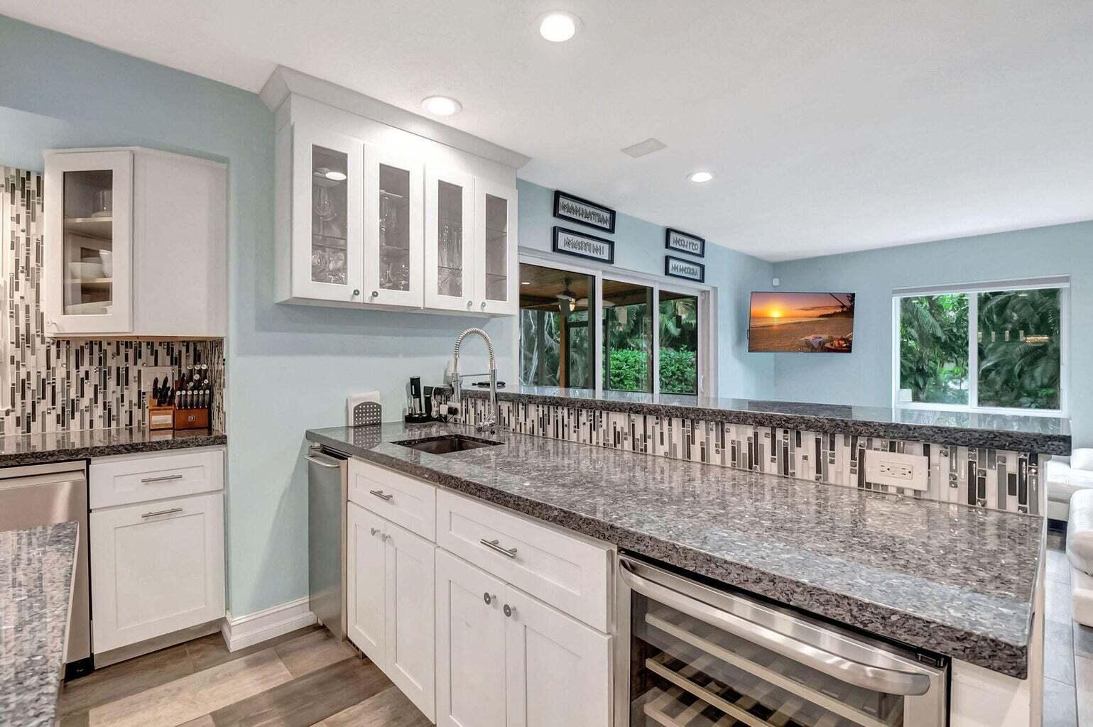 Live the Luxe Lifestyle in Millpond!Welcome to 2416 NW 32nd Street, a truly exceptional home tucked away on a private cul-de-sac in the heart of highly sought-after Millpond. This immaculately upgraded 3-bedroom, 2-bath residence sits on an oversized .32-acre lot and offers 2,053 square feet of light-filled living space designed for both entertaining and effortless relaxation. Step into your own personal paradise--featuring a screened-in pool and an entertainer's dream outdoor kitchen complete with a premium DCS grill, bar with , TV,. This is South Florida living at its finest.Inside, the home stuns with a custom chef's kitchen