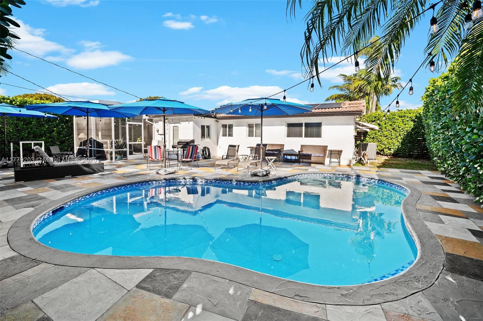 This is a beautiful TURN KEY Imperial Point home located on a quiet street. It has been updated, painted on the outside and inside has a new Florida Room and a stunning large pool and outdoor entertaining area. This is an ideal family home or vacation home for entertaining or use and rent when you are not there. Right down the street from Pinecrest and all the best private schools in Fort Lauderdale. Only a quick ride to the beach and restaurants and shopping close by. The house is fenced in with gorgeous green clusia hedge that give complete privacy in the outdoor pool area. There is also a shed for storage.