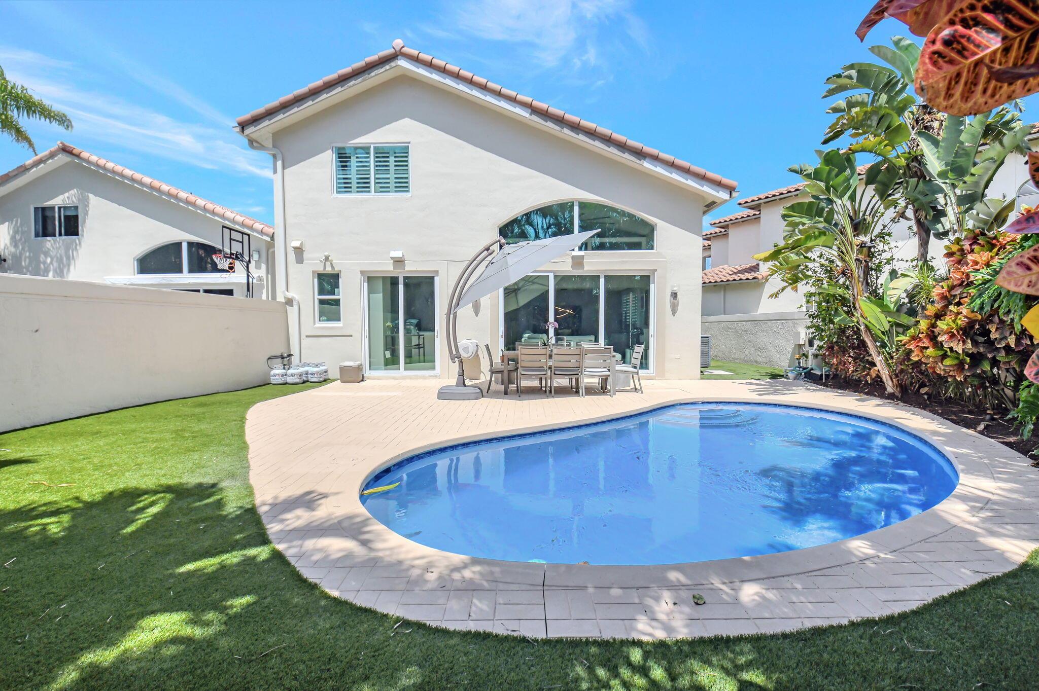 This one-of-a-kind, contemporary smart home is located in the prestigious Broken Sound Country Club. Light, bright, and spacious, this magnificent residence boasts 2025 impact windows and a garage door, along with a 2025 roof. The lush oasis landscape features a private pool and a putting green for ultimate relaxation and recreation.The first-floor primary bedroom is a dream come true, with cutting-edge technology that allows you to turn on your steam shower from the comfort of your bed. The home is wired for surround sound and offers abundant storage throughout, both inside and in the garage. Plantation shutters adorn every room, adding a touch of elegance.The kitchen and primary bedroom include luxurious features typically found in multi-million-dollar homes. This is truly a must-