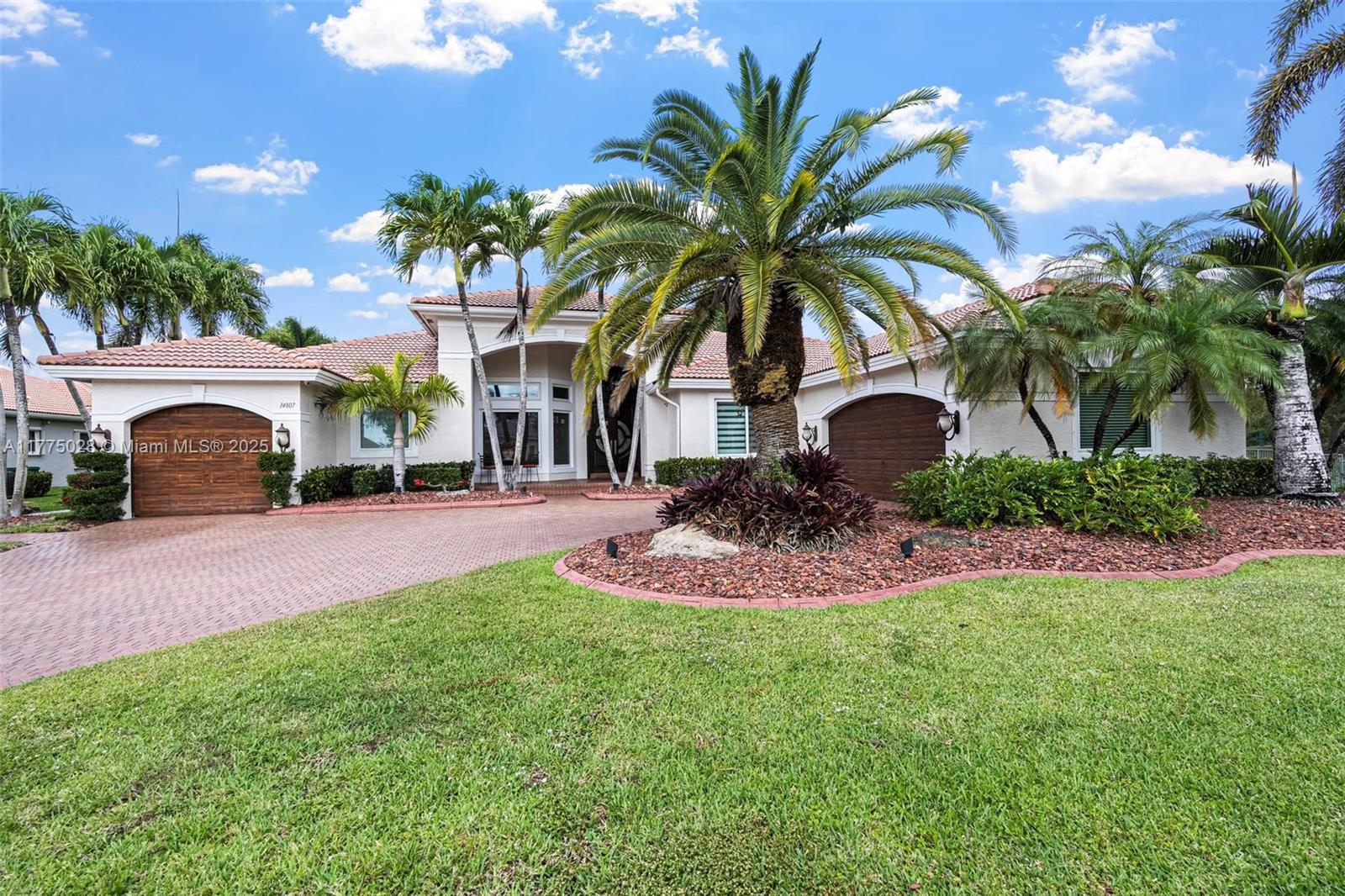 Nestled at end of a Cul-de-Sac on an oversized Lot with wrap around Lake views makes this a perfect home! Recently renovated home consisting of 6 bedrooms, 4.5 Baths, an office, full IMPACT Windows and Doors and new Solar Panels included in sale. Monthly bill averages under $150 during low season and under $250 during high season. 2 Newer A/C units installed 4.5 years ago, Full Sonos Sound System, Remote controlled Zebra Blinds throughout, updated Kitchen with Quartz countertops & Thermador appliances. Master bedroom has newly renovated His/Her bathrooms. Travertine patio pavers, Tiki Hut with Outdoor Kitchen. Community amenities: Tennis, B-ball & Pickleball courts, pavilion & playgrounds.
