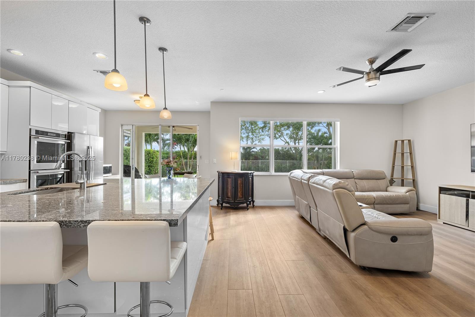 Priced to sell! Motivated seller. Fully updated 5-bedroom, 3-bathroom home with vaulted ceilings in the sought-after Isles of Weston. Situated on a private lot with a pool and a peaceful canal behind the house, this home’s open-concept design features a modern kitchen with stainless steel appliances and a large island, perfect for entertaining. The luxurious master suite includes an updated bathroom with a standalone tub, walk-in shower, & two spacious walk-in closets. A guest bedroom or office are conveniently located downstairs, with 4 additional bedrooms upstairs. Enjoy a backyard oasis with no rear neighbors, hurricane protection, and resort-style community amenities including: pool, gym, clubhouse, & beach volleyball. Located near A+ schools, shopping, & major highways.