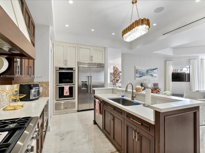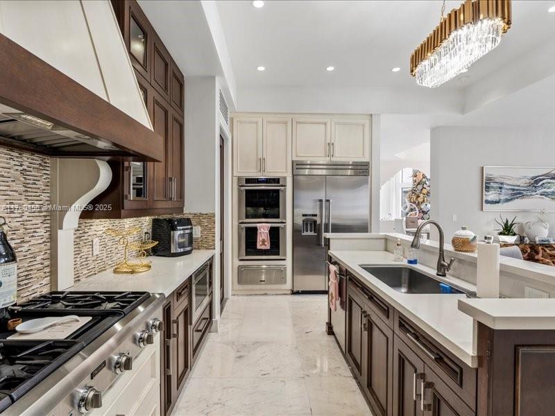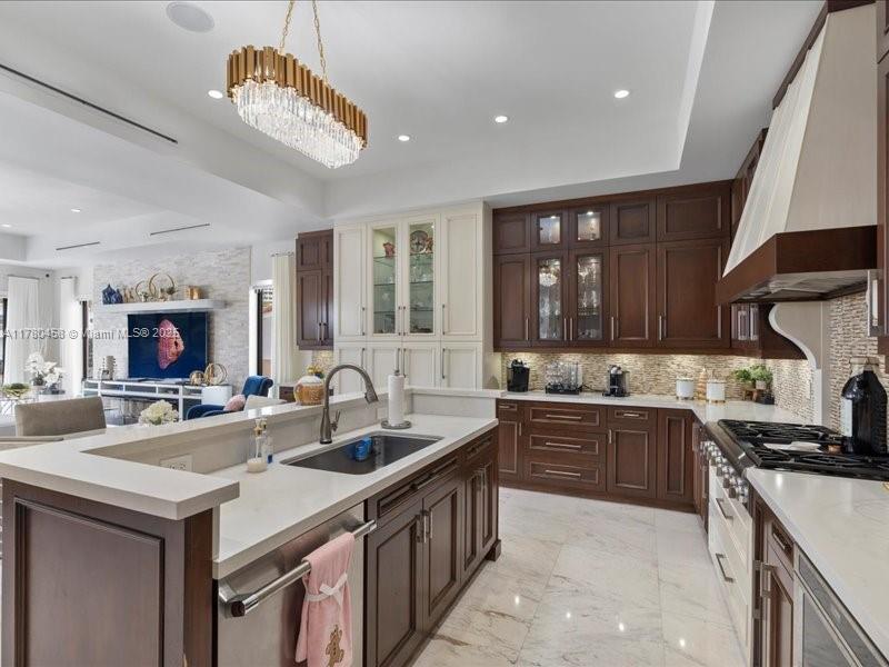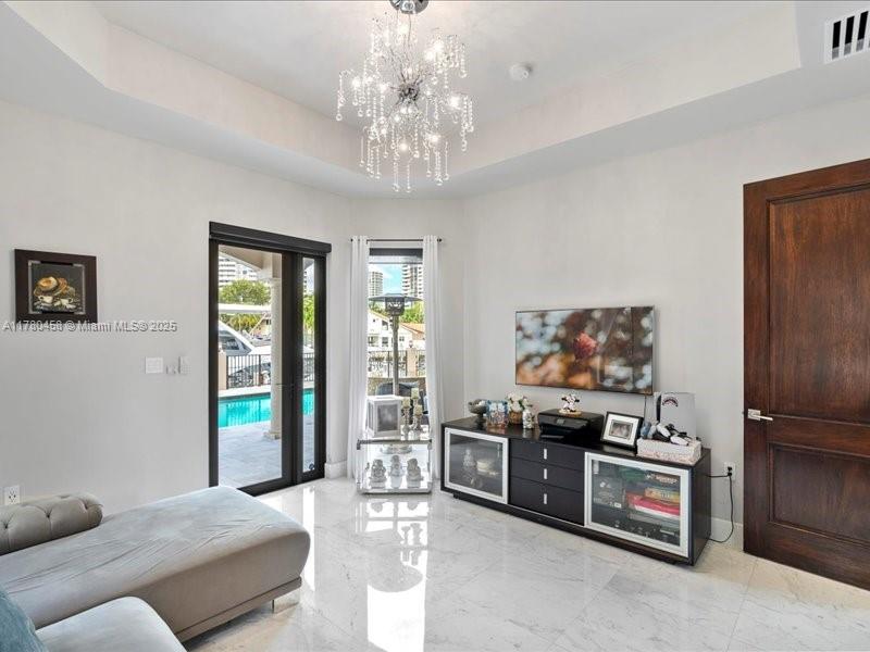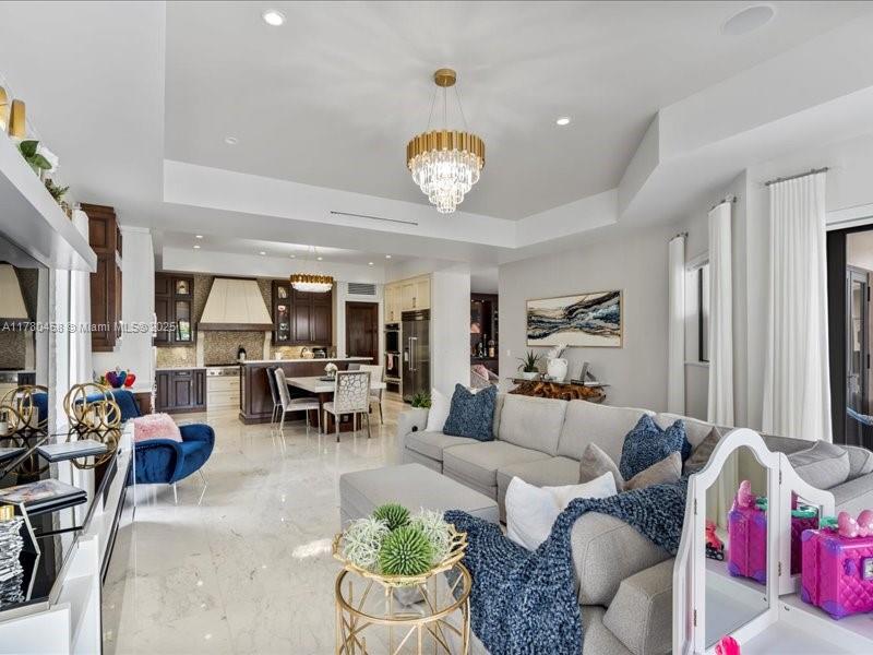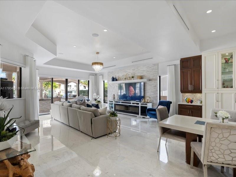 Luxury Waterfront Living with an excellent location close to entertainment, schools and parks. This stunning 6-bedroom, 6.5-bath home features Kalacatta marble flooring throughout, spacious living areas, and a gourmet kitchen with high-end finishes. Enjoy outdoor living with a sparkling pool, outdoor kitchen, and barbecue area, perfect for entertaining. Boating enthusiasts will love the private dock, accommodating up to a 85-foot yacht with direct ocean access with no fix bridges. Located in a prime waterfront neighborhood, this home offers elegance, comfort, and breathtaking views. This luxury home has impact windows throughout, smart home components and high end finishes that will take your breath away including an elevator that takes you to your second floor.