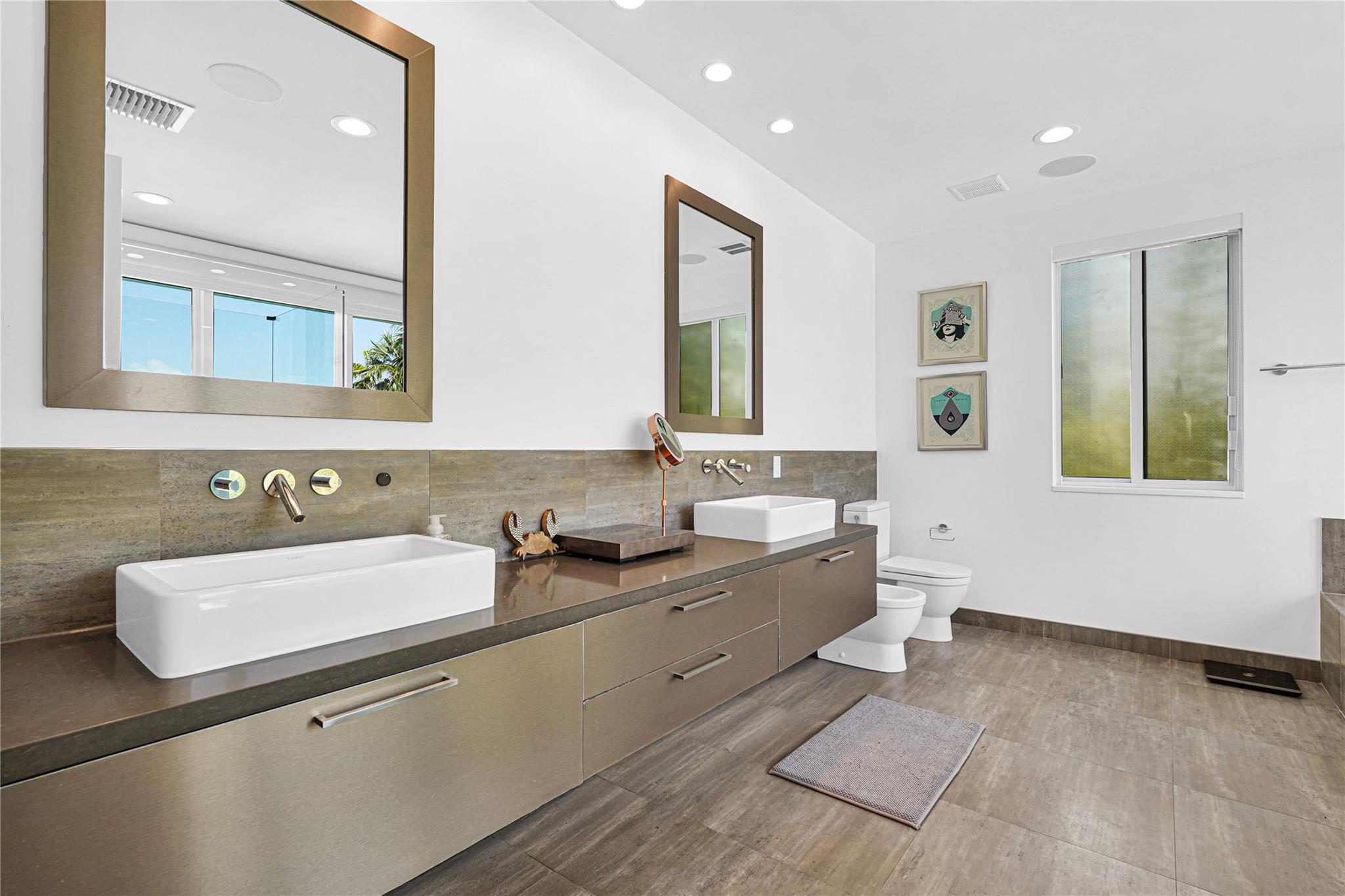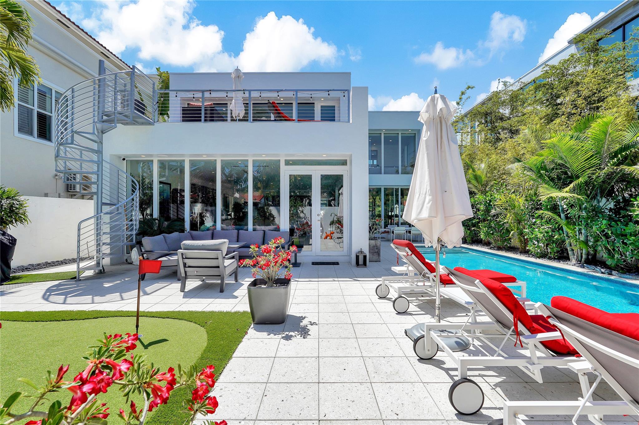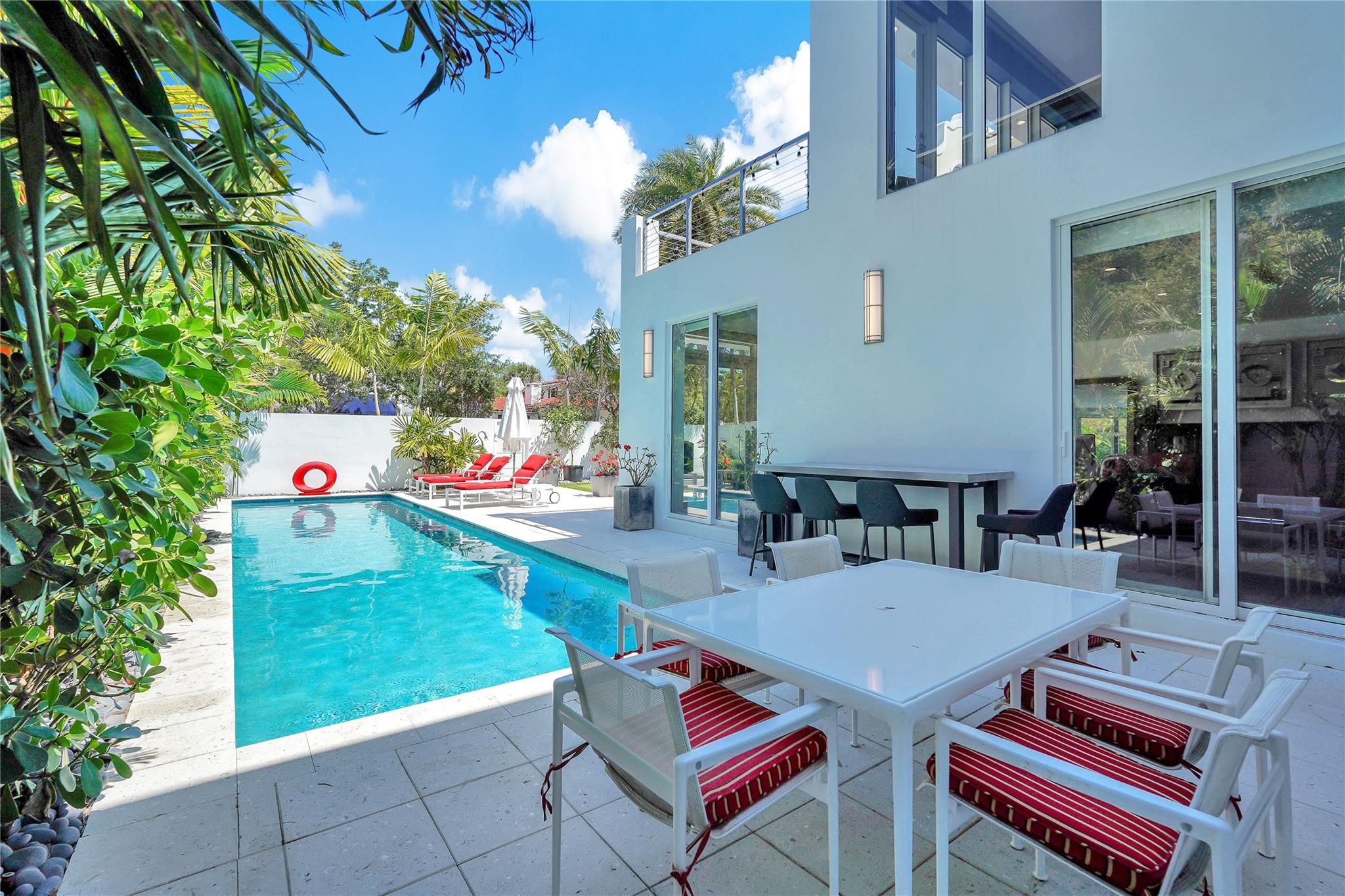 Exclusive Contemporary Home in Fort Lauderdale's desirable Colee Hammock! Close to vibrant Downtown, this home offers the perfect mix of luxury and location. Designed as a spa-like retreat, it features a heated saltwater lap pool surrounded by a privacy-enhancing fence. The two-story layout includes a sleek kitchen with stone countertops, Viking gas cooktop, three Miele ovens, built-in espresso machine, and wine cooler. The spacious primary suite offers a walk-in closet and private terrace, while three junior suites have en-suite baths. Upgrades include smart lighting, home automation, dual HVAC, and a gas generator. Outdoor features include a Napoleon BBQ, gas fire pit, audio system, and resurfaced decks. Move-in-ready with fresh paint and a new TPO roof!