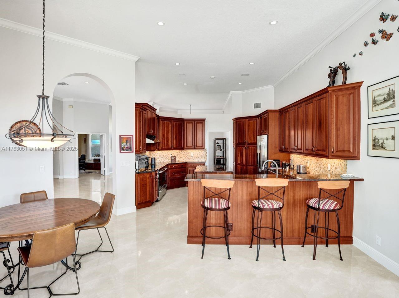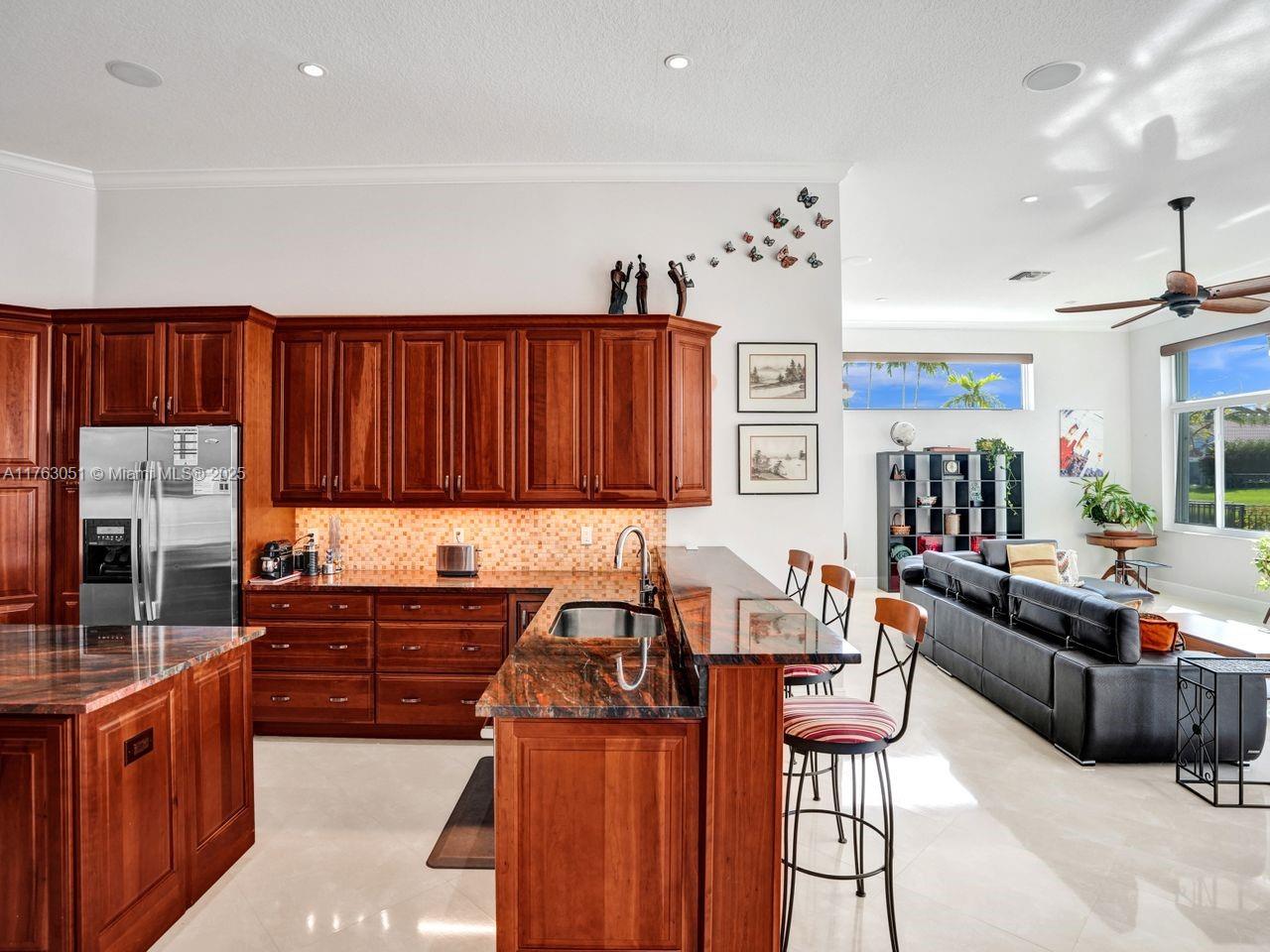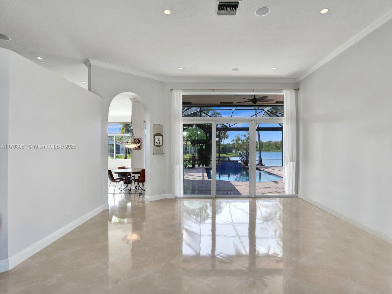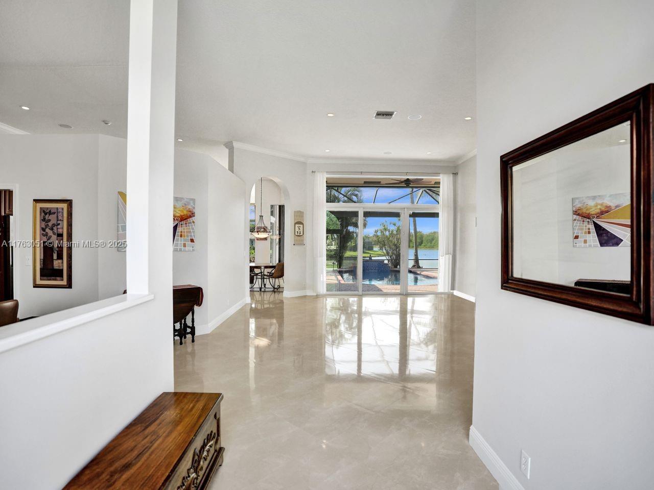 Spectacular ONE-STORY completely UPDATED LAKEFRONT home in the rarely available exclusive community of Edgewater at Weston Hills Country Club. This gorgeous home is situated on a peaceful CUL-DE-SAC lot with nearby community park. From the moment you open the front door, you have breathtaking PANORAMIC LAKE VIEWS! Features include 4 BEDROOMS PLUS OFFICE/DEN & 3.5 BATHS. Spacious split bedroom floorplan with volume ceilings, luxury flooring throughout, redone and EXPANDED KITCHEN and FAMILY ROOM, multi room high end audio system. New Screened POOL with water feature and Patio overlooking tranquil lake views! NEWER ROOF, IMPACT WINDOWS & DOORS, 3 CAR GARAGE with built-in cabinetry, storage, epoxy flooring and 2 EV charging stations & A+ Schools. This is the home you have been waiting for!