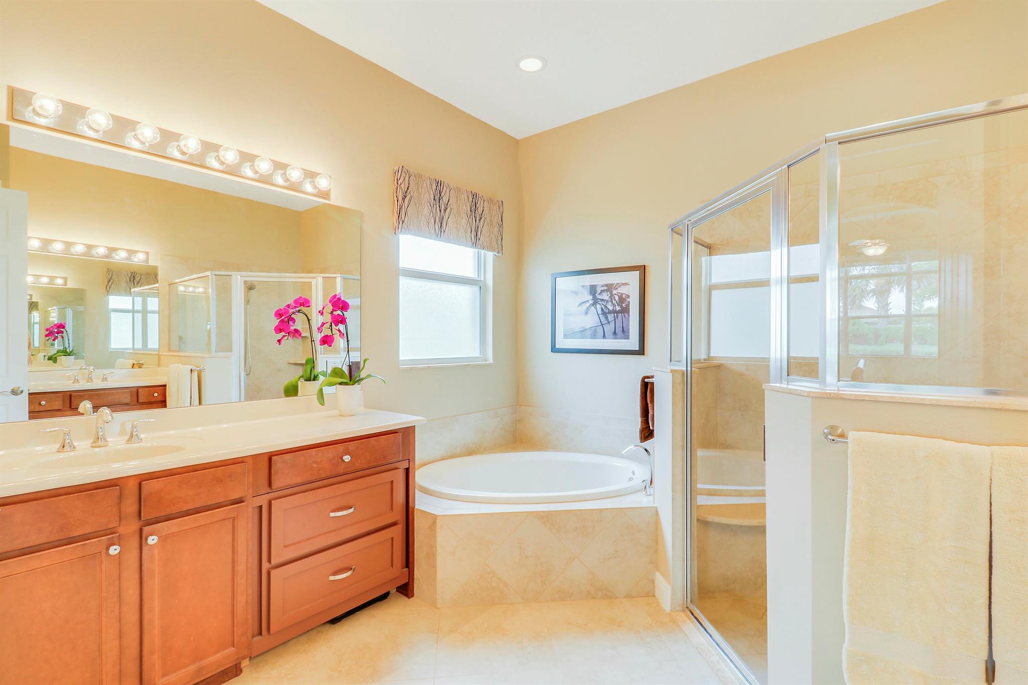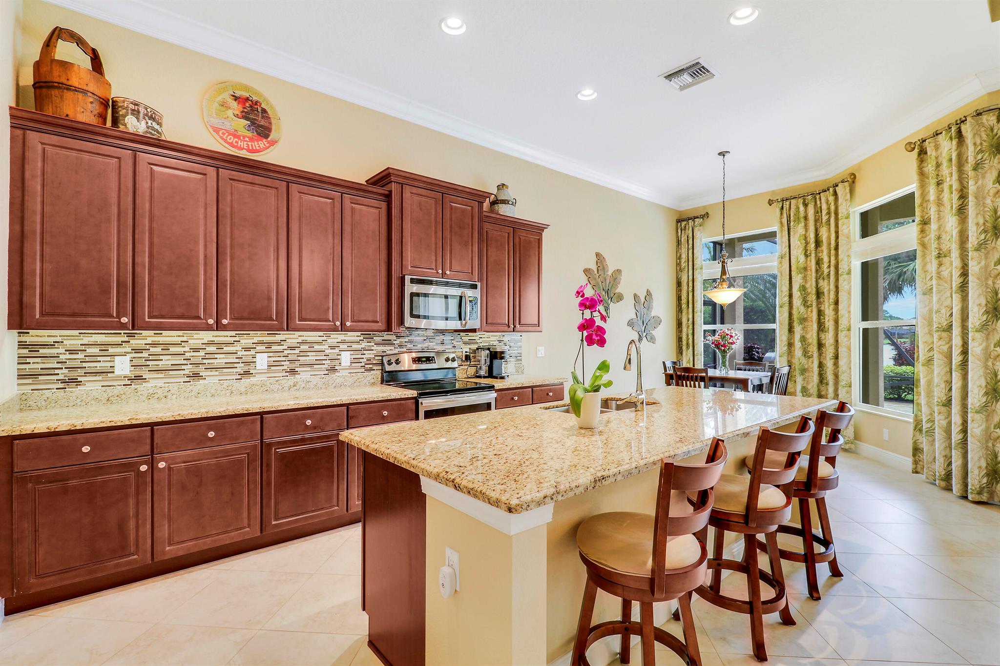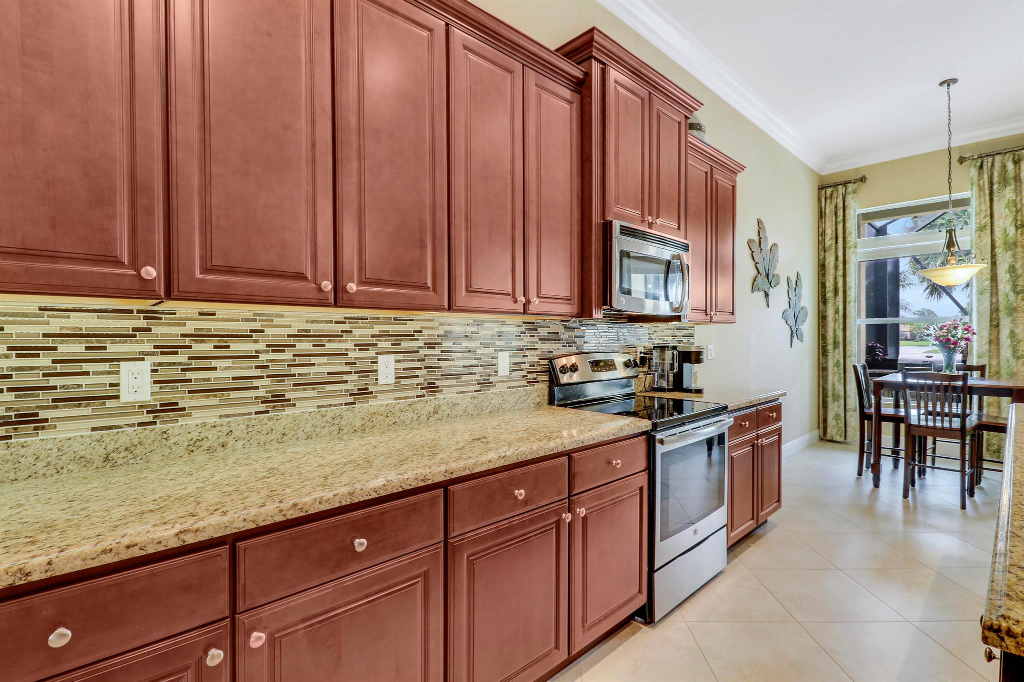 AMAZING LOT LOCATION on side street w/PEACEFUL LAKE VIEWS FRONT & BACK in the resort style community of PGA VERANO. This 3BR/2.5BA/2CG home has many upgrades t/o including neutral tile in main living areas, custom draperies, impact glass windows & doors, newer AC (2024) and spacious screened & expanded lanai overlooking the serene lake views! The kitchen features SS appliances, granite counters, butlers pantry, an abundance of cabinetry and a charming breakfast nook. Master suite overlooks the lake view, has dual closets, a spacious ensuite w/ dual vanities and a soaker tub & shower. Guest bedrooms have access to the hallway bathroom. The highlight of this property is the expanded, screened lanai w/ outdoor grill area! A perfect spot to enjoy your morning coffee or dine al fresco.