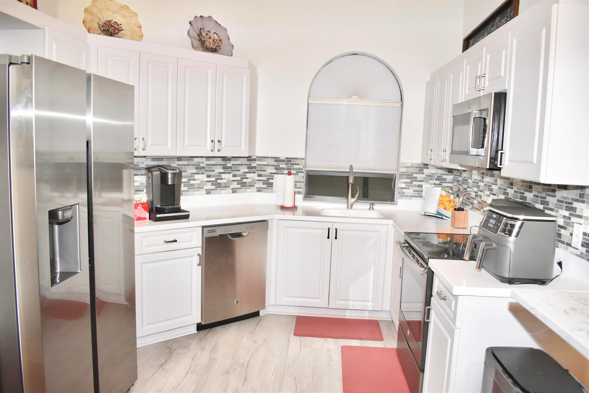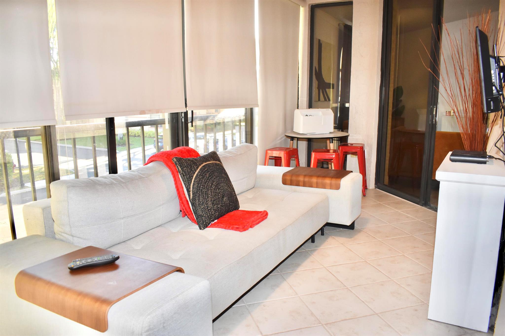 Beautiful updated 3/2 with private, in unit elevator. Walk into a spacious foyer and head upstairs to a magnificent open floor plan, light and bright, vaulted cathedral ceilings. Primary bedroom complete with walk in closet, ensuite bathroom with double sinks, soaking tub, and shower with frameless doors. Relax in the beautiful, air-conditioned sun porch with a separate area housing the washer and dryer or just curl up on the sofa in the living. Enjoy the large natural light filled living room adjacent to the formal dining room. Fully renovated kitchen with eat in breakfast bar. Enjoy all that Platina has to offer including 5 pools, hot tub, fitness center, 2 guard gates, new clubhouse with cafe, card rooms, all in the heart of beautiful Boynton Beach!
