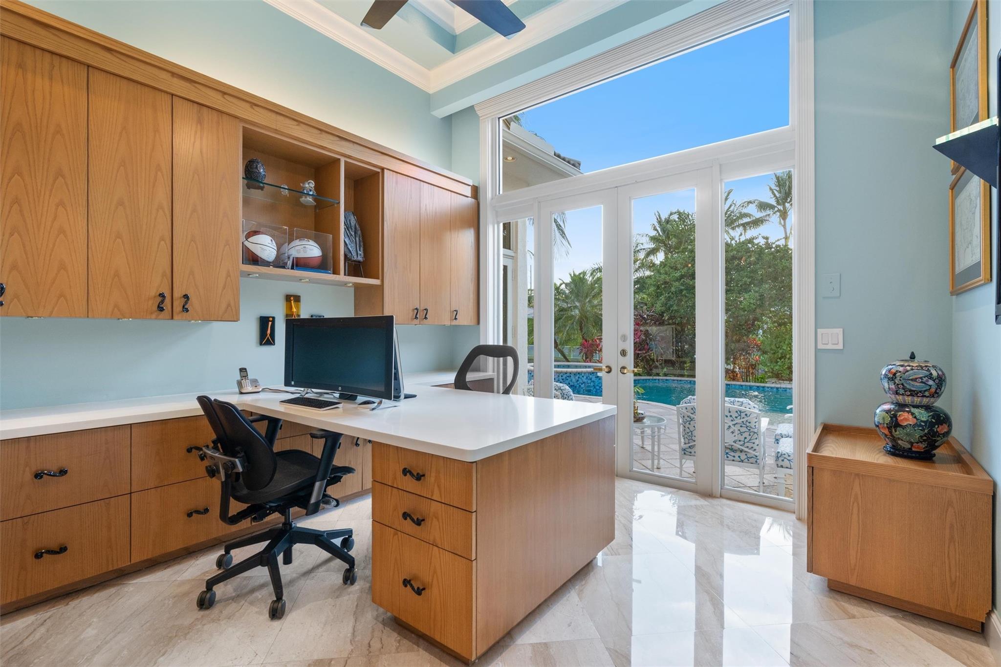 RARELY AVAILABLE ONE STORY CUSTOM ESTATE WITH OVER 4000 SQ. FT. A/C OF LUXURIOUS LIVING ON PRIME WATERFRONT CUL DE SAC LOT IN HAWKS LANDING! LOVINGLY MAINTAINED AND PROFESSIONALLY RENOVATED, THIS SPECTACULAR 4 BEDROOM 6 BATHS PLUS OFFICE PLUS FLEX ROOM FOR GYM OR PLAYROOM IS A MUST SEE! AS YOU ENTER THROUGH THE DOUBLE CUSTOM IMPACT GLASS DOORS, YOU ARE WELCOMED WITH WITH A DRAMATIC WATERFALL FEATURE* DESIGNER DETAILS THRU OUT INCLUDING IMPORTED MARBLE FLOORING, MOTORIZED WINDOW TREATMENTS, BUILT-INS AND MORE* NEW CONTEMPORARY WHITE KITCHEN W QUARTZITE, S/S APPLIANCES INCLUDING TWIN SUB ZERO'S* WALK-IN PANTRY* SUMPTUOUS PRIMARY SUITE AND BATH* IMPACT GLASS* HEATED POOL AND SPA W HUGE PATIO W VIEWS OF THE LIGHTED FOUNTAIN AND LUSH LANDSCAPING* CIRCULAR DRIVE* LOOKS AND SHOWS BRAND NEW!