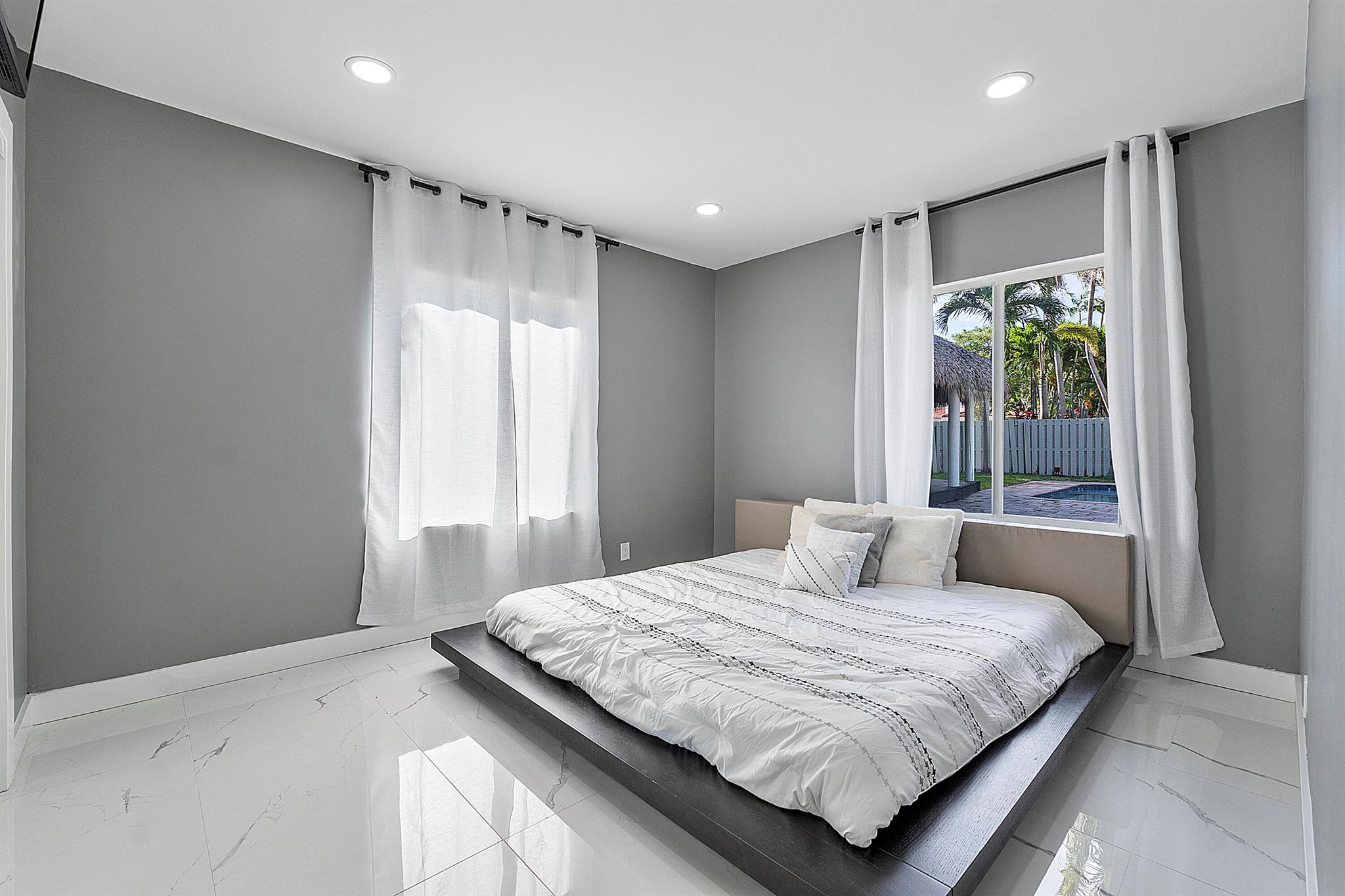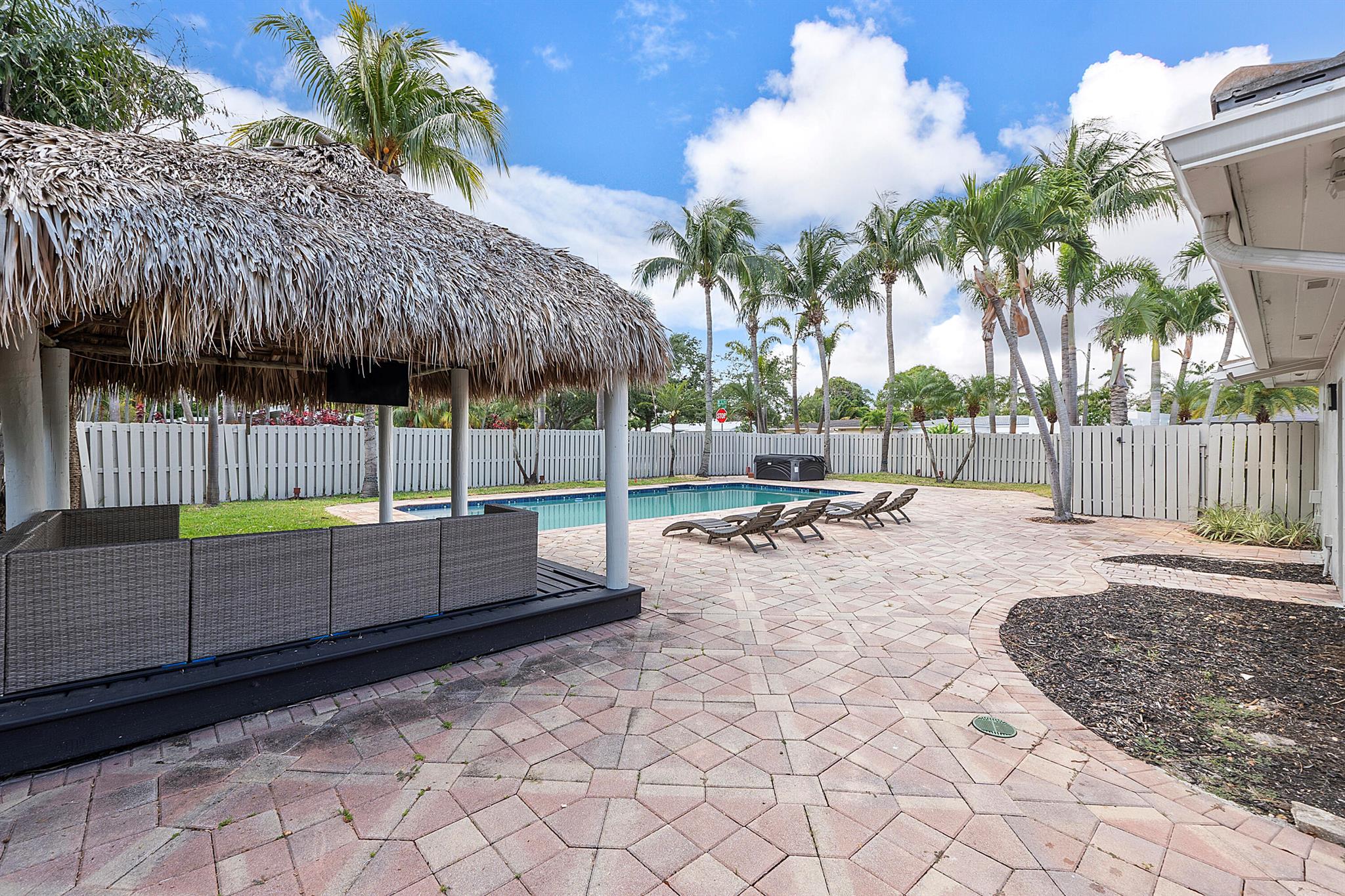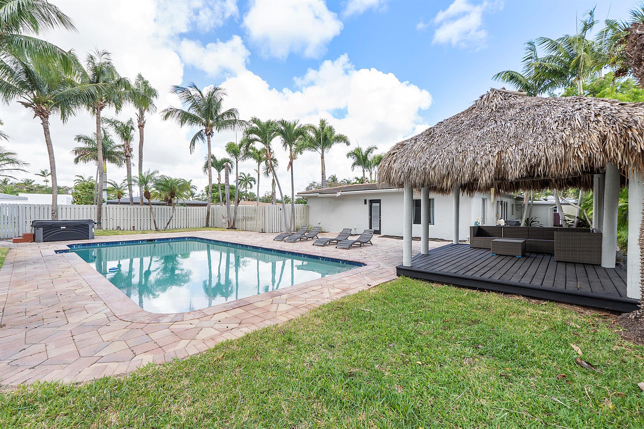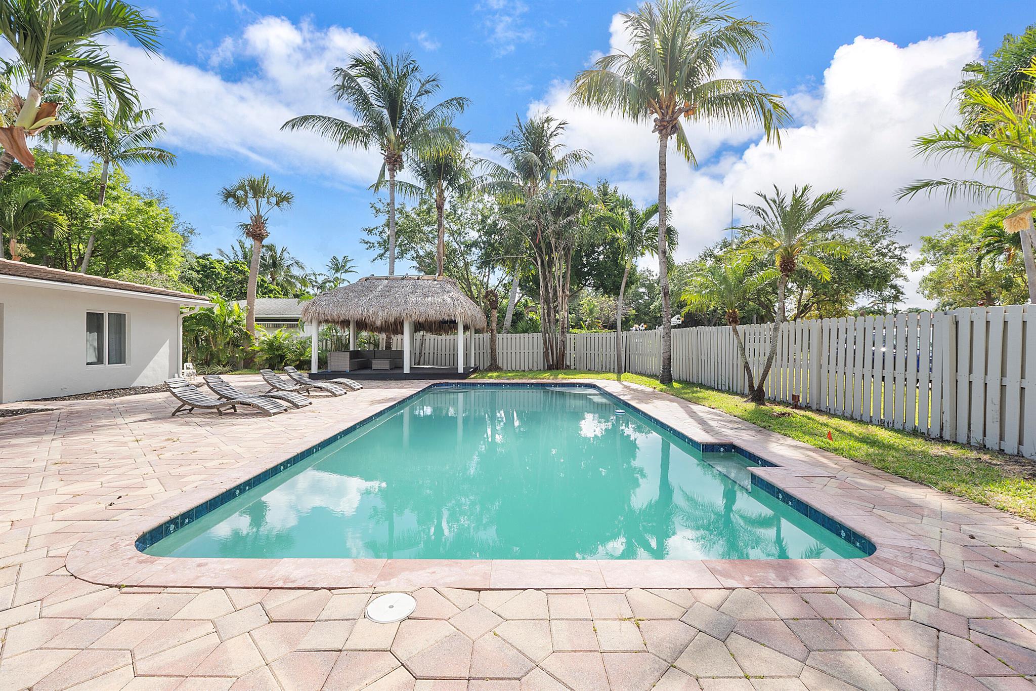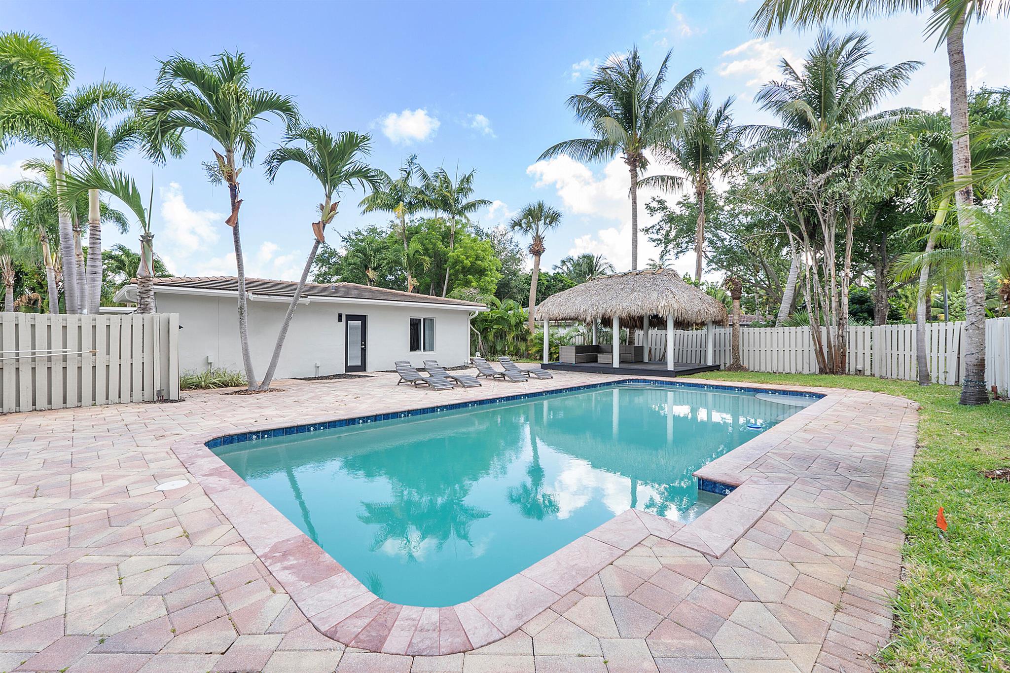 Welcome to your dream oasis in Poinsettia Heights! This rare gem sits on a DOUBLE corner lot spanning 10,495 sqft! Completely renovated & permitted with abundant natural light through PGT impact windows & sliders. Enjoy split, open floor plan & kitchen with upgraded induction cooktop & stainless steal appliances - including wine cooler. Home includes a versatile den - perfect for a home office or fitness room. Enjoy LED lighting, Euro fixtures & tankless water heater and worry free PVC plumbing. Dining room overlooks a serene garden, while the HUGE backyard serves as a private tropical paradise including large Tiki hut, ample entertaining space & a magnificent 15x30 saltwater chlorinated, heated pool with newer pump and heater. Roof installed in 2016! Live your ultimate Florida lifestyle!