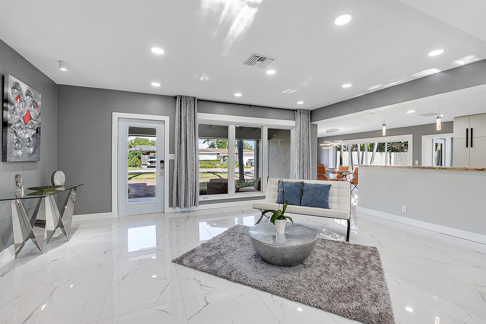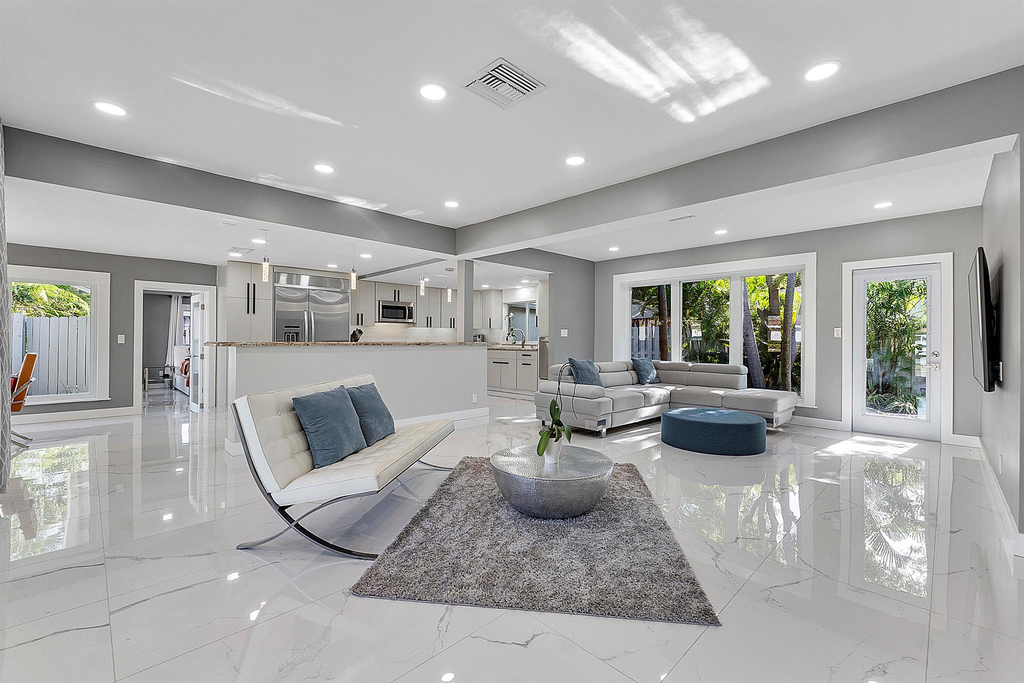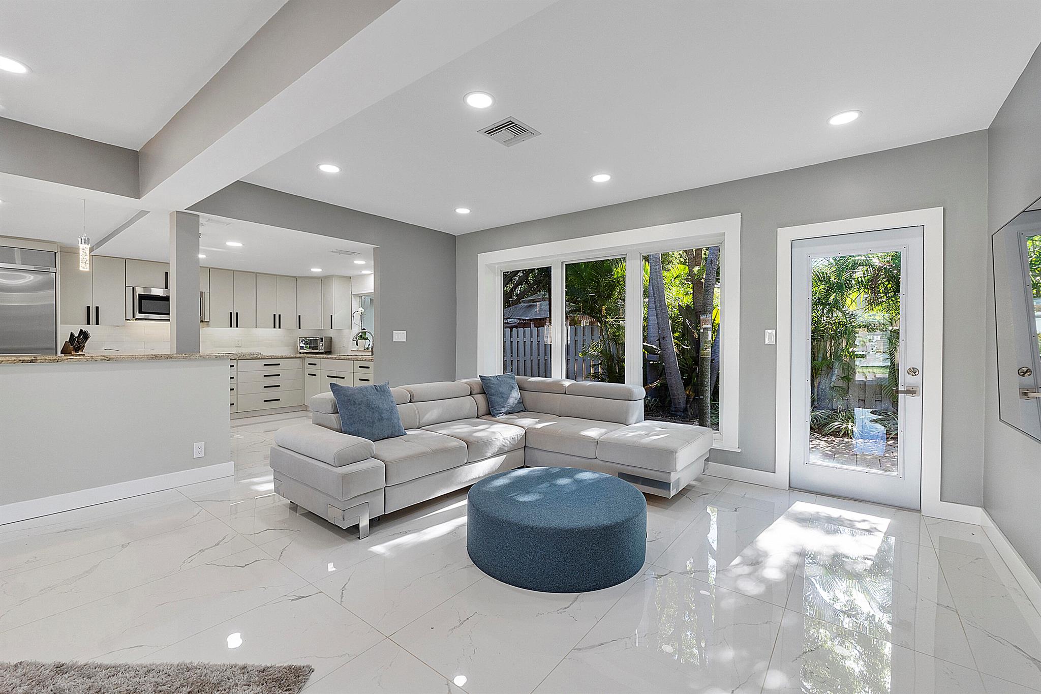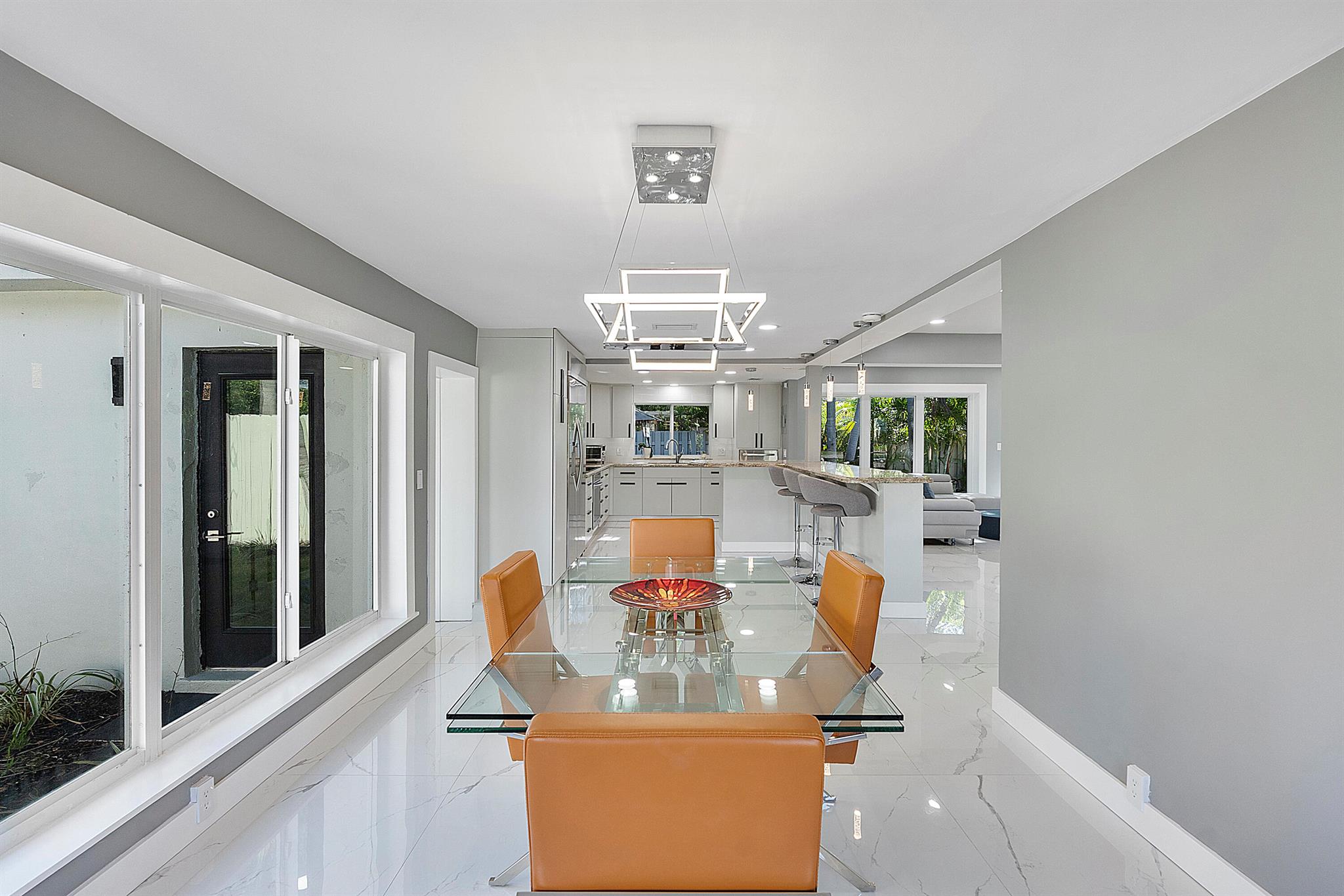 Welcome to your dream oasis in Poinsettia Heights! This rare gem sits on a DOUBLE corner lot spanning 10,495 sqft! Completely renovated & permitted with abundant natural light through PGT impact windows & sliders. Enjoy split, open floor plan & kitchen with upgraded induction cooktop & stainless steal appliances - including wine cooler. Home includes a versatile den - perfect for a home office or fitness room. Enjoy LED lighting, Euro fixtures & tankless water heater and worry free PVC plumbing. Dining room overlooks a serene garden, while the HUGE backyard serves as a private tropical paradise including large Tiki hut, ample entertaining space & a magnificent 15x30 saltwater chlorinated, heated pool with newer pump and heater. Roof installed in 2016! Live your ultimate Florida lifestyle!