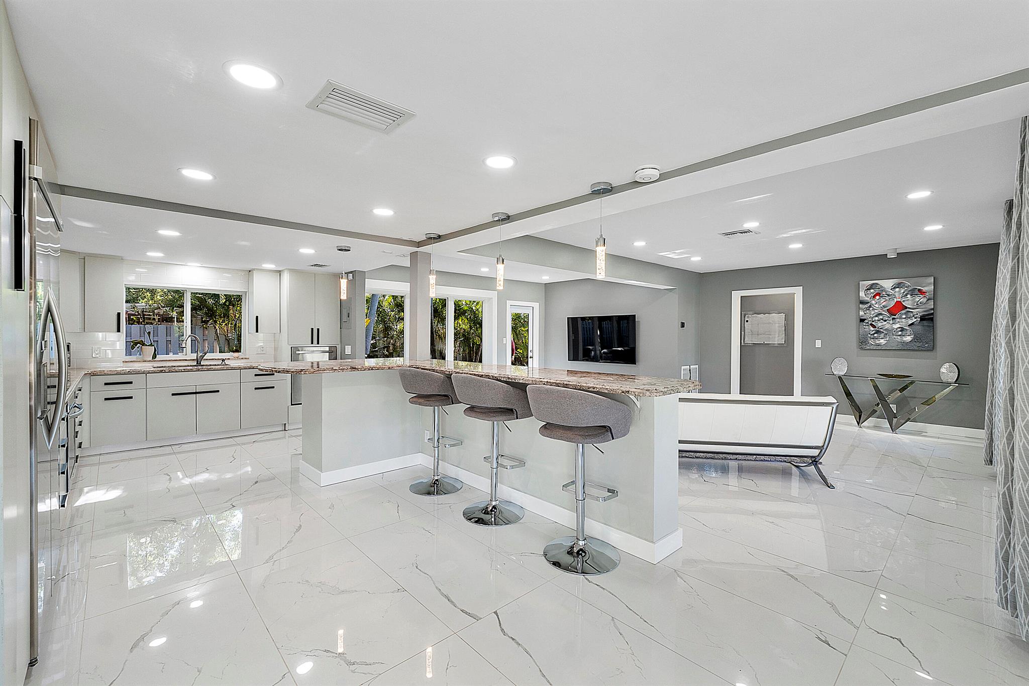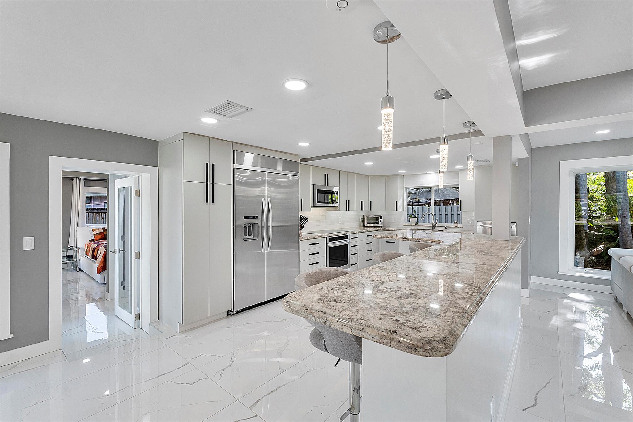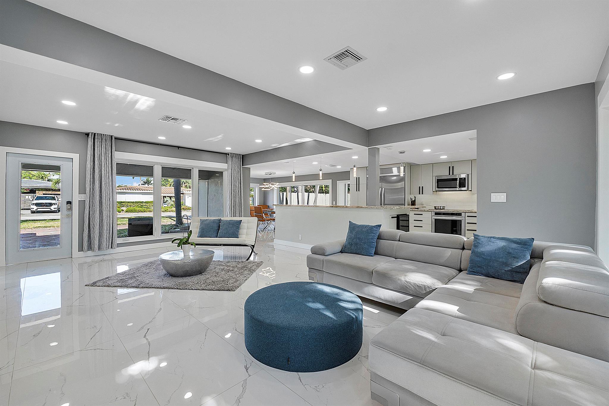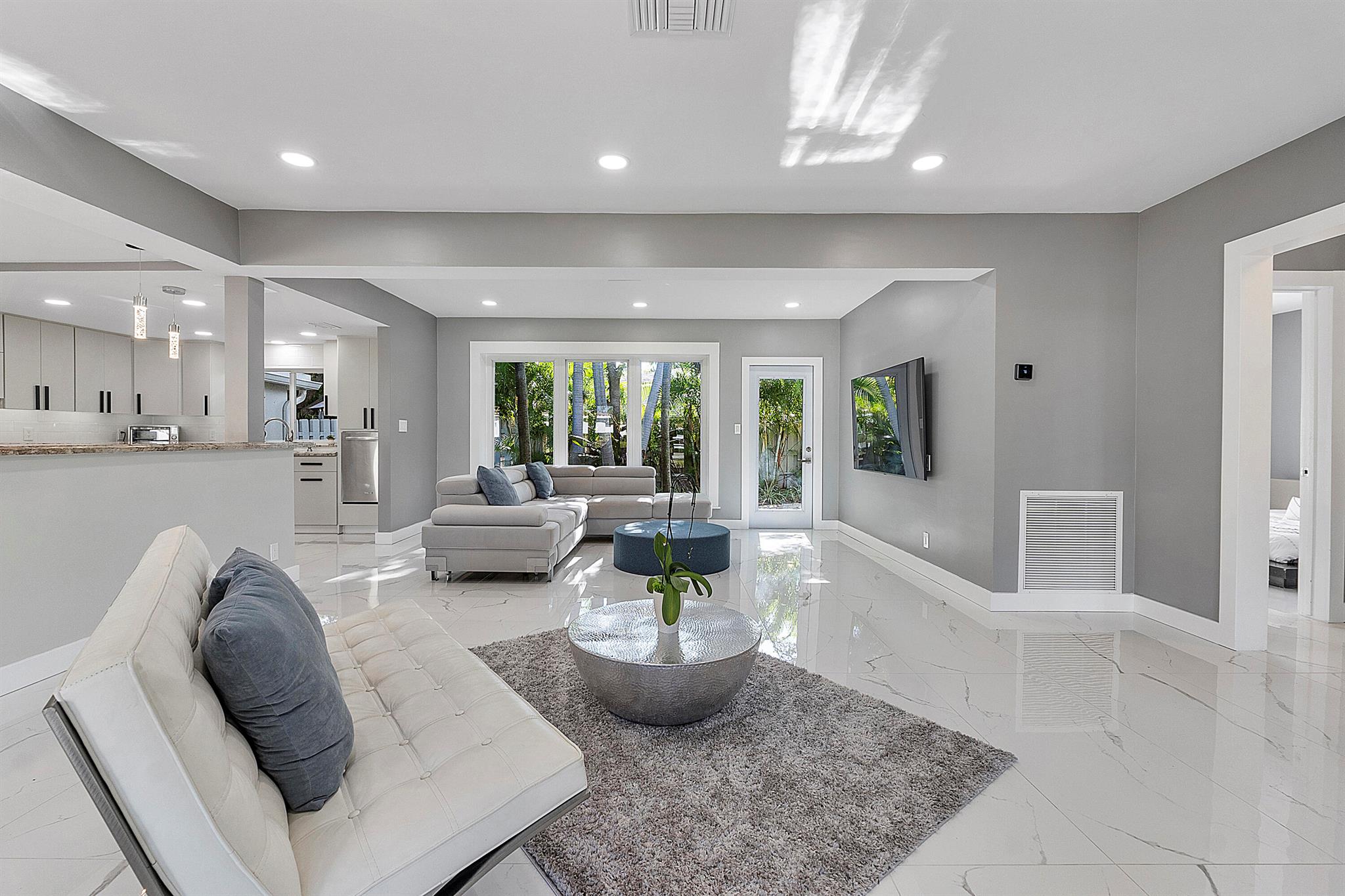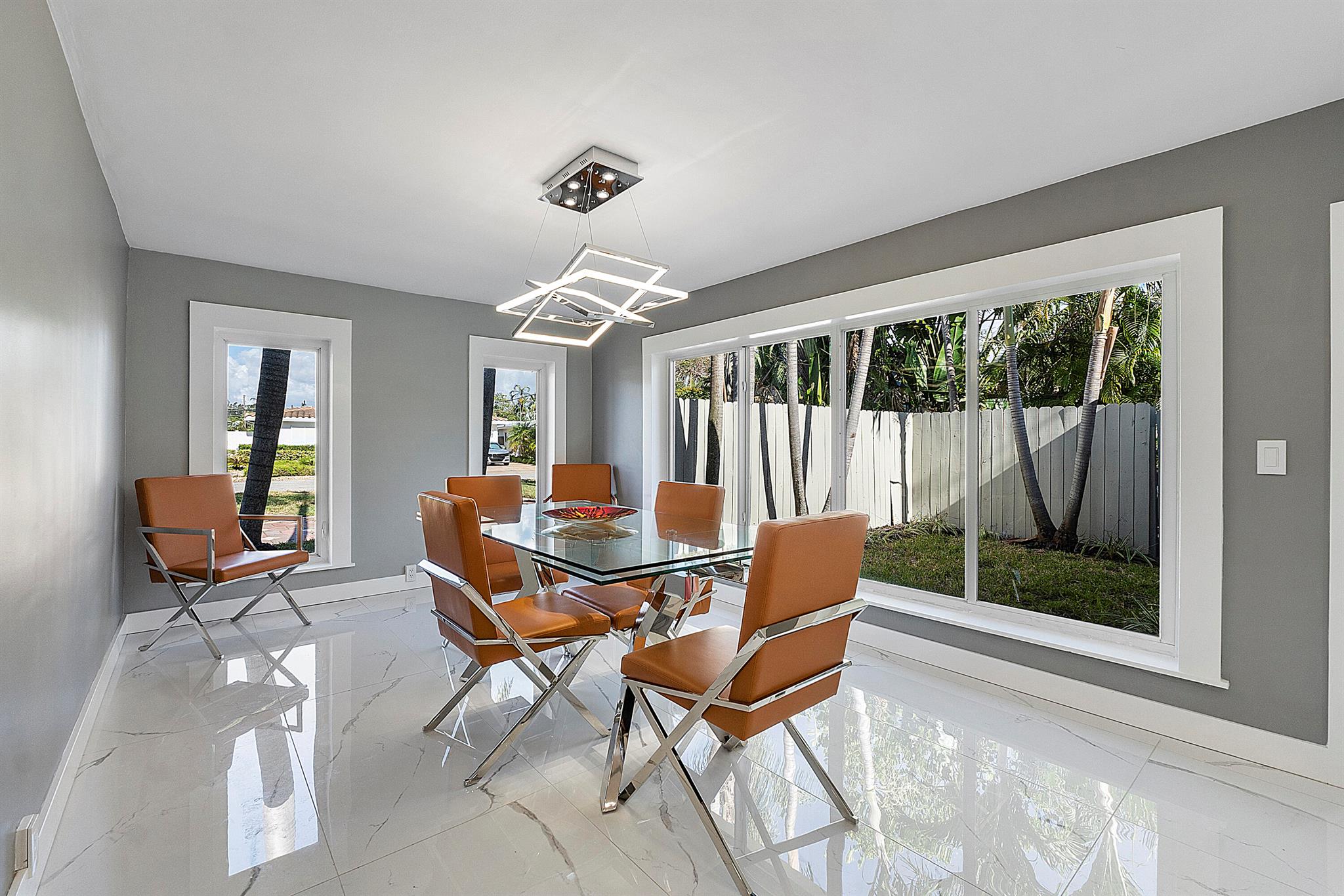 Welcome to your dream oasis in Poinsettia Heights! This rare gem sits on a DOUBLE corner lot spanning 10,495 sqft! Completely renovated & permitted with abundant natural light through PGT impact windows & sliders. Enjoy split, open floor plan & kitchen with upgraded induction cooktop & stainless steal appliances - including wine cooler. Home includes a versatile den - perfect for a home office or fitness room. Enjoy LED lighting, Euro fixtures & tankless water heater and worry free PVC plumbing. Dining room overlooks a serene garden, while the HUGE backyard serves as a private tropical paradise including large Tiki hut, ample entertaining space & a magnificent 15x30 saltwater chlorinated, heated pool with newer pump and heater. Roof installed in 2016! Live your ultimate Florida lifestyle!