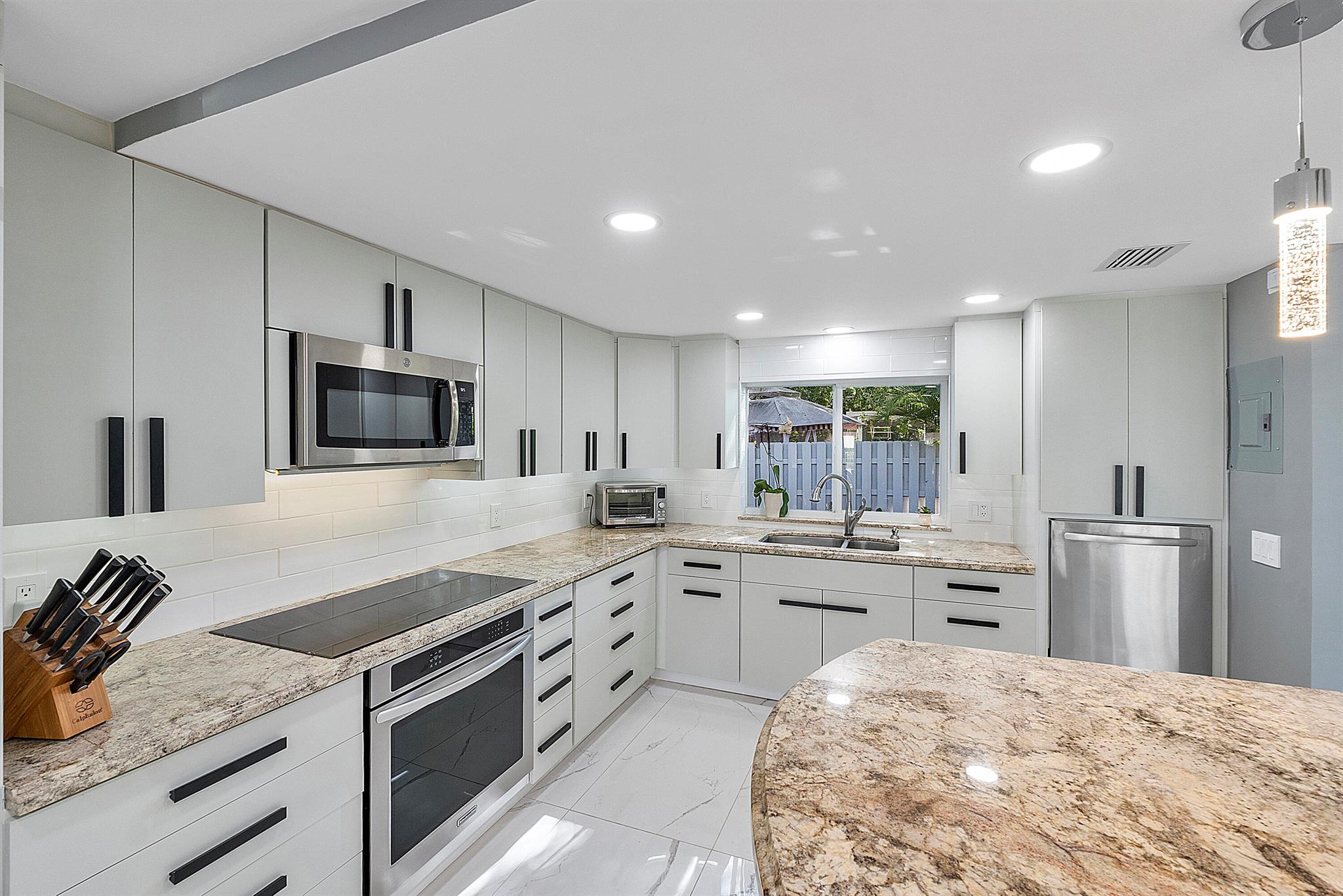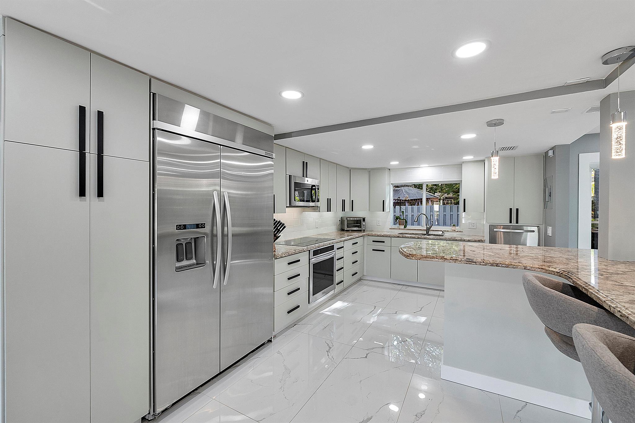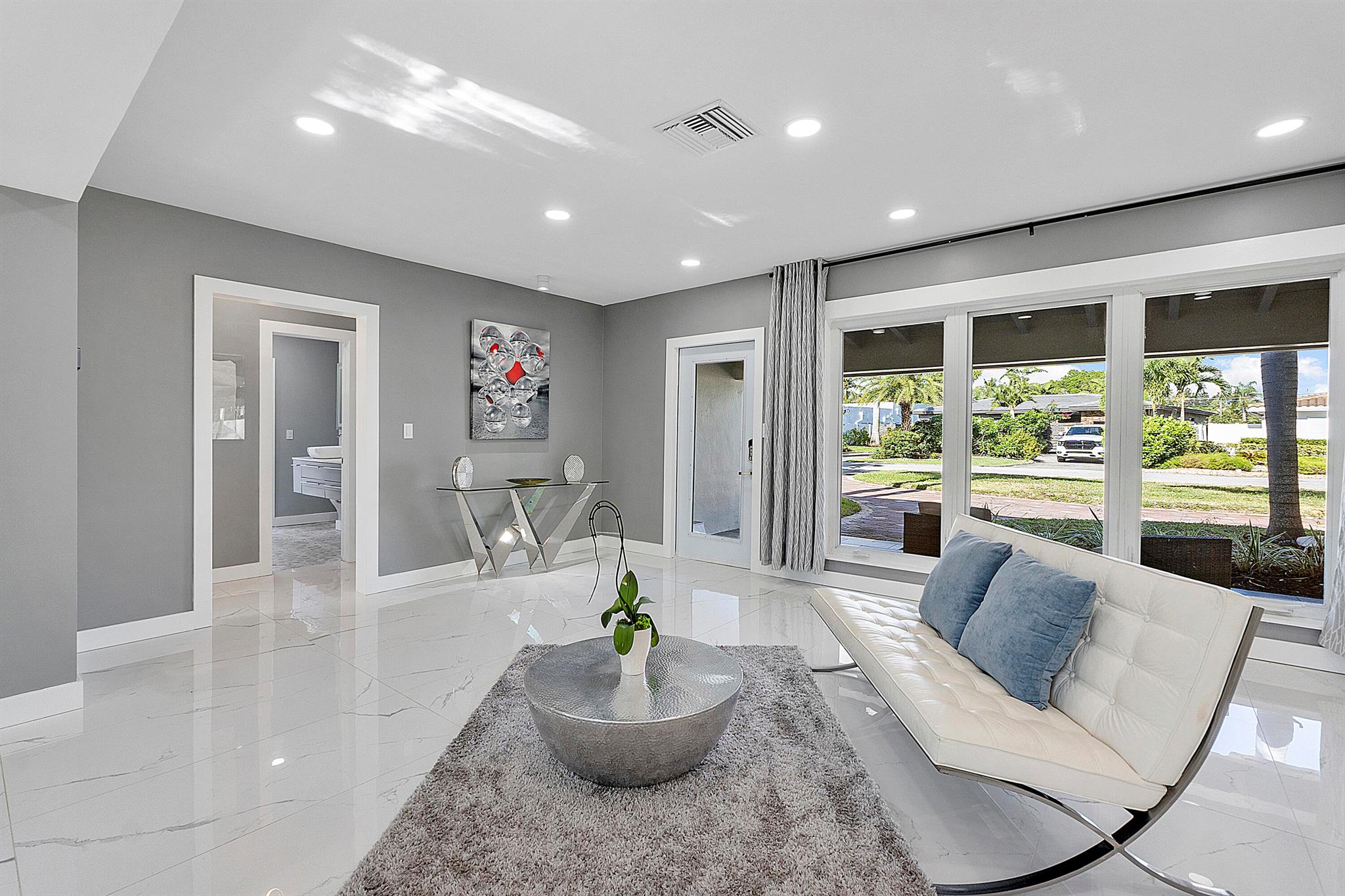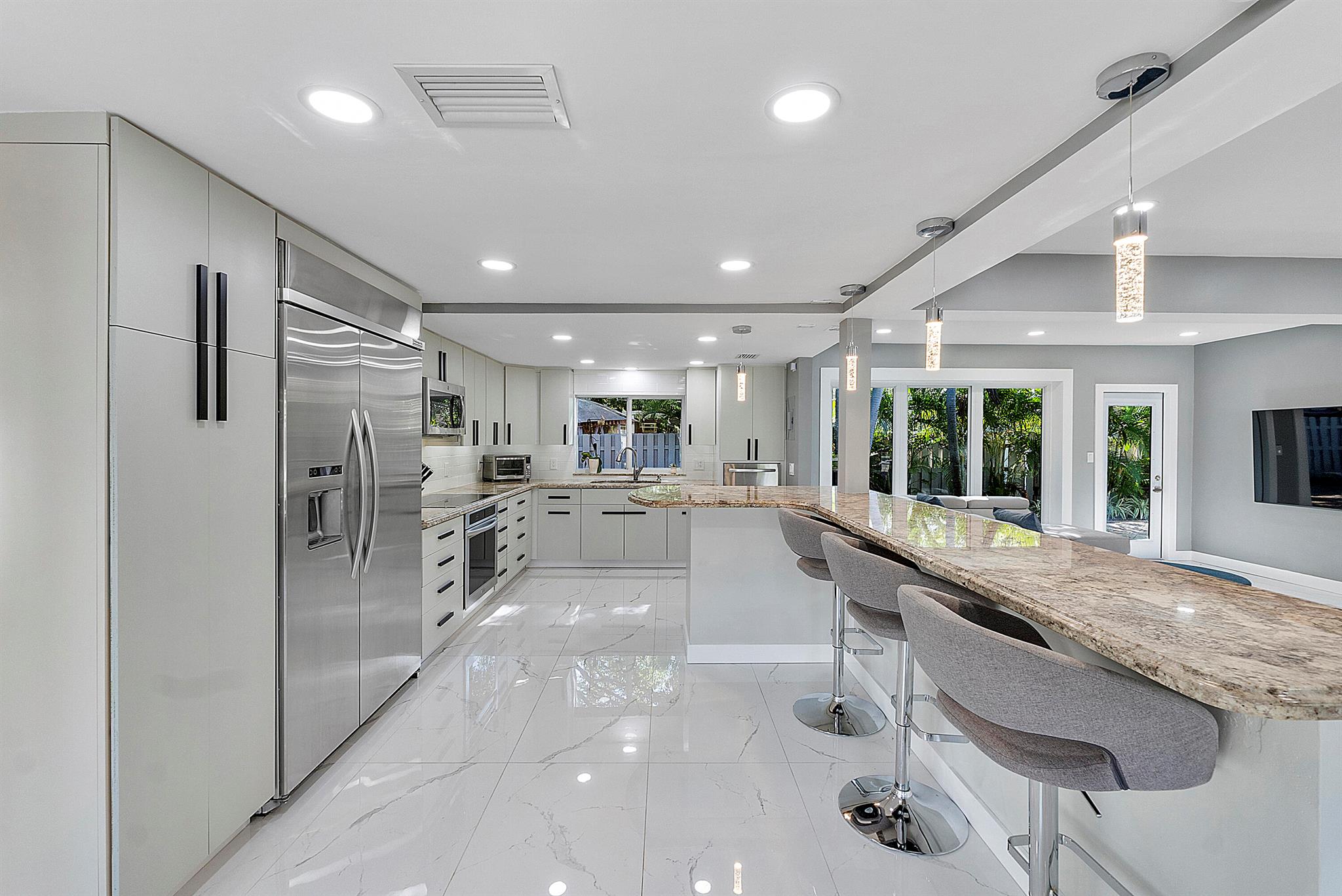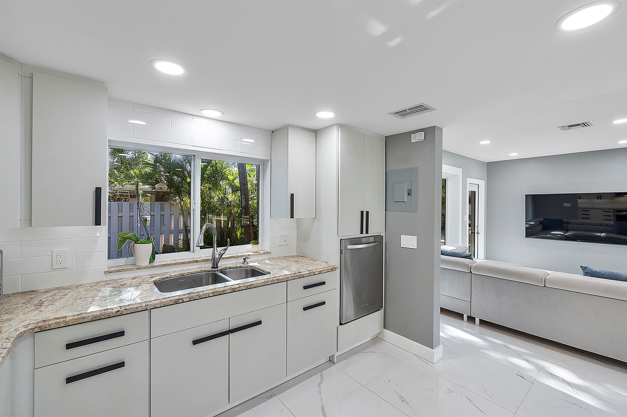 Welcome to your dream oasis in Poinsettia Heights! This rare gem sits on a DOUBLE corner lot spanning 10,495 sqft! Completely renovated & permitted with abundant natural light through PGT impact windows & sliders. Enjoy split, open floor plan & kitchen with upgraded induction cooktop & stainless steal appliances - including wine cooler. Home includes a versatile den - perfect for a home office or fitness room. Enjoy LED lighting, Euro fixtures & tankless water heater and worry free PVC plumbing. Dining room overlooks a serene garden, while the HUGE backyard serves as a private tropical paradise including large Tiki hut, ample entertaining space & a magnificent 15x30 saltwater chlorinated, heated pool with newer pump and heater. Roof installed in 2016! Live your ultimate Florida lifestyle!