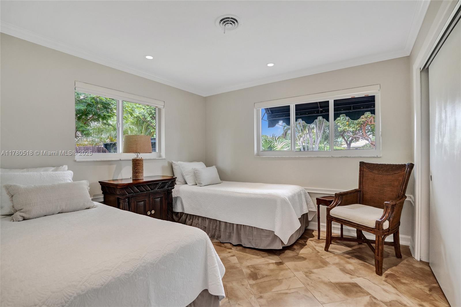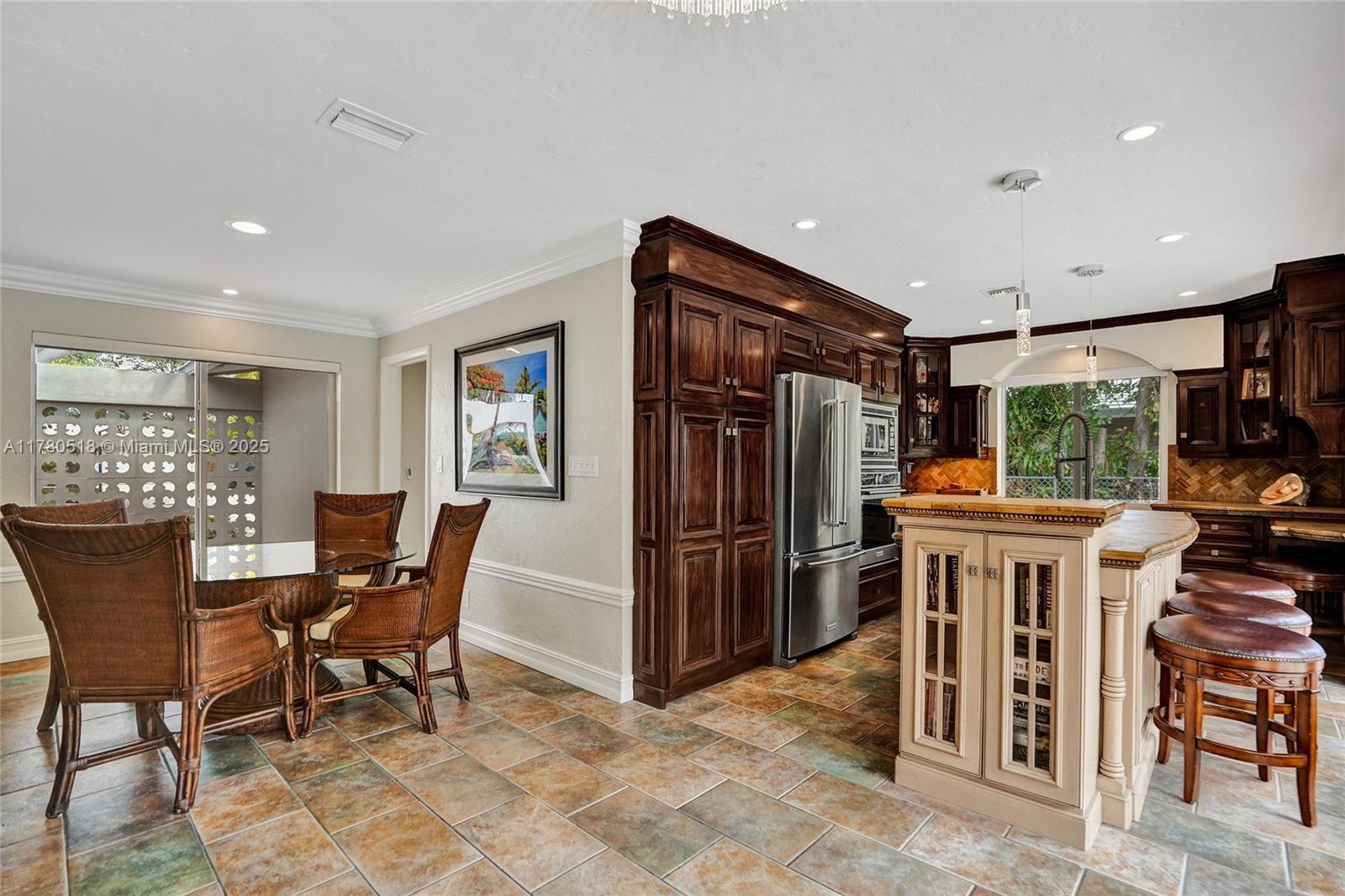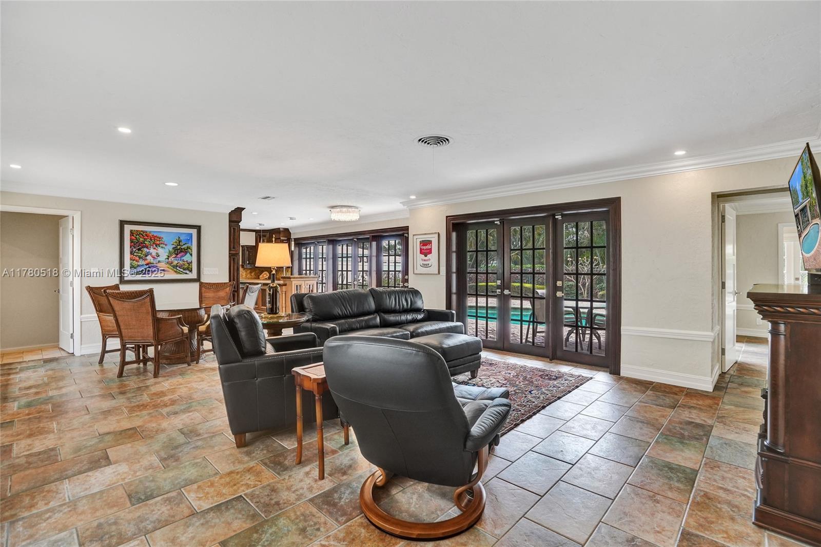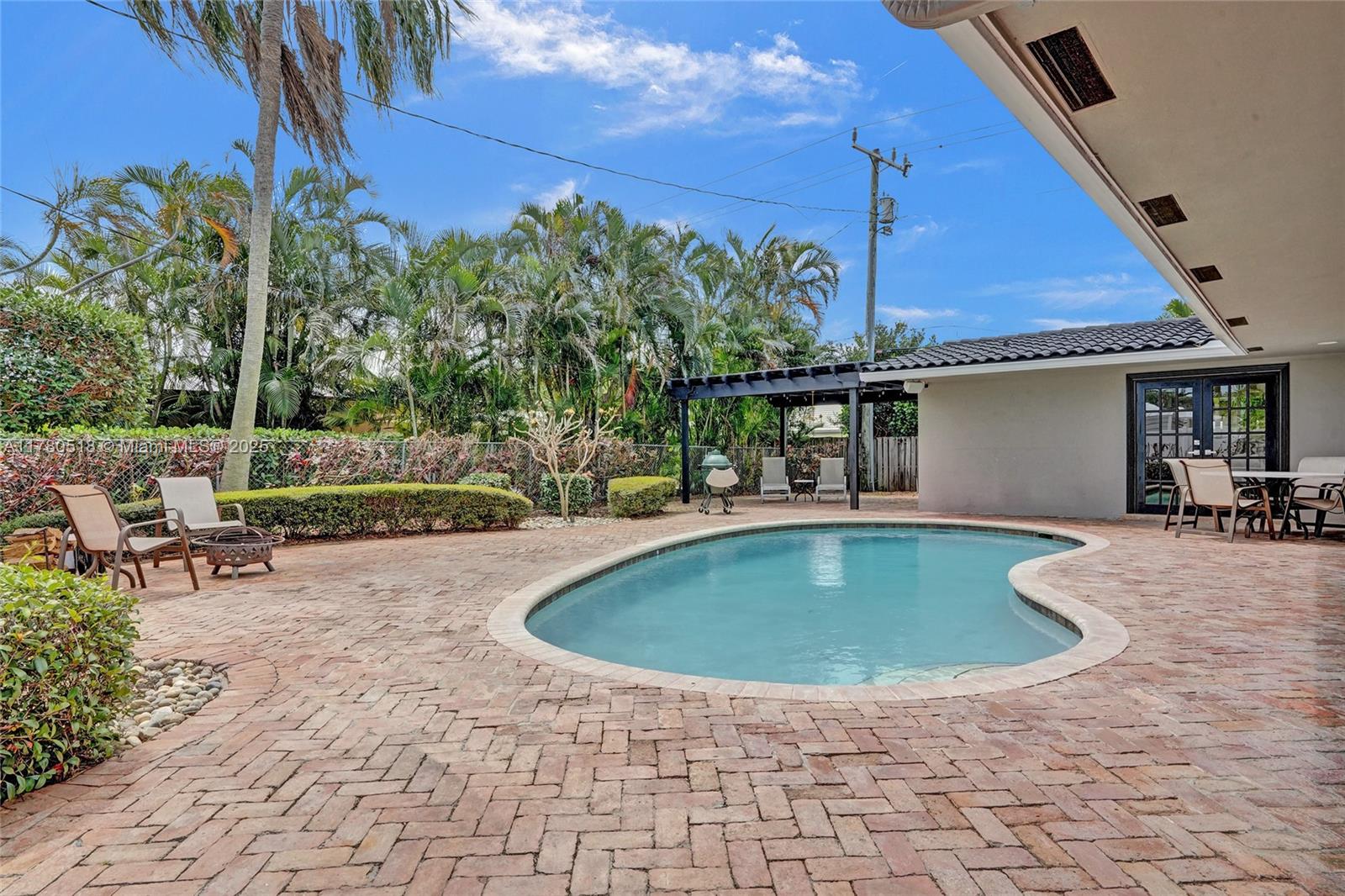 PRICED TO SELL!!! Your private retreat nestled on a peaceful cul-de-sac. Move-in ready home offers 1,749 sf under air on a spacious 10,144 sf lot with mature trees and lush landscaping. Enjoy an open floor plan that connects the great room, dining, and Italian-inspired kitchen -ideal for entertaining. French doors span the back of the home, filling it with natural light and opens to the outdoor sanctuary. Primary suite features tranquil views and poolside access. 4 bedrooms, built-ins, impact windows, and newer systems, this home blends comfort and flexibility. Step outside to a Chicago brick patio, landscaped gardens, pergola, and heated pool—perfect for relaxing or entertaining. Located between Coral Ridge Country Club and Bayview Park, and minutes to Lauderdale-by-the-Sea.