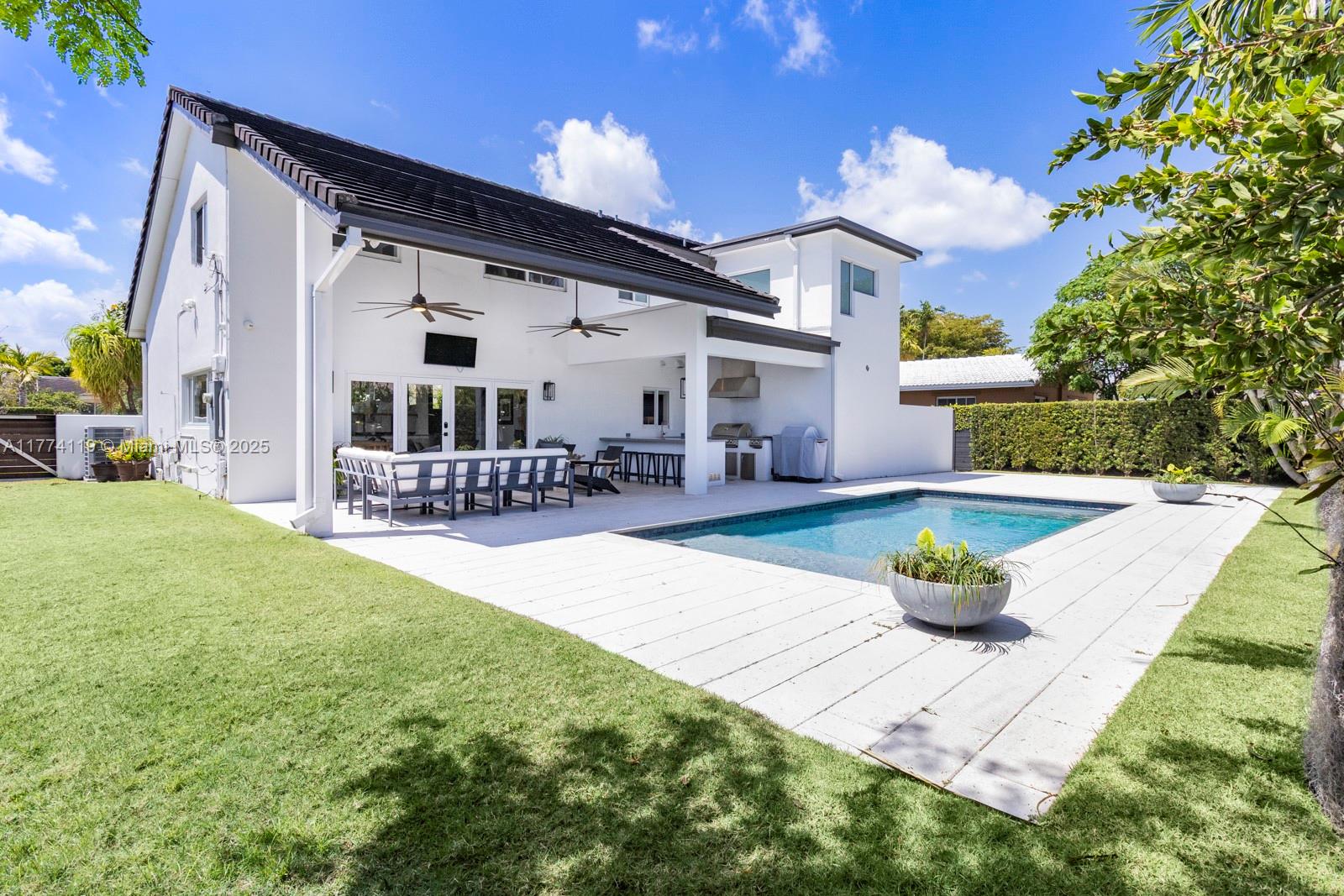 Beautiful Fully Remodeled Home in Westchester. Nestled in a quiet, family-friendly neighborhood, this beautifully renovated 5-bedroom, 3.5-bathroom home offers 2,054 sqft of luxurious living space on a 7,500 sqft lot. Featuring a unique floor plan, the home has been fully remodeled with high-end finishes throughout. Enjoy outdoor entertaining with a fully built-out outdoor kitchen and large pool, perfect for family gatherings. Inside, the spacious bedrooms, including a serene master suite, and sleek bathrooms provide comfort and style. Additional features include a convenient laundry room, two storage rooms, and a new roof. With its prime location, stunning design, and functional layout, this home is the perfect blend of luxury and tranquility.