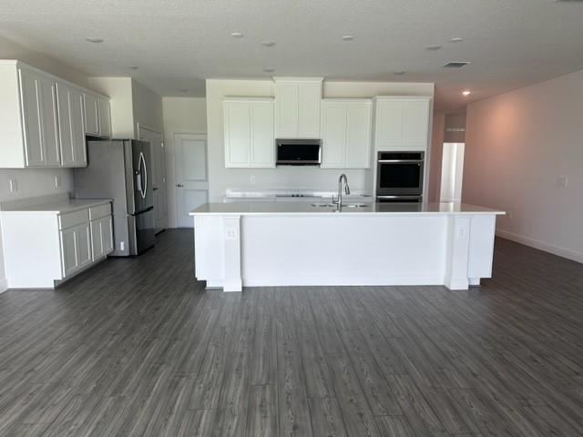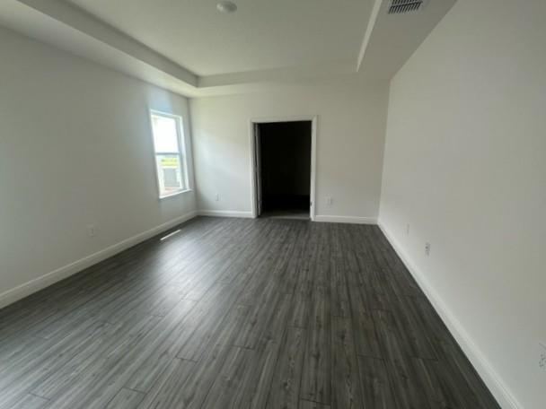 Discover the Drexel A model in Central Park, Port St. Lucie’s vibrant, sought-after community. Enjoy low HOA fees and amenities like a modern clubhouse, community pool, dog park, and children’s park, all just minutes from Traditions' shopping, dining, and entertainment. This pond waterfront property features three bedrooms and a versatile flex space for an office or playroom. The gourmet kitchen offers 42" Shaker cabinets, quartz countertops, a double oven, cooktop, 27 cu. ft. stainless steel refrigerator, and a large island. The covered lanai overlooks serene water views, perfect for relaxation and entertaining. The primary suite includes tray ceilings, a spa-like bathroom with ceramic tile flooring, dual vanities, a walk-in shower, and a large walk-in closet.
