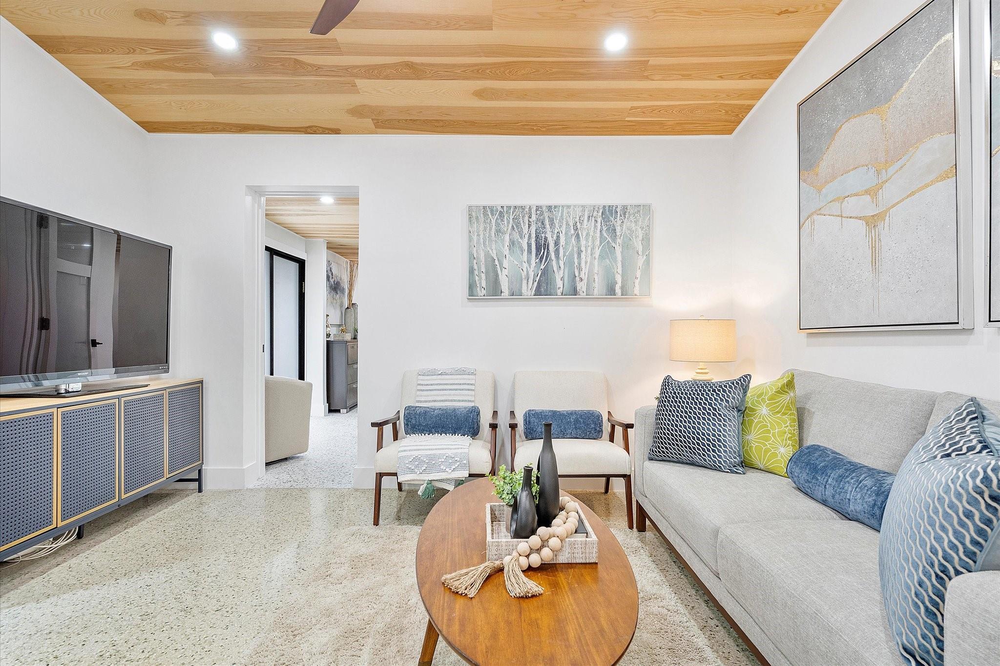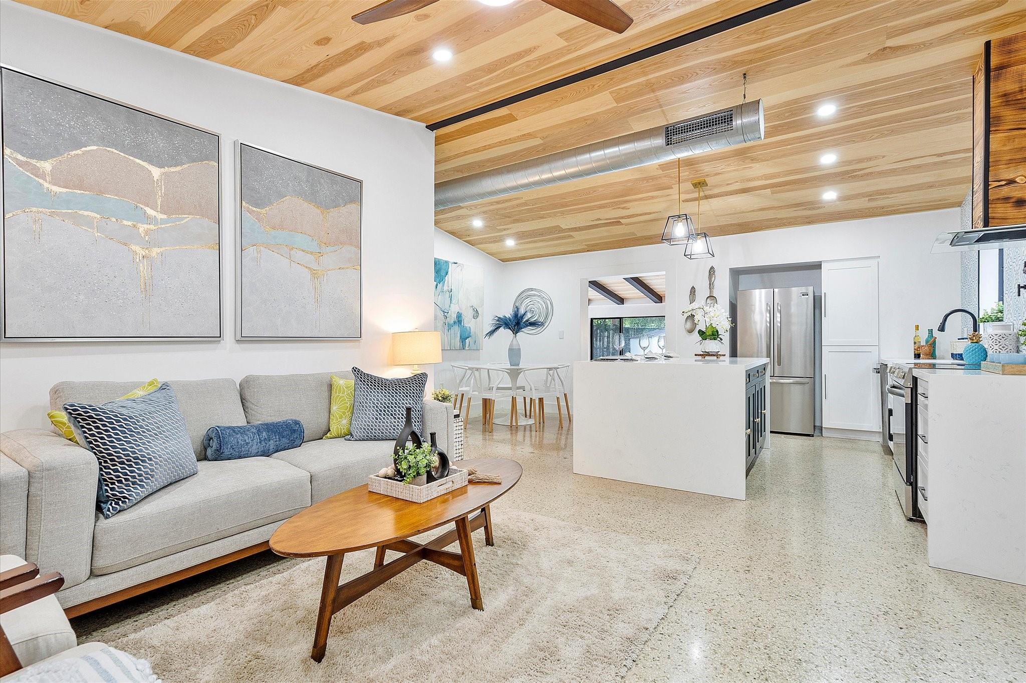 Located in the pristine Riverlands neighborhood of Fort Lauderdale, this extra-large corner lot includes NEW CENTRAL AC DUCTS AND AC, IMPACT WINDOWS! It boasts an open-concept kitchen featuring quartz countertops, soft-close cabinets, and modern finishes. Both bathrooms have been fully remodeled. Refurbished terrazzo flooring gives this home the classic South Florida Charm with a modern touch. Additional upgrades include brand new wood ceilings throughout, and smart lighting technology for modern convenience. Beautiful landscaping for extra privacy! Conveniently located minutes to Fort Lauderdale Airport, downtown Las Olas on the river, and the Beach! Book your showing today! Bundled service pricing available for buyers. Connect with the listing agent for details.
