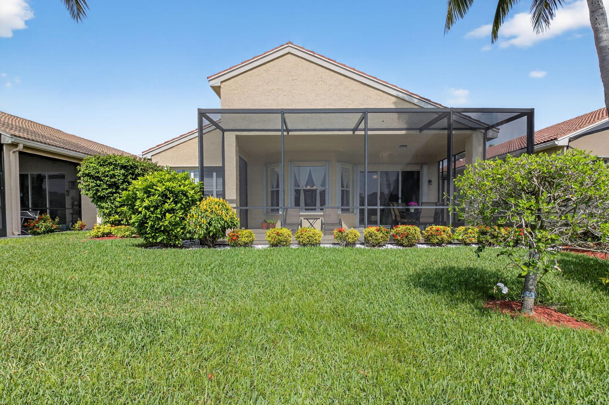 Enjoy a special lifestyle in Valencia Palm's luxury 55+ community! Perfectly functional layout and bright colorful walls throughout. Solid wood kitchen cabinets in a traditional style that is timeless. Relax in the lovely setting of the extended screened patio & view of the serene lake. Experience the luxury of the clubhouse, complete with state-of-the-art amenities like fitness center, ballroom, card rooms, captivating shows, vibrant clubs, resort-style pools, a cozy cafe, and pickleball and tennis courts. Centrally located, provides convenient access to pristine beaches, premier shopping destinations, and vibrant Atlantic Ave. in Delray. Come immerse yourself in the epitome of refined living! HOA includes internet, cable, alarm & landline. New A/C and water heater in 2022. MUST SELL!