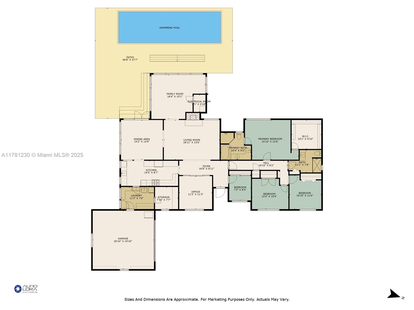 SPACIOUS 4 BEDROOM, 2 FULL BATH HOME ON A 12,200 SQ. FT. LOT IN MIAMI SHORES. ATTACHED 2 CAR GARAGE, A BEAUTIFUL OASIS-LIKE POOL, SPA, AND PATIO IN THE PRIVATE BACKYARD MAKES IT PERFECT FOR YEAR-ROUND ENTERTAINING. HUGE SEPARATE INSIDE LAUNDRY ROOM/PANTRY OFF THE KITCHEN. ENTRY FOYER, FORMAL LIVING ROOM WITH FIREPLACE, FORMAL DINING ROOM, FLORIDA ROOM AND OFFICE. ROOM TO ADD A FULL BATH AND/OR POWDER ROOM. PRIMARY BEDROOM HAS SPA LIKE BATH AND BIG WALK-IN CLOSET. WALKING DISTANCE TO ST ROSE AND MIAMI COUNTRY DAY SCHOOL. UPDATED PLUMBING, ELECTRIC, CENTRAL A/C, AND NEW ROOF. MOVE-IN CONDITION.