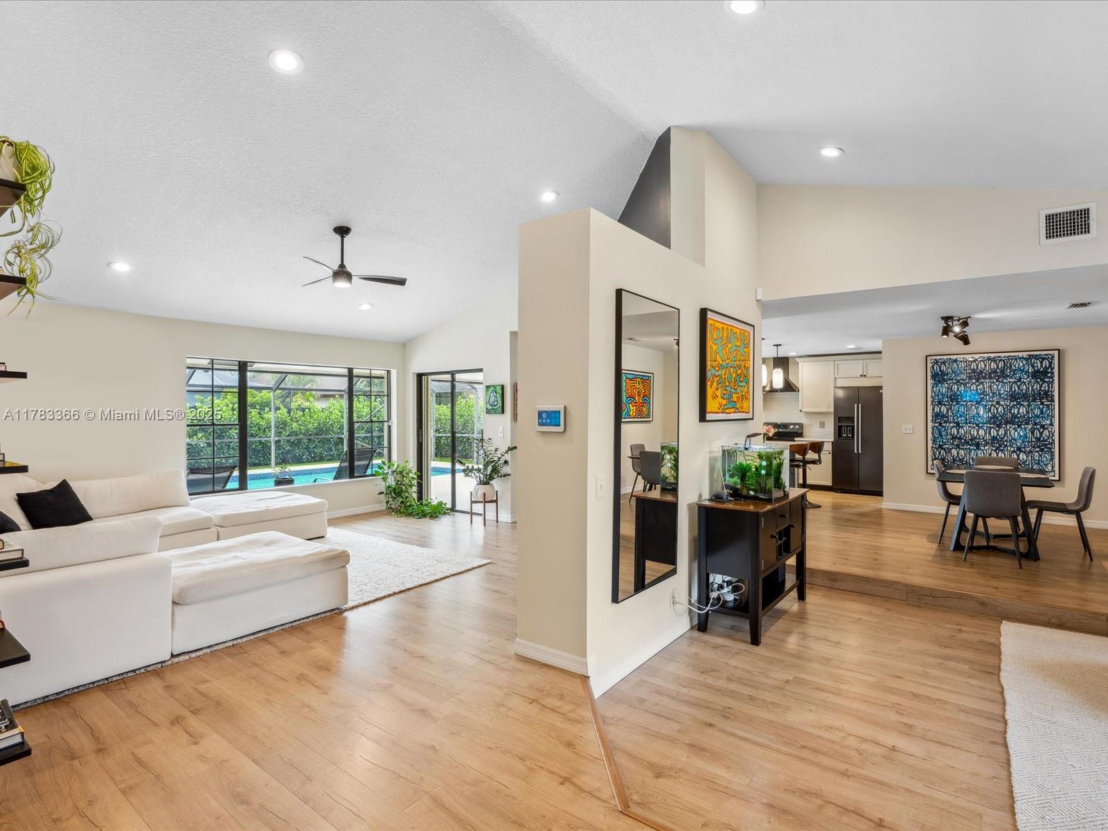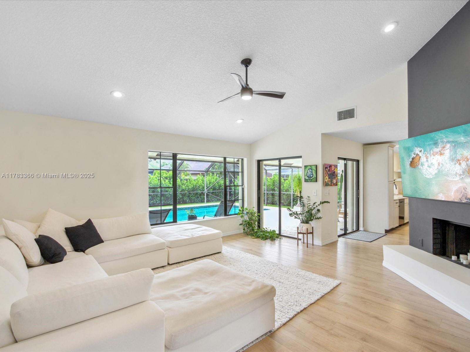 Meticulously renovated, turn-key home in the heart of West Boca! Offering over $100,000 in recent improvements; including updated appliances, custom closet systems, beautifully renovated bathrooms, and a full guest suite remodel. This light-filled home features an open floor plan and a spacious enclosed patio with a newly resurfaced saltwater pool, artificial turf and refreshed landscaping, as well as a new pool pump and sprinkler system. Enjoy peace of mind with a 2024 roof and solar fans, new HVAC system and ductwork, upgraded attic insulation, a new hot water heater, a full-house water filtration system, EV charging station, portable generator with transfer switch, and whole-home surge protection. Situated on a quiet cul de sac in a low $55/month HOA community.